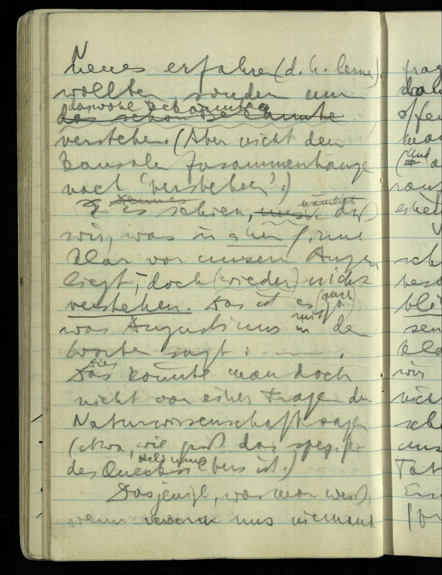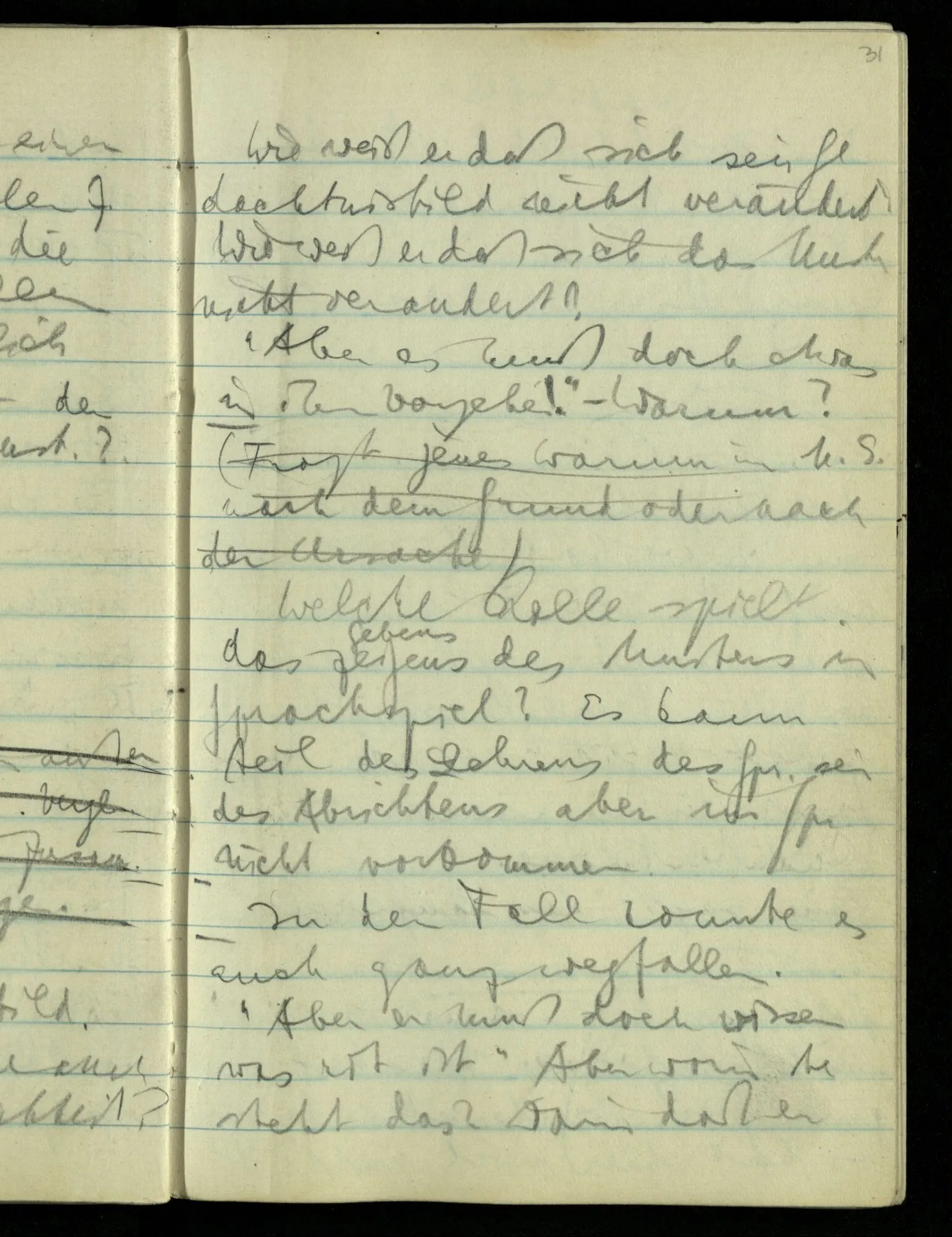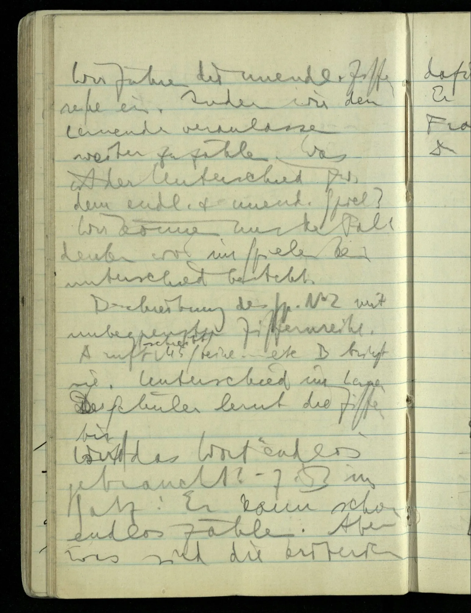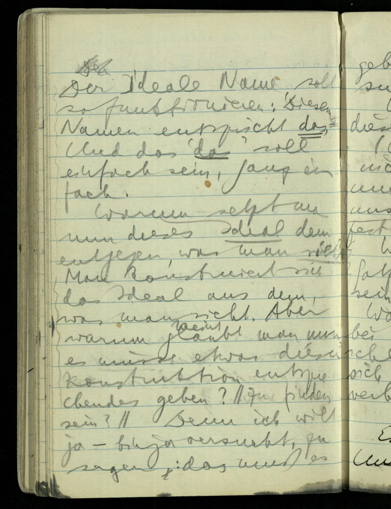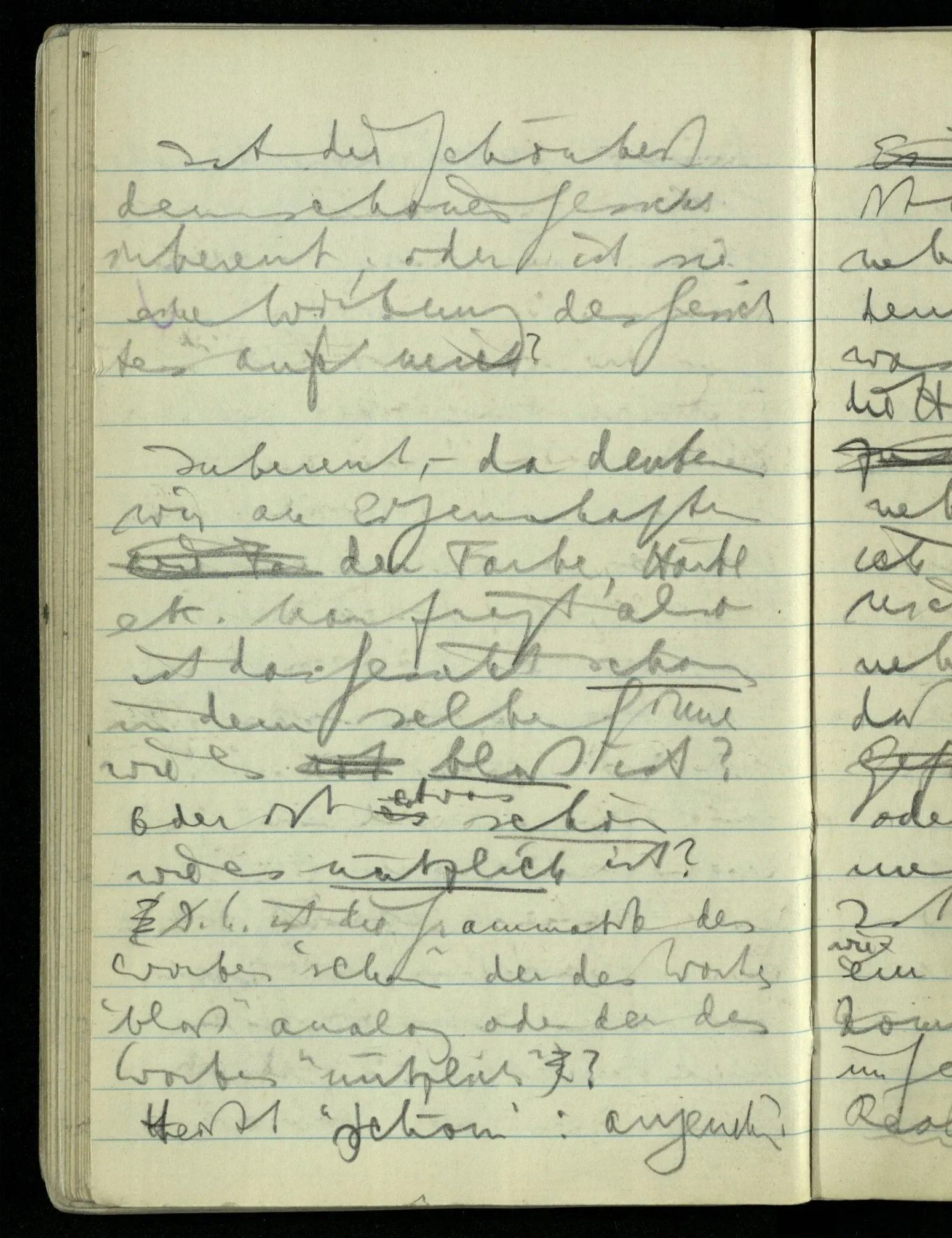 Hat nun mein Körper Schmerzen? – Man möchte sagen: “Wie kann denn der Körper Schmerzen haben? Der Körper ist doch an sich etwas Totes; ein Körper weiß doch nichts von sich selbst!” Und hier ist es wieder als sähen wir in das Wesen der Schmerzen & erkennten als eine Tatsache ihrer Natur, daß der Körper sie nicht haben könne & es ist als erkennten wir, daß das was sie hat ein Wesen anderer Art nämlich geistiger Art sein müsse.