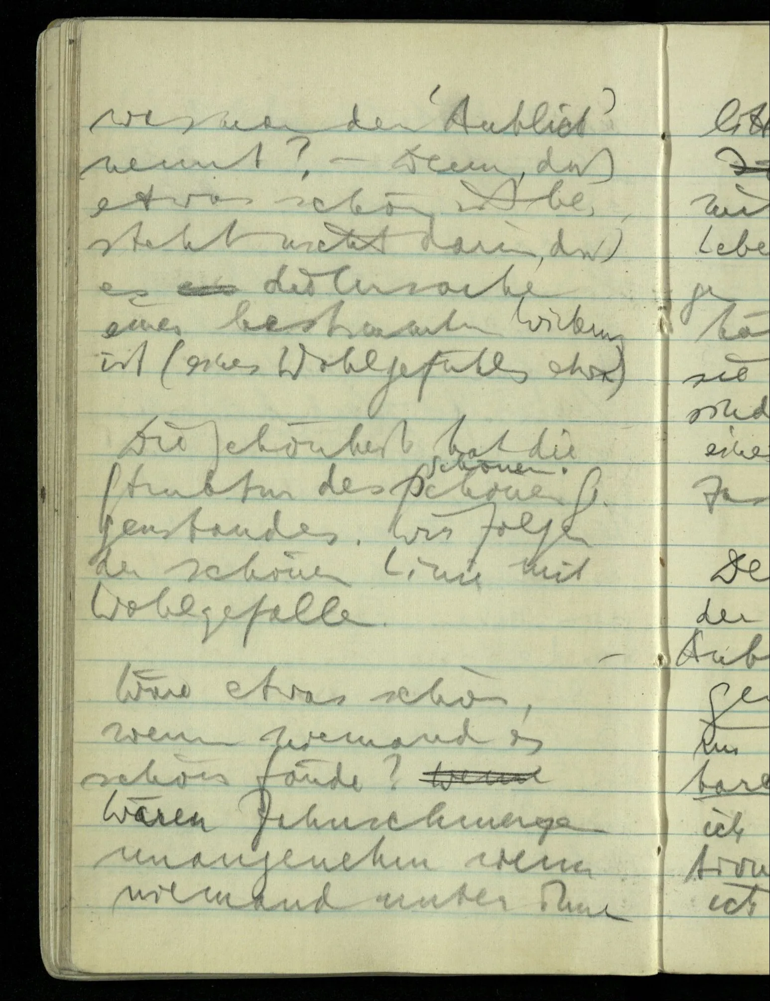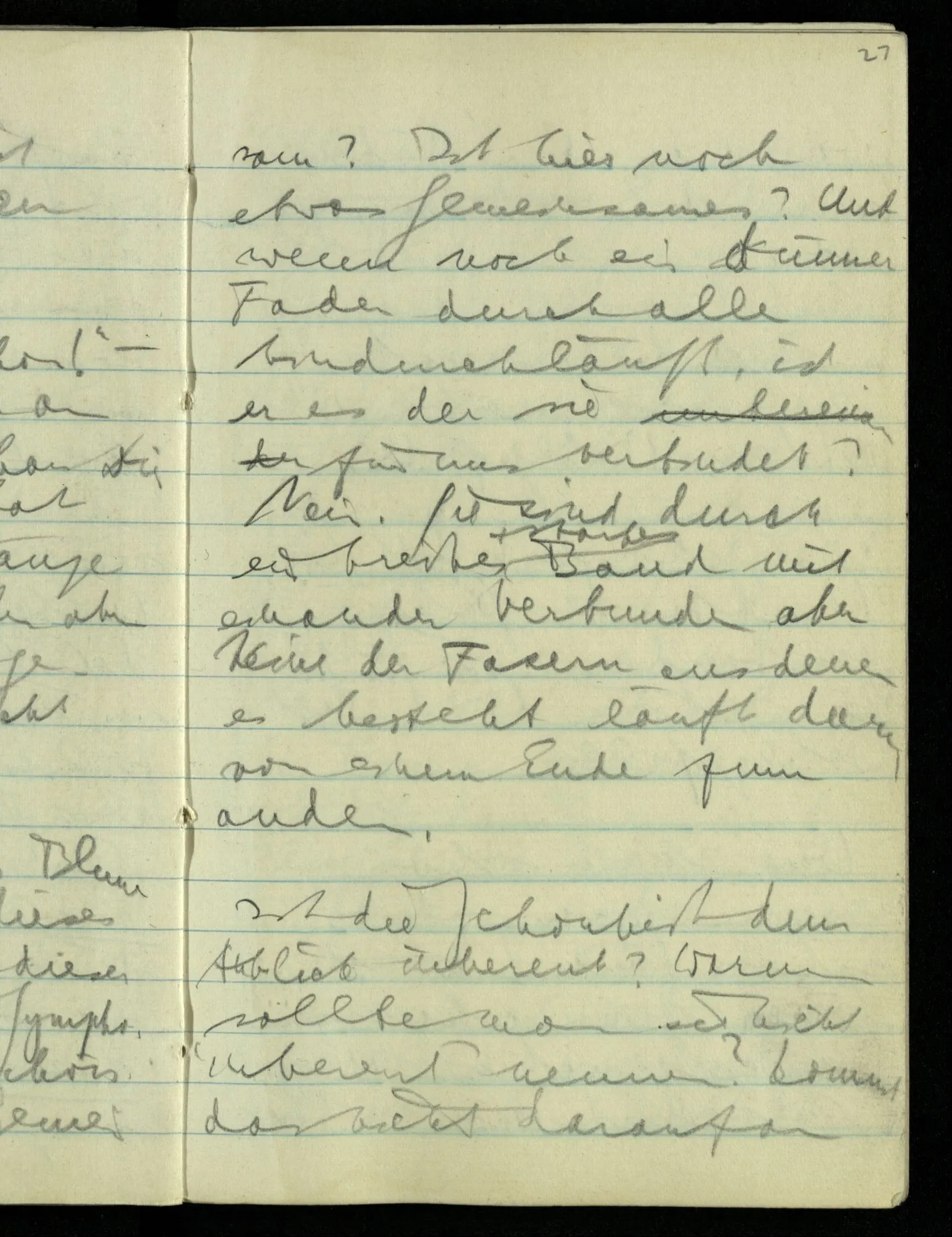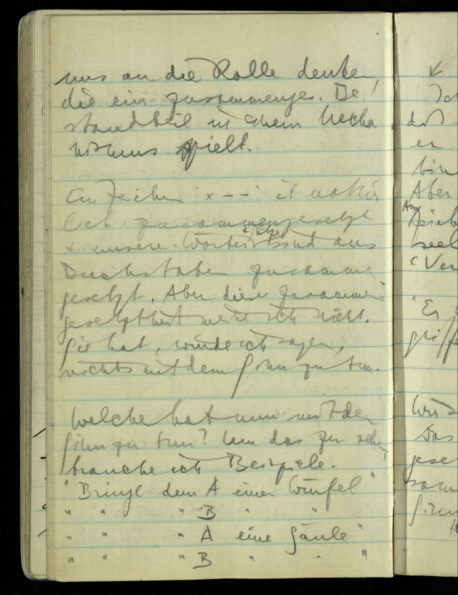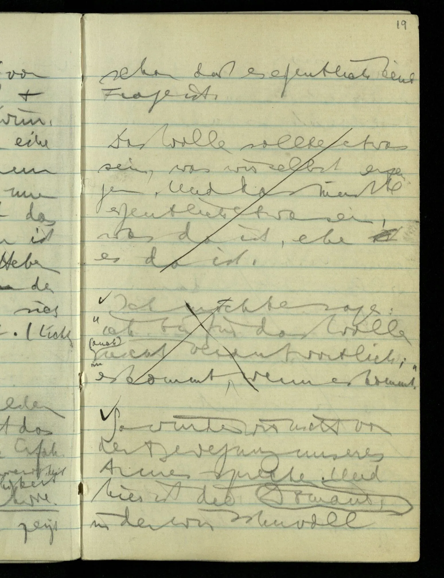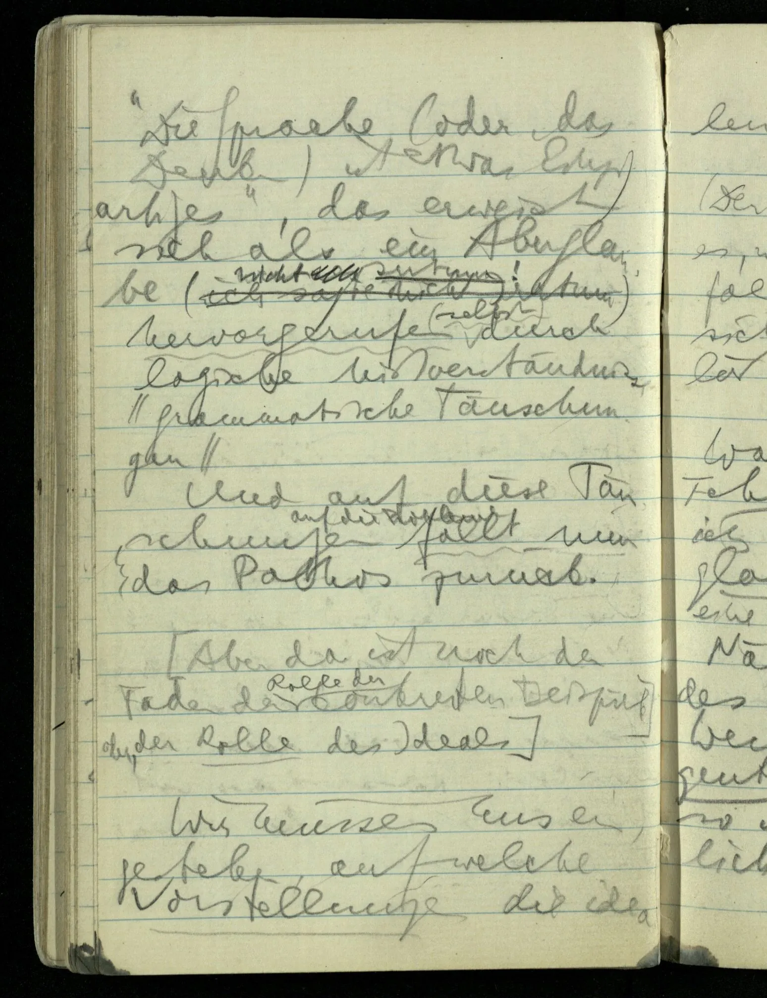 Hat nun mein Körper Schmerzen? – Man möchte sagen: “Wie kann denn der Körper Schmerzen haben? Der Körper ist doch an sich etwas Totes; ein Körper weiß doch nichts von sich selbst!” Und hier ist es wieder als sähen wir in das Wesen der Schmerzen & erkennten als eine Tatsache ihrer Natur, daß der Körper sie nicht haben könne & es ist als erkennten wir, daß das was sie hat ein Wesen anderer Art nämlich geistiger Art sein müsse.