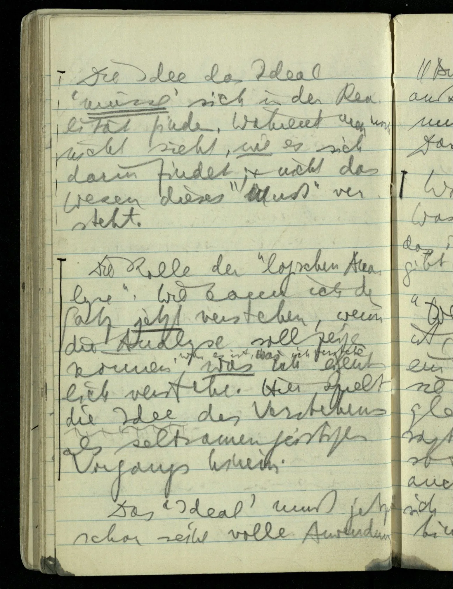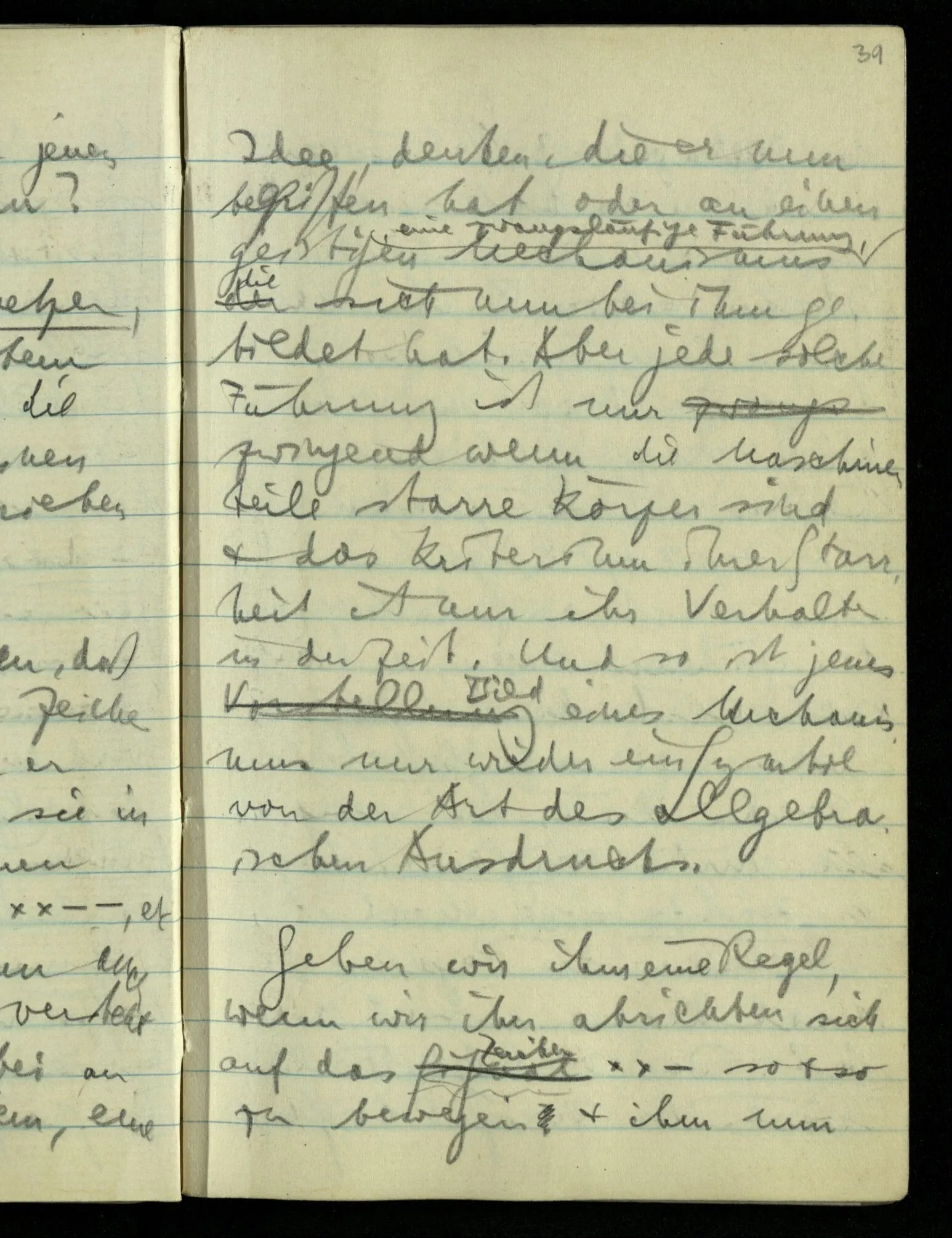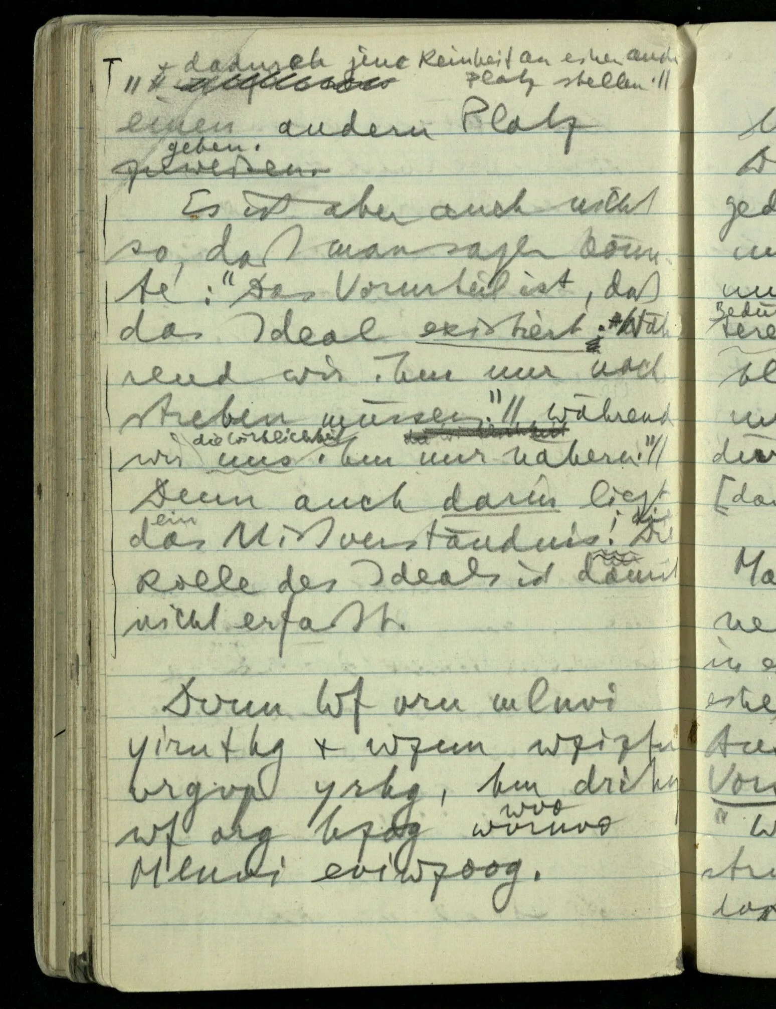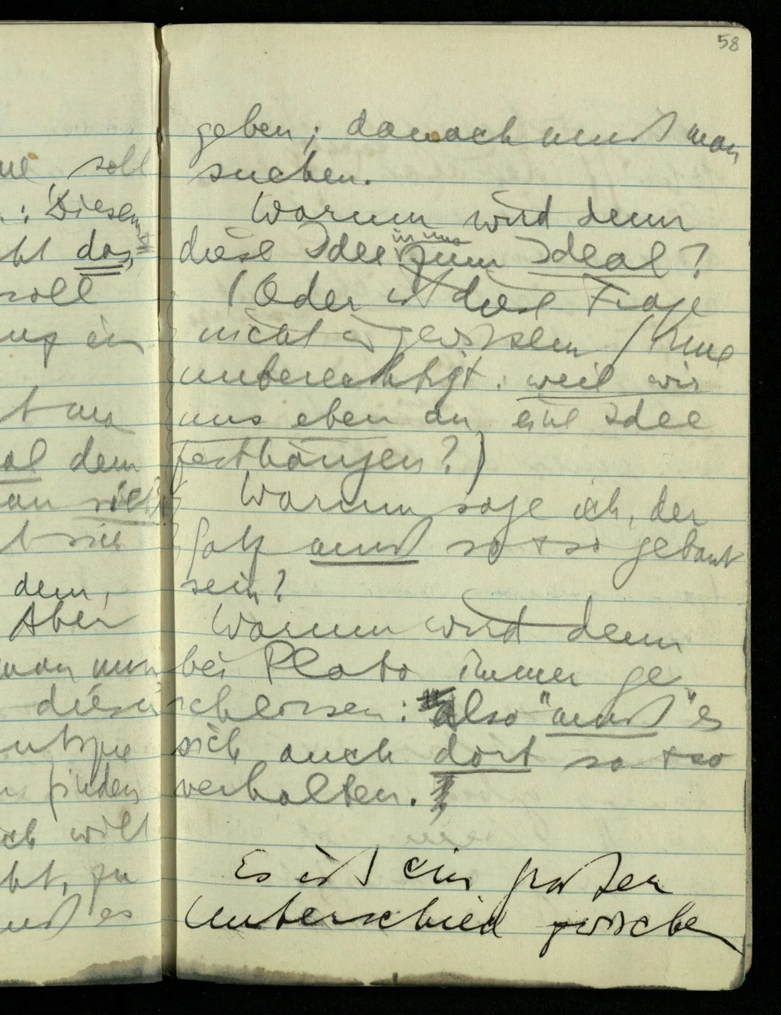 Denn die Kenntnis des Amorphen interessiert uns nun nicht (das ist richtig). Und mit den Kristallsystemen haben wir es auch zu tun. D.h., wir haben es mit der Exaktheit zu tun. Denn (eine) größere Exaktheit beseitigt manche Mißverständnisse: Aber es gibt auch Mißverständnisse, die leicht dadurch entstehen, daß man nach größerer Exaktheit strebt. Nun ist es aber nicht so, daß wir uns etwas von jener Kristallreinheit abhandeln lassen können! Das Vorurteil, was in ihr liegt, kann nur so beseitigt werden, daß wir unsere ganze Betrachtung drehen; dadurch jener Reinheit einen andern Platz geben. Es ist aber auch nicht so, daß man sagen könnte: “Das Vorurteil ist, daß das Ideal existiert. Während wir ihm nur nachstreben müssen.” Denn auch darin liegt das Mißverständnis. Die Rolle des Ideals ist damit nicht erfaßt.