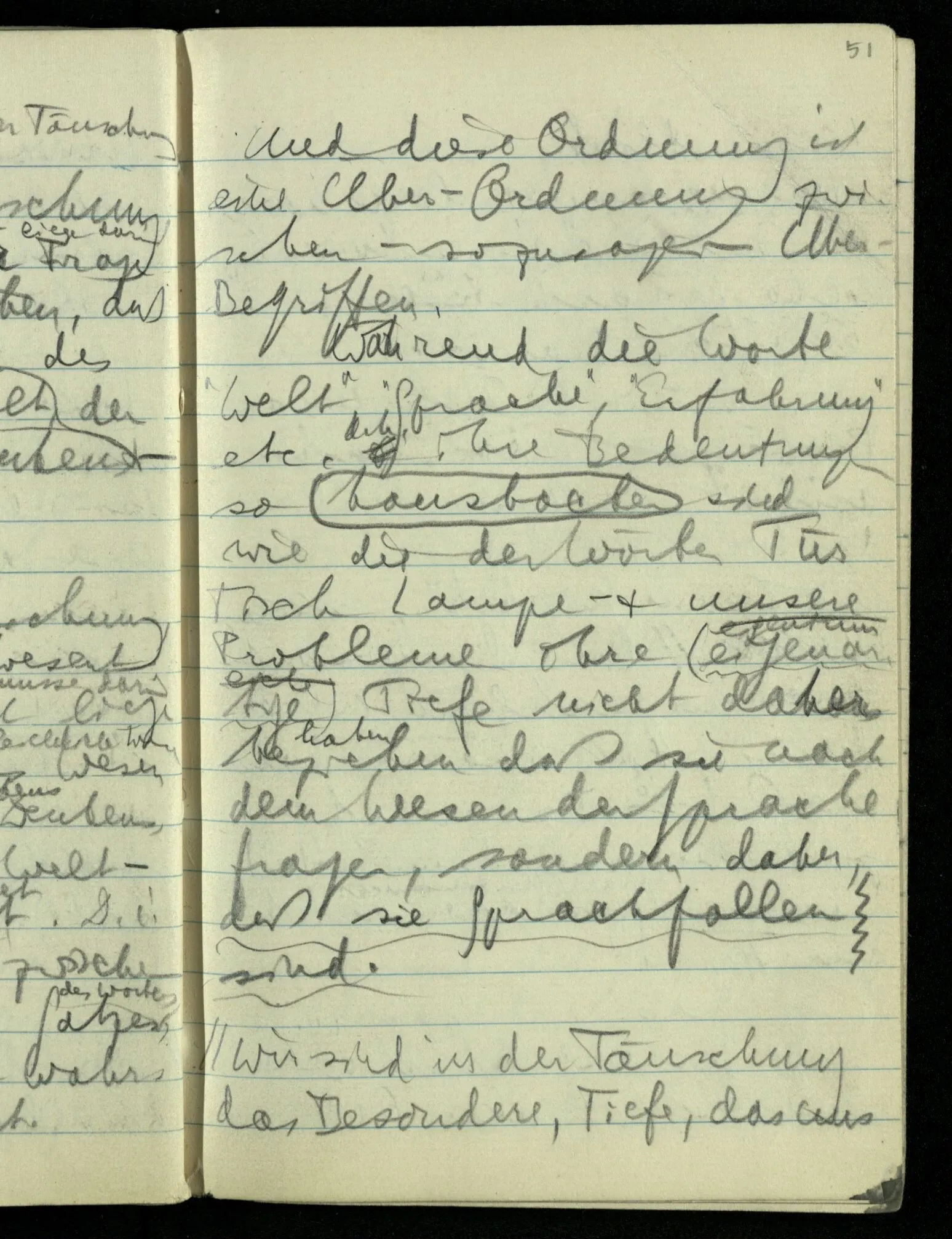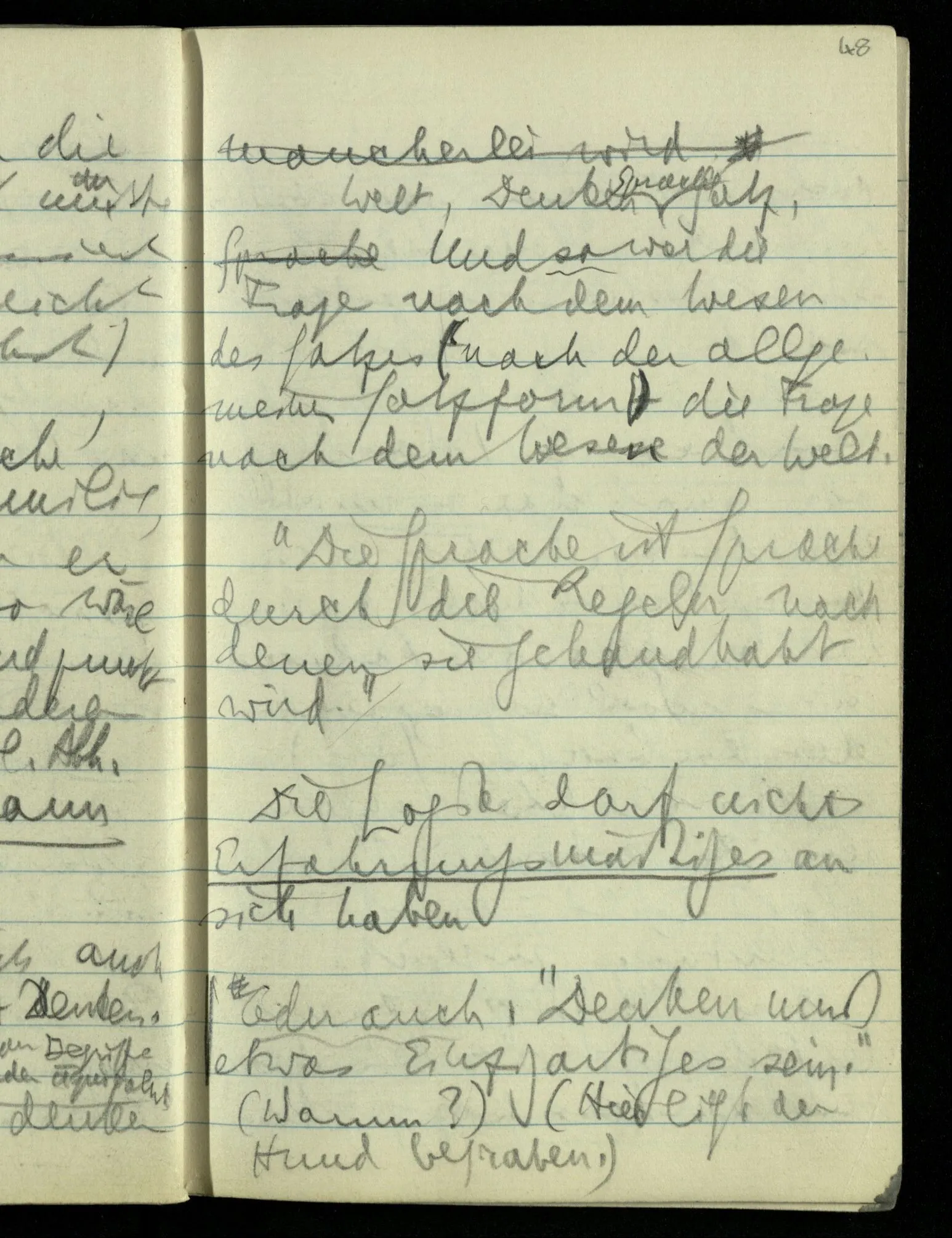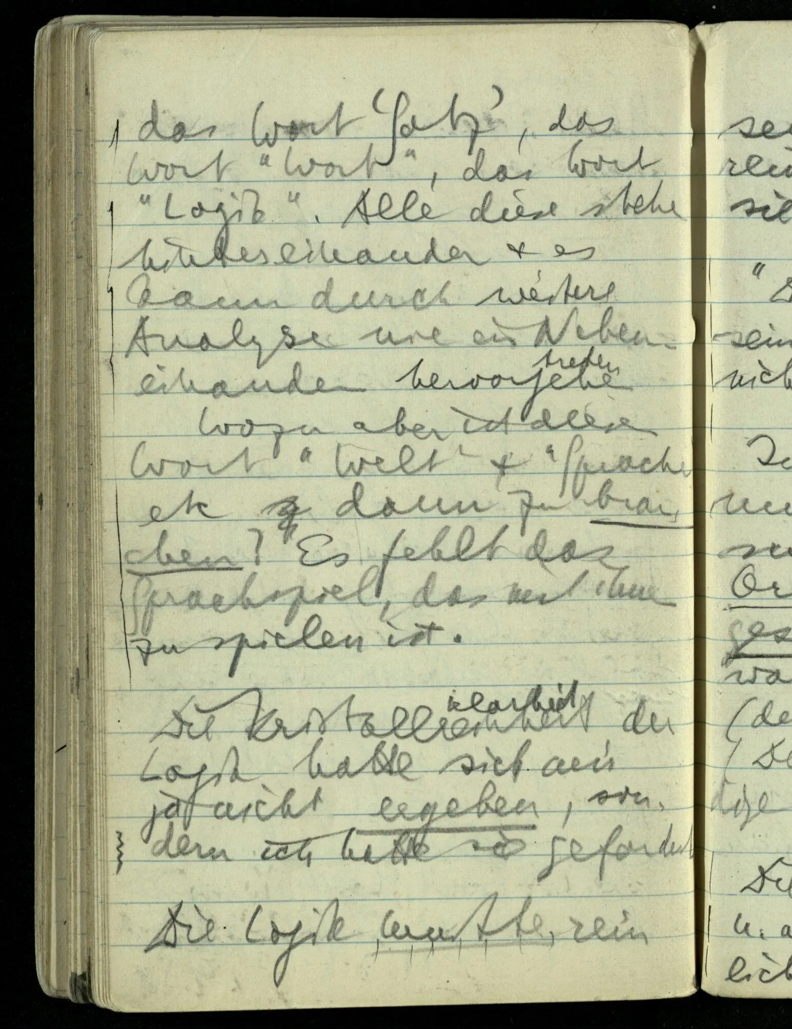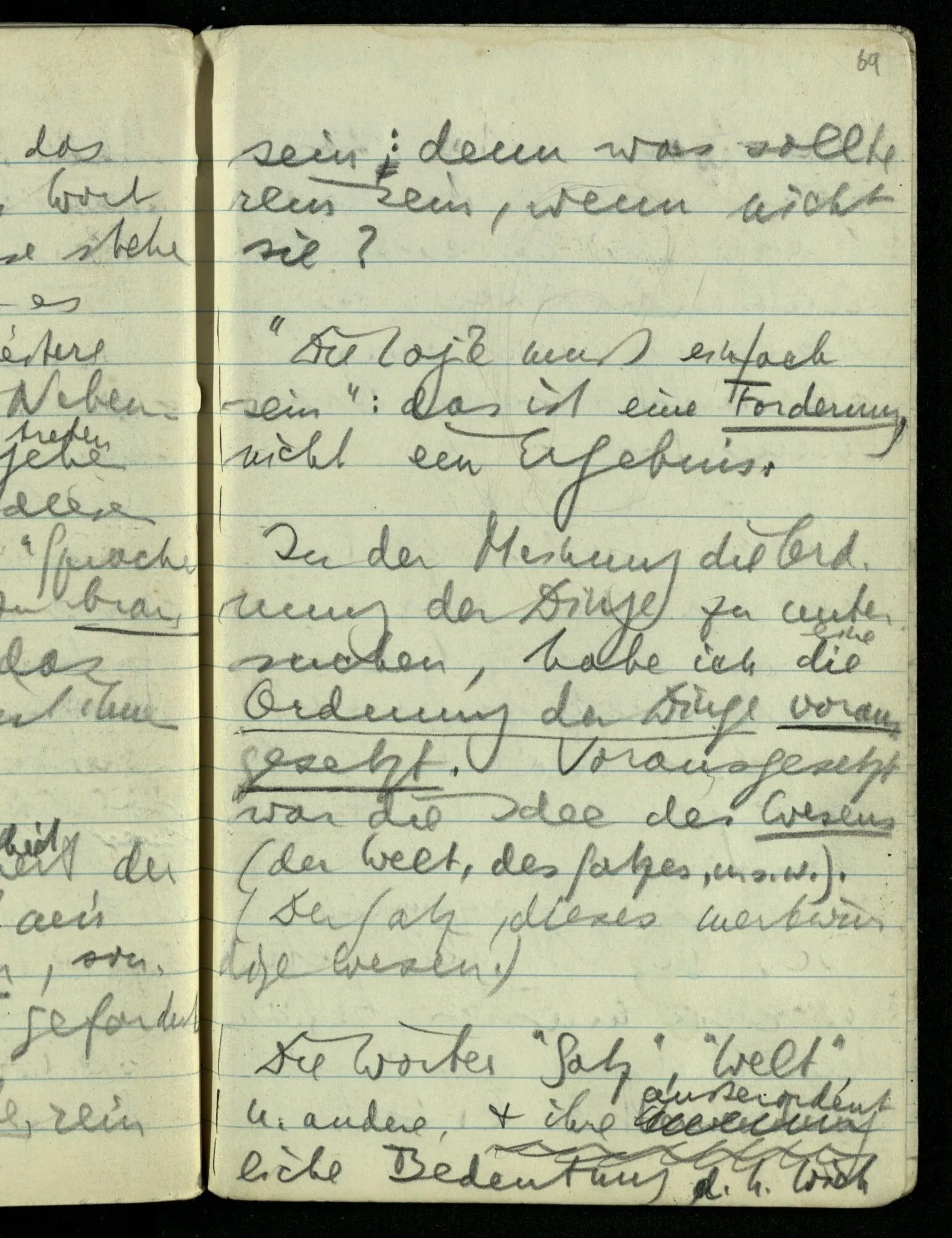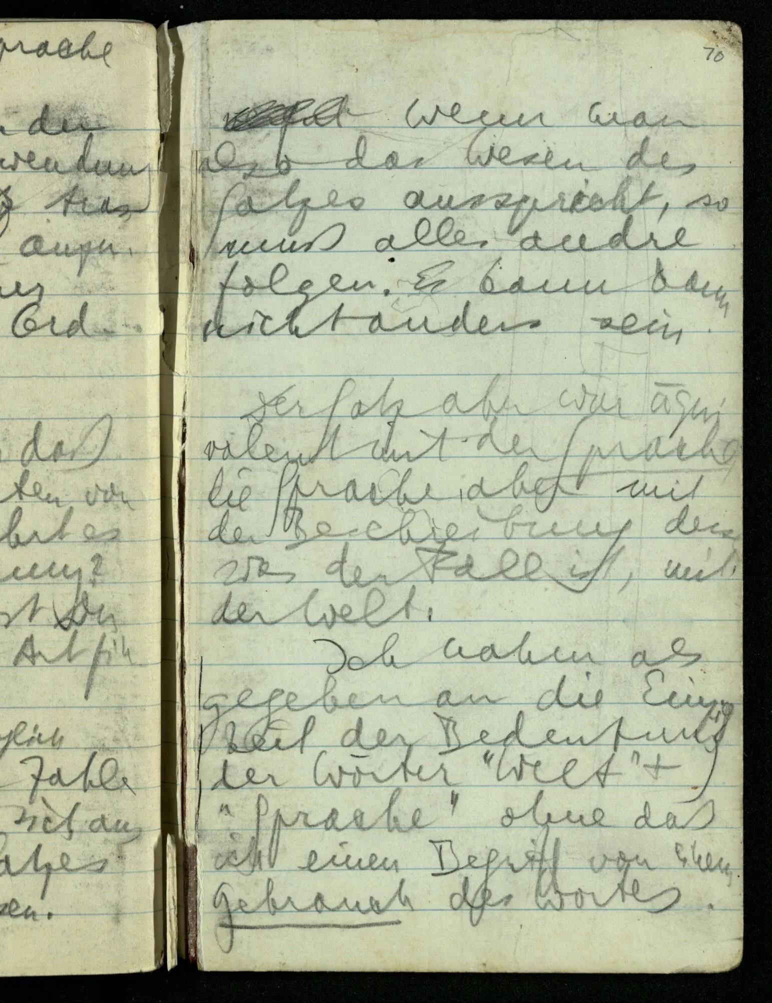 Ich nahm als gegeben an die Einzigkeit der Bedeutung der Wörter “Welt” & “Sprache” ohne daß ich einen Begriff von einem Gebrauch des Wortes …