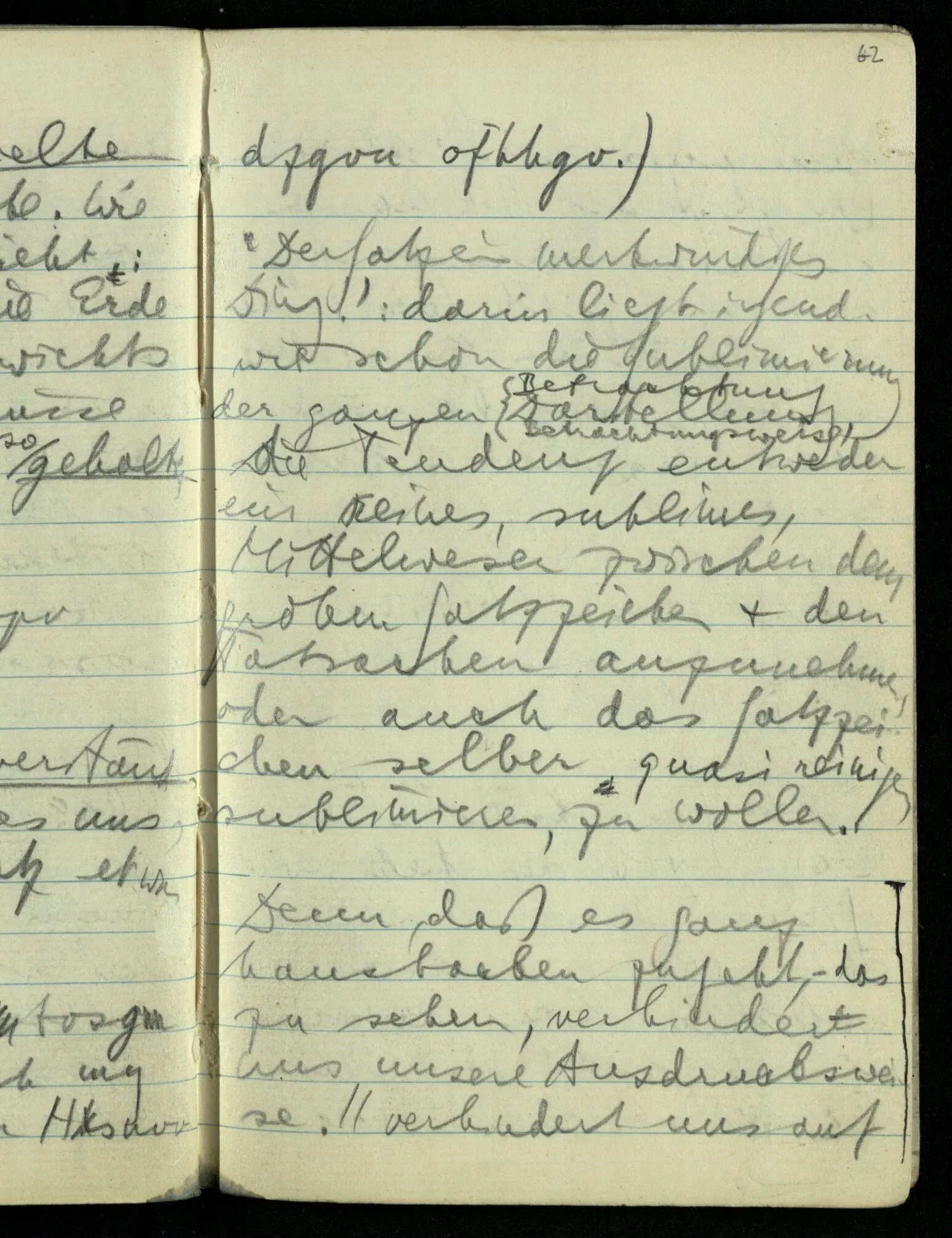 ‘Der Satz ein merkwürdiges Ding.’: darin liegt irgendwie schon die Sublimierung der ganzen Darstellung, die Tendenz entweder ein reines, sublimes, Mittelwesen zwischen dem groben Satzzeichen & den Tatsachen anzunehmen, oder auch das Satzzeichen selber quasi reinigen sublimieren, zu wollen.