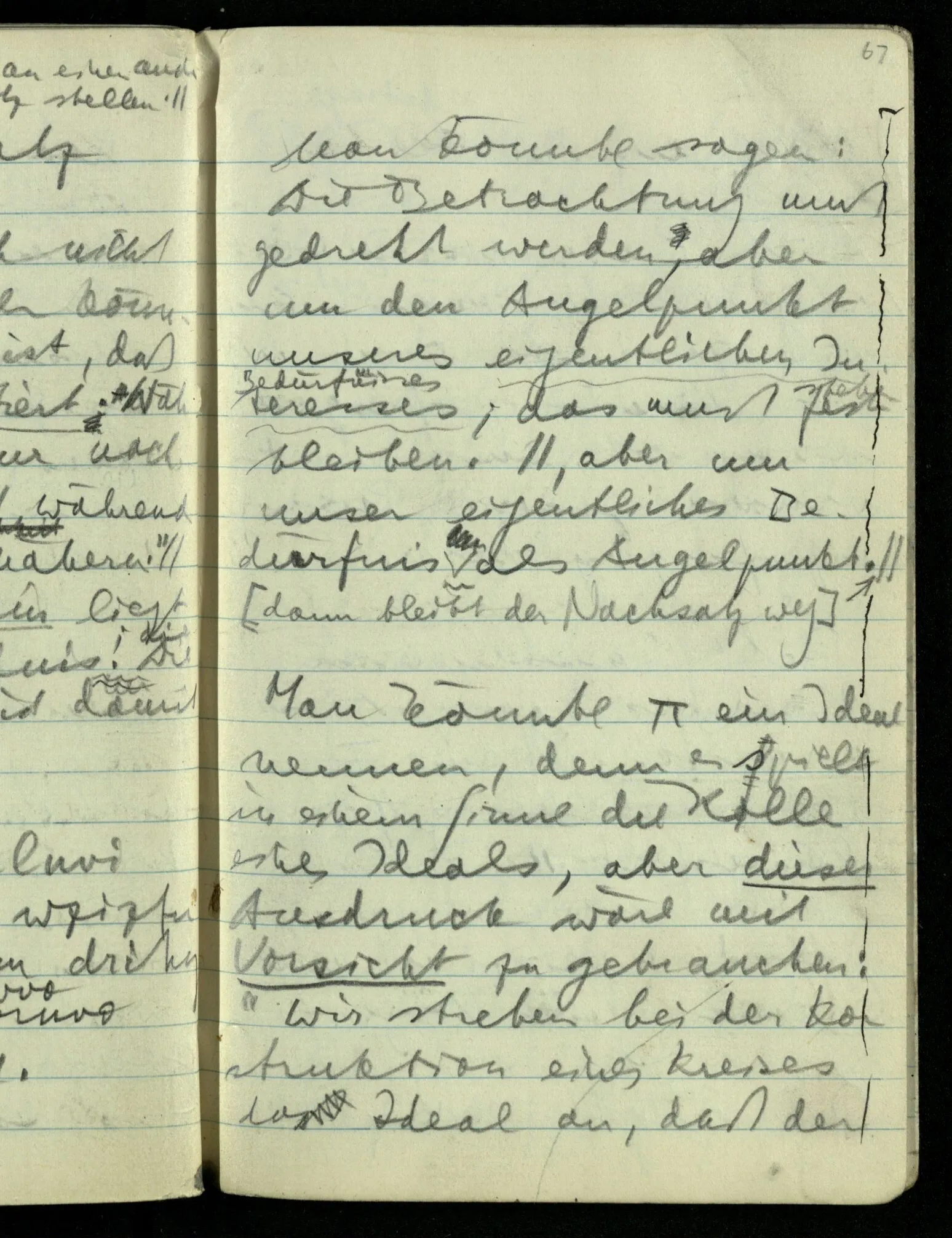 Man könnte sagen: Die Betrachtung muß gedreht werden aber um den Angelpunkt unseres eigentlichen Interesses; das muß festbleiben.bleiben.