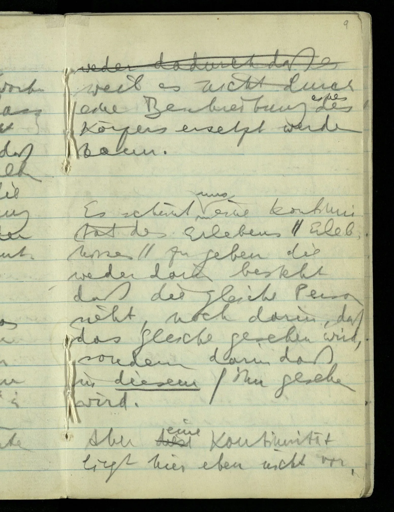 Es scheint uns eine Kontinuität des Erlebens zu geben die weder darin besteht daß die gleiche Person sieht, noch darin, daß das Gleiche gesehen wird, sondern darin daß in diesem Sinn gesehen wird.