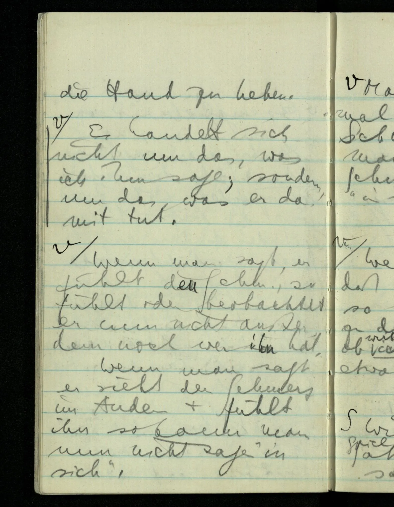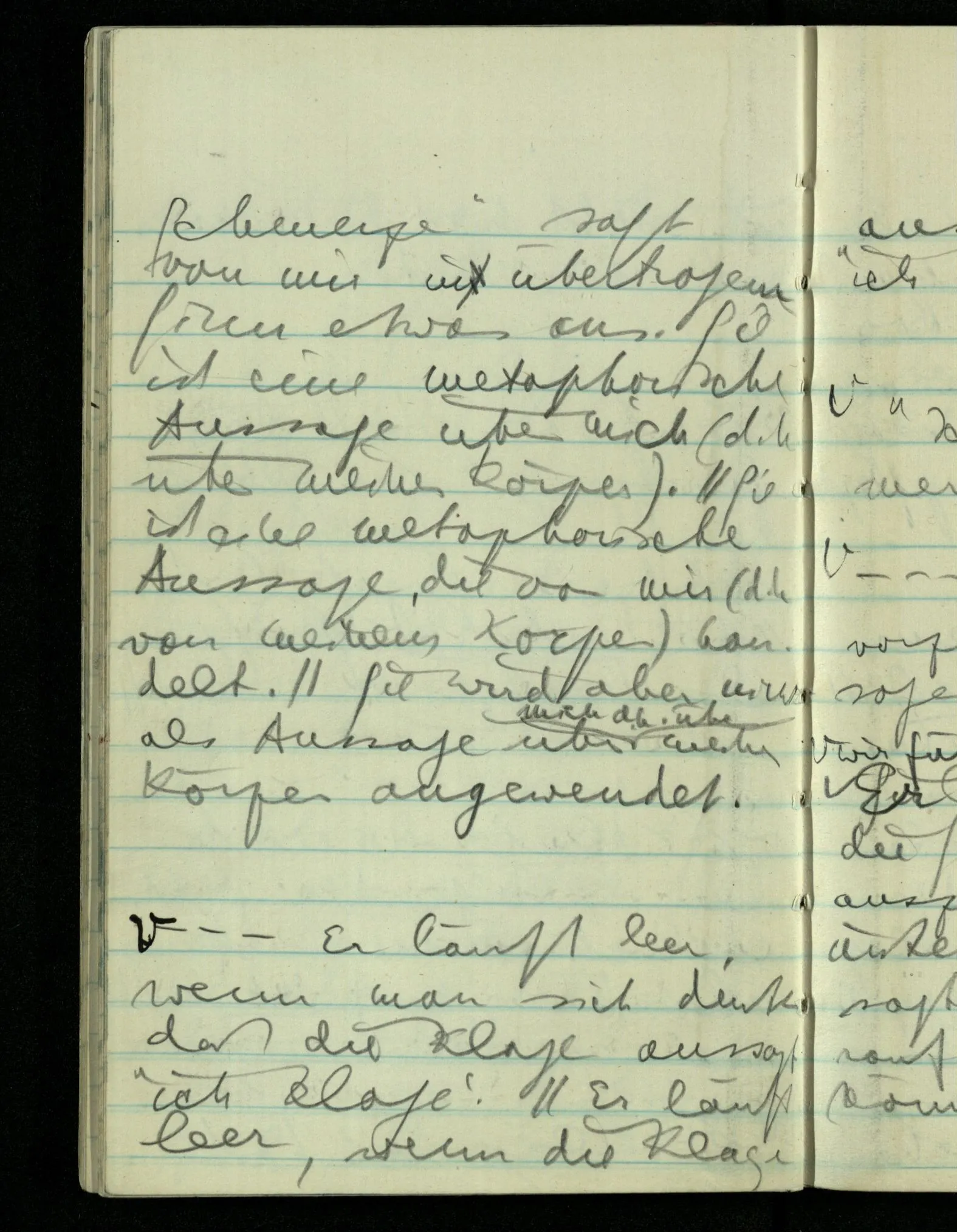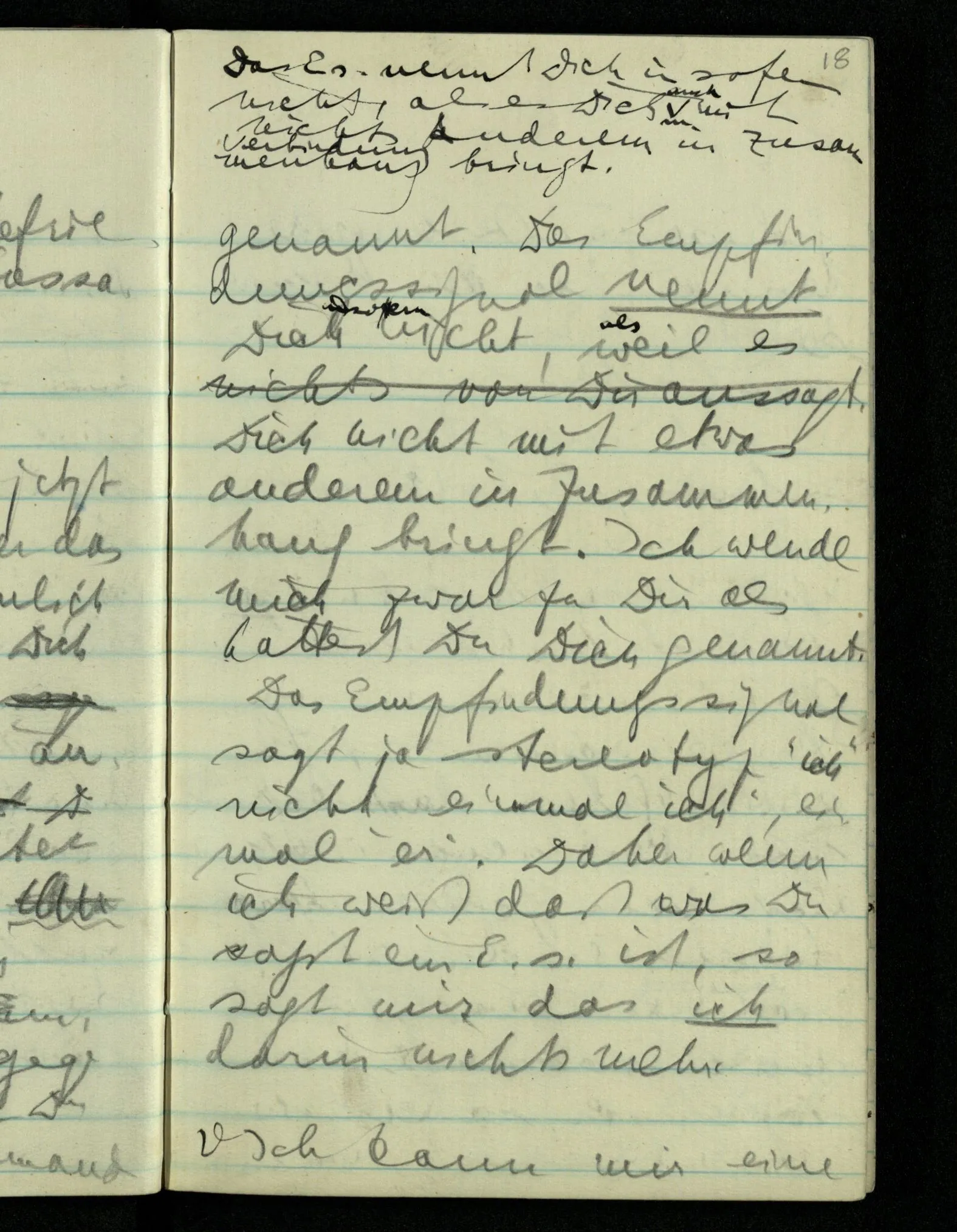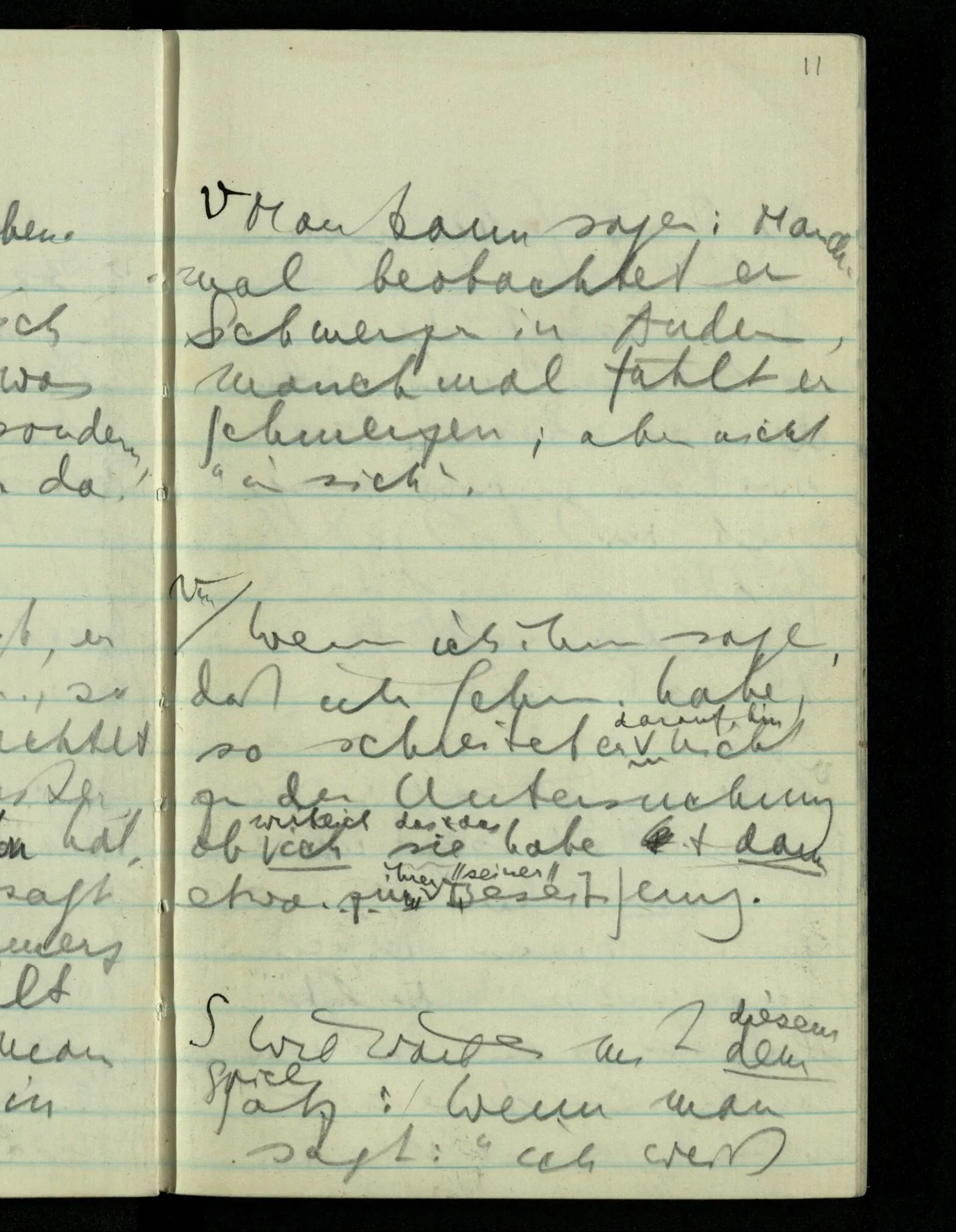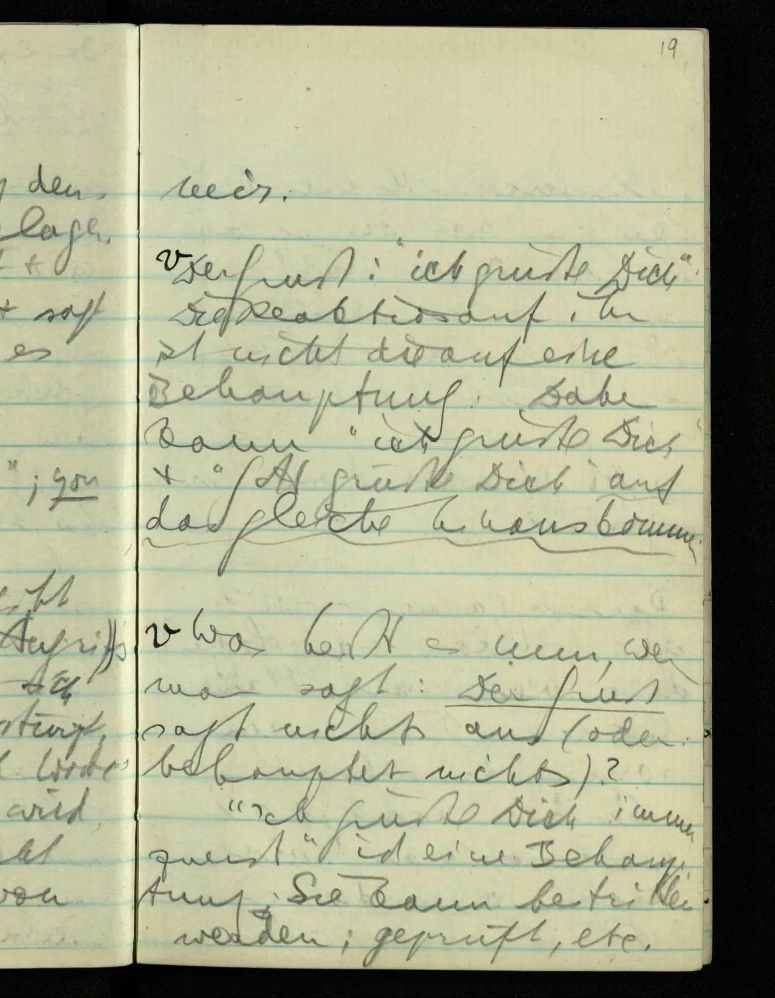 “Was heißt das, Du willst nicht sagen, daß Du etwas hast?” – Ich will nicht sagen daß jetzt etwas bei mir ist. Daß jetzt etwas eine Beziehung zu diesem Körper hat die es sonst zu einem andern hat.