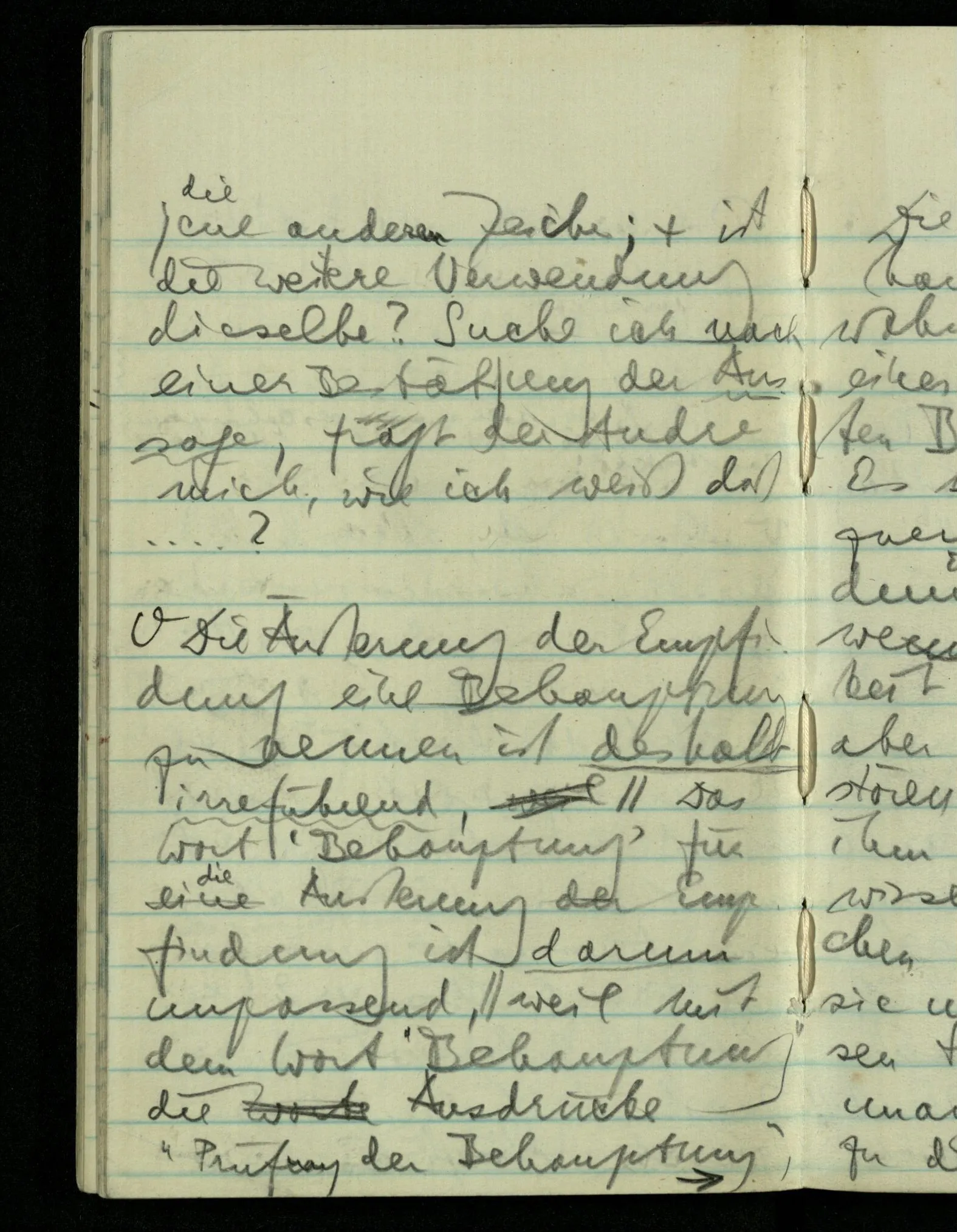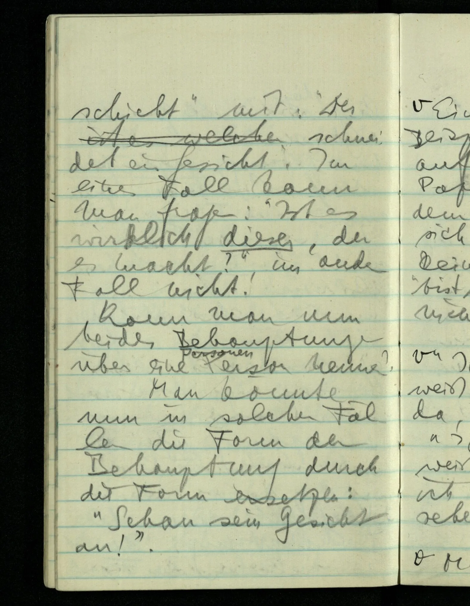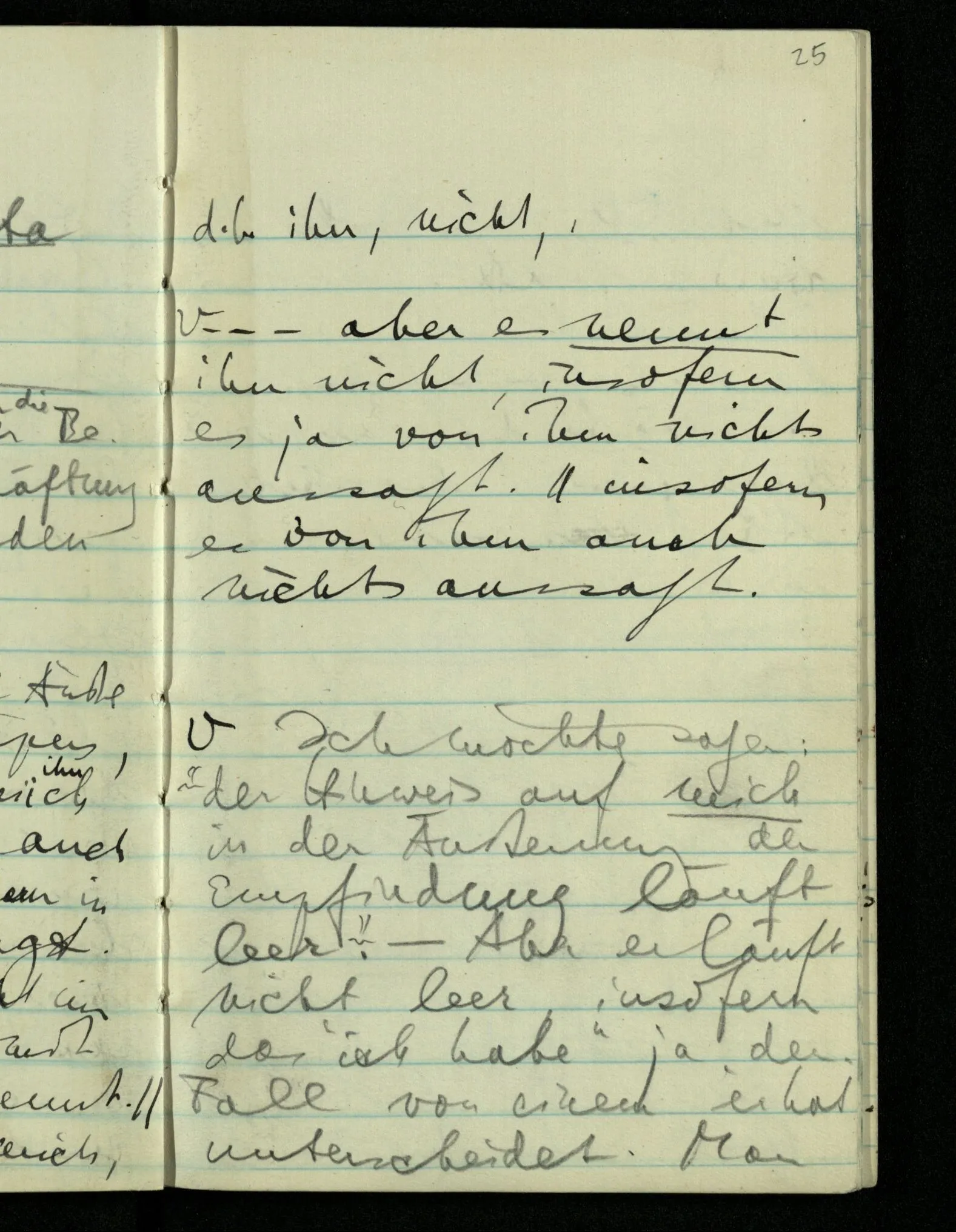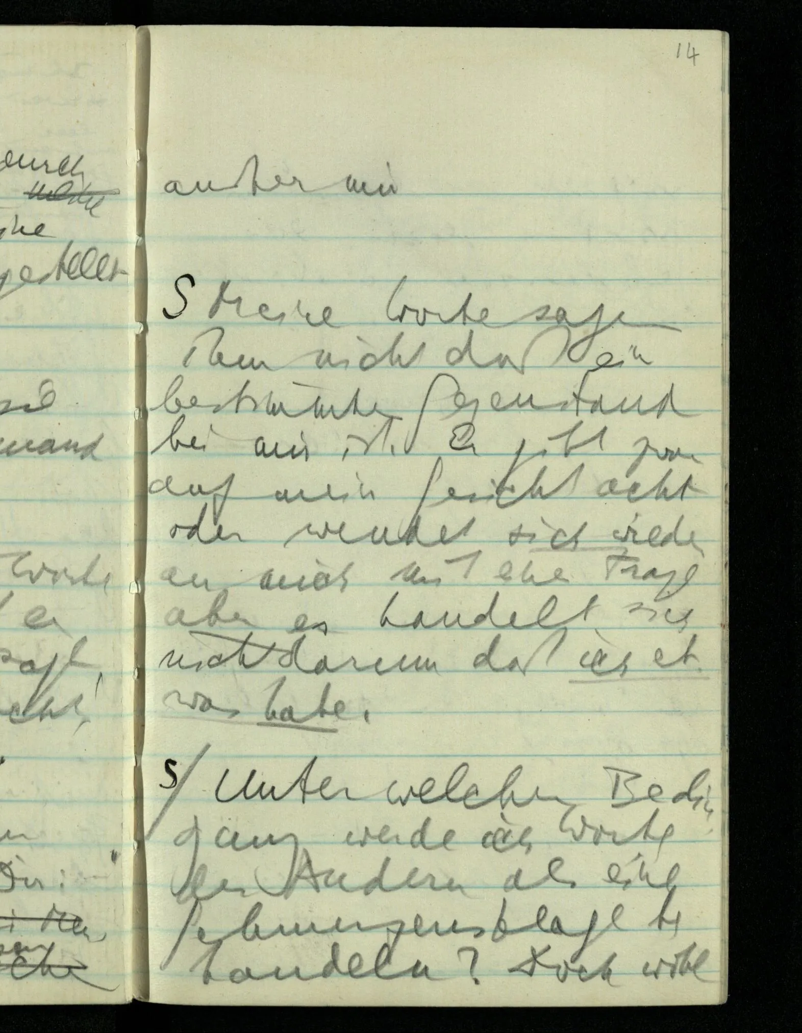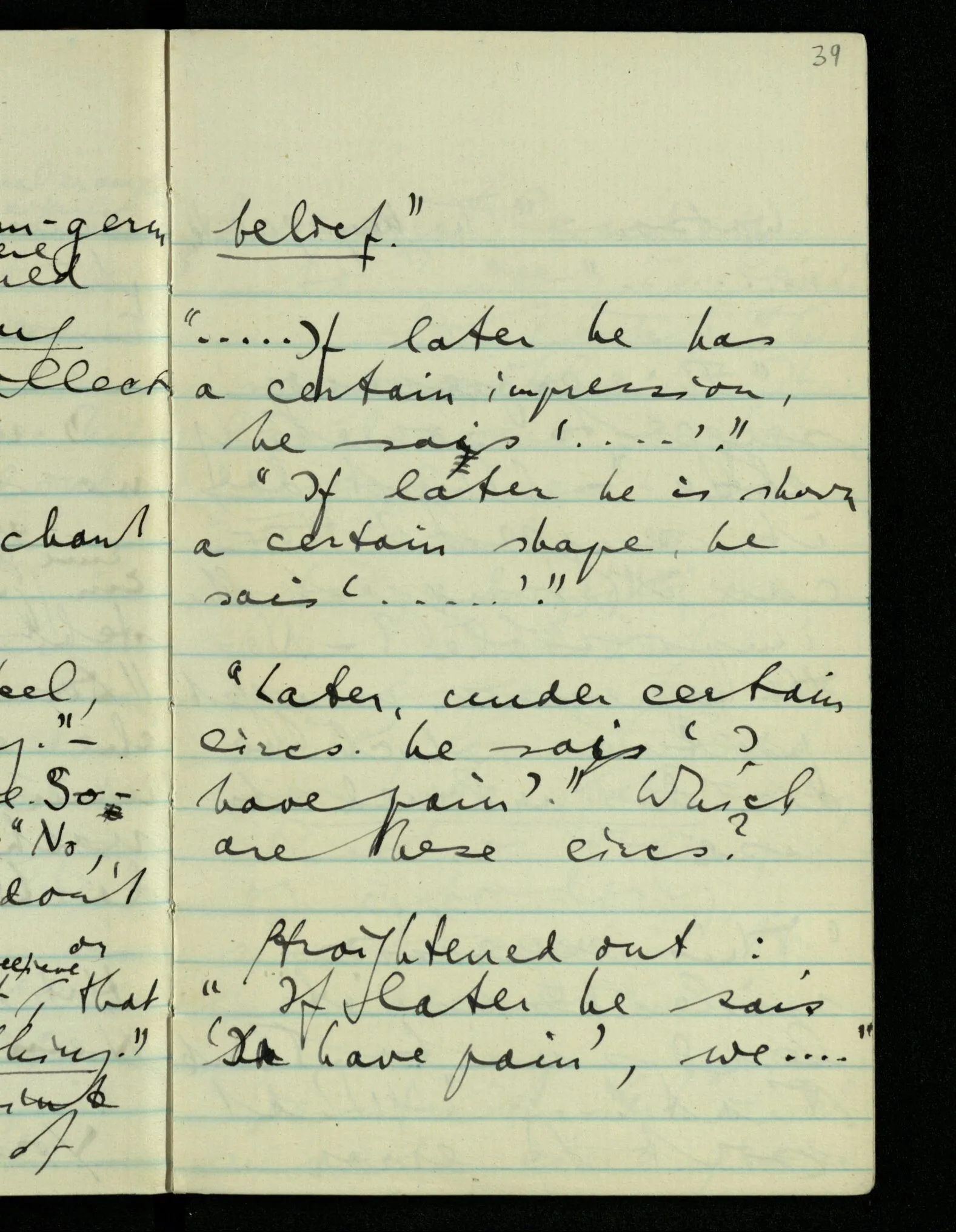 “Was heißt das, Du willst nicht sagen, daß Du etwas hast?” – Ich will nicht sagen daß jetzt etwas bei mir ist. Daß jetzt etwas eine Beziehung zu diesem Körper hat die es sonst zu einem andern hat.