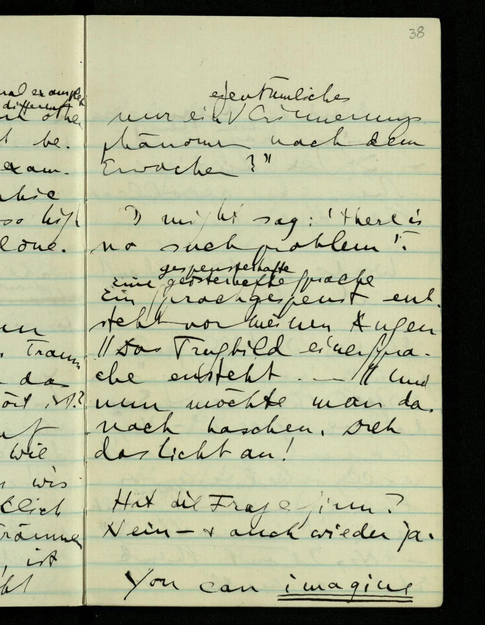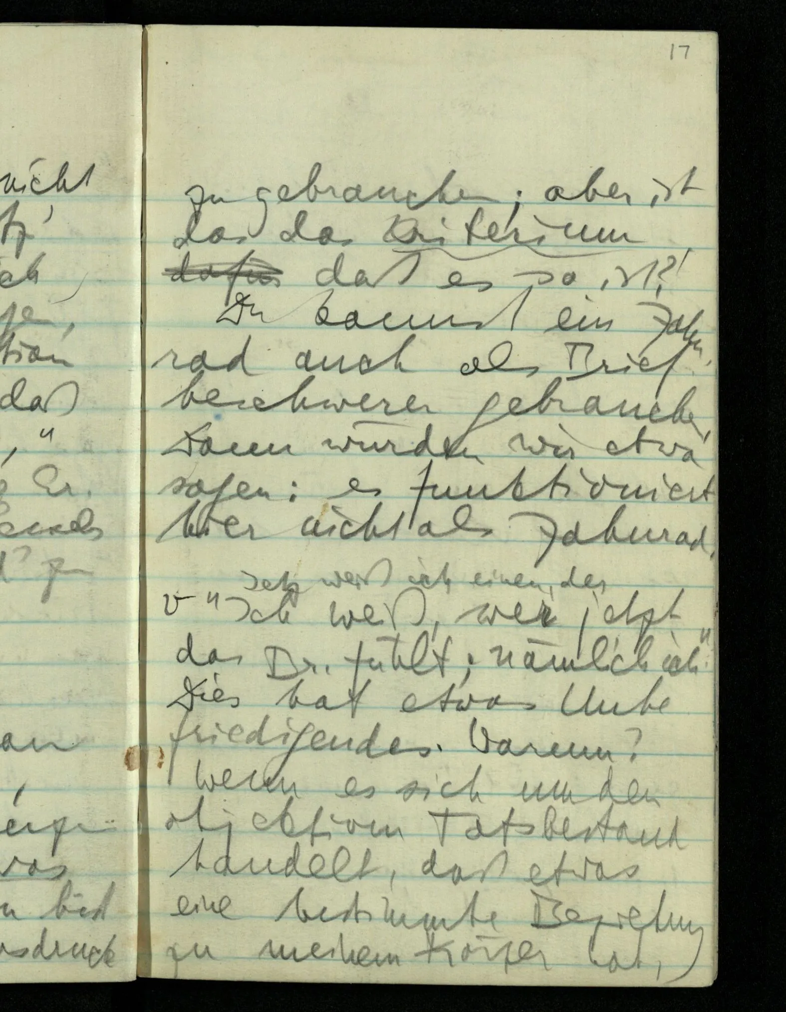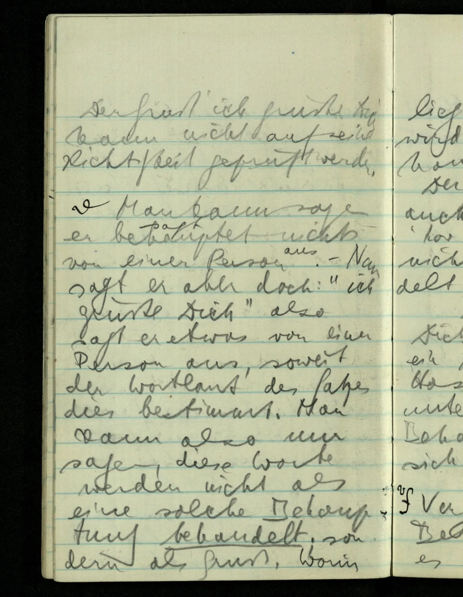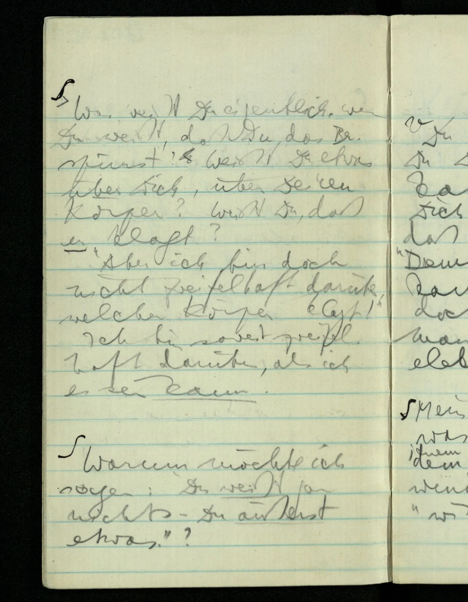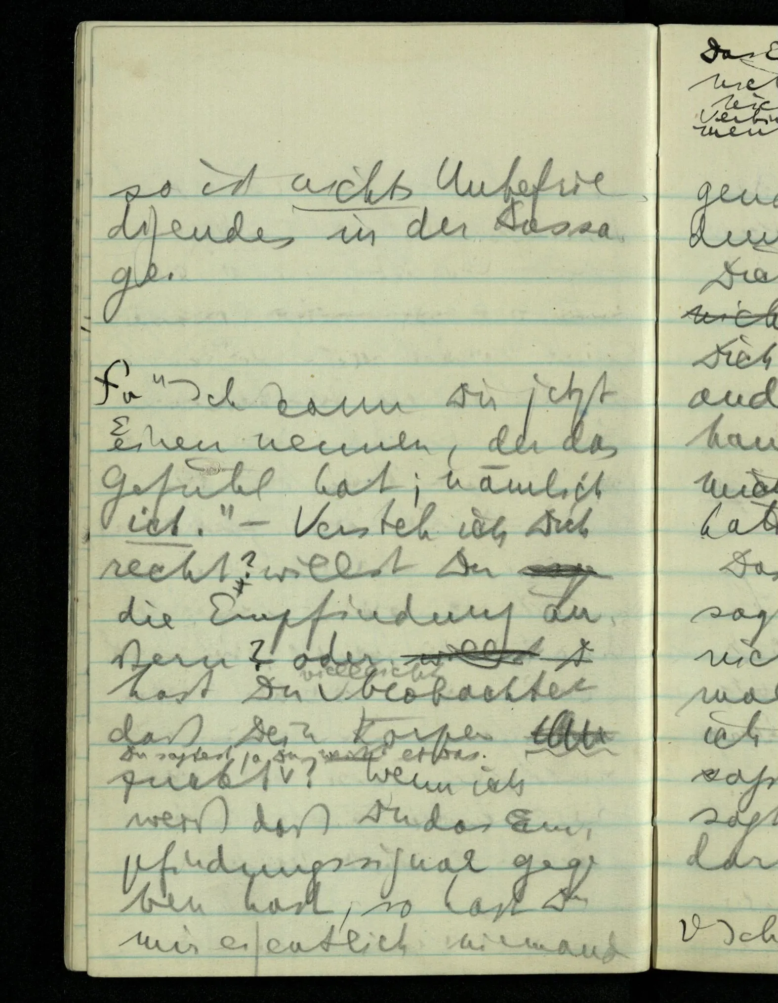 “Was heißt das, Du willst nicht sagen, daß Du etwas hast?” – Ich will nicht sagen daß jetzt etwas bei mir ist. Daß jetzt etwas eine Beziehung zu diesem Körper hat die es sonst zu einem andern hat.