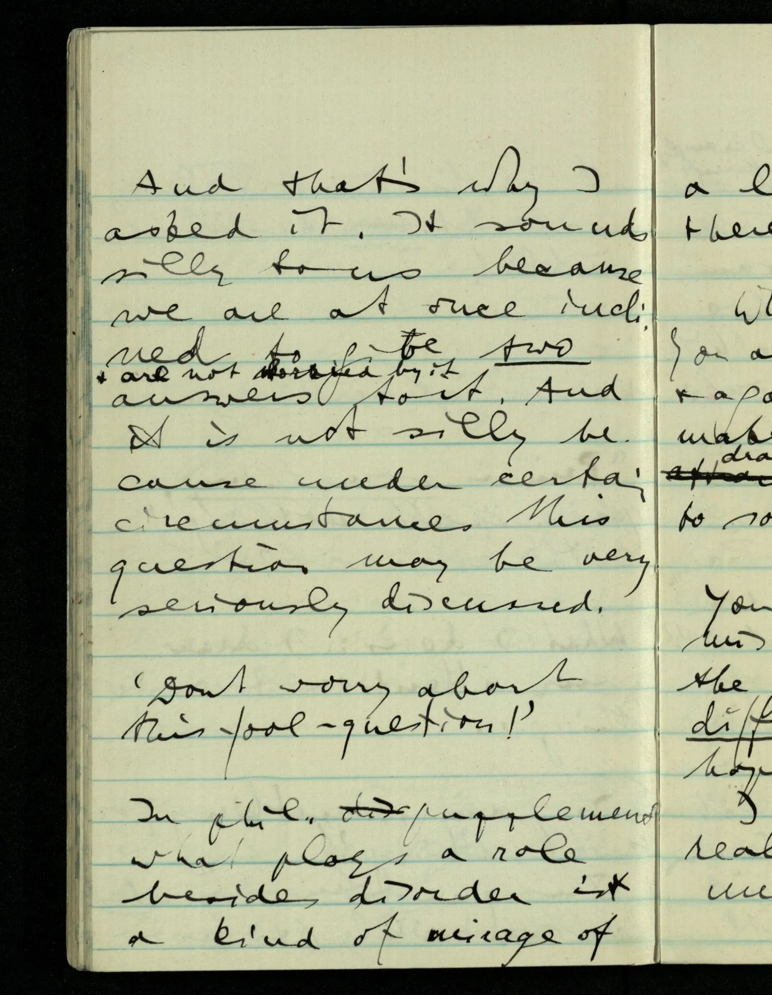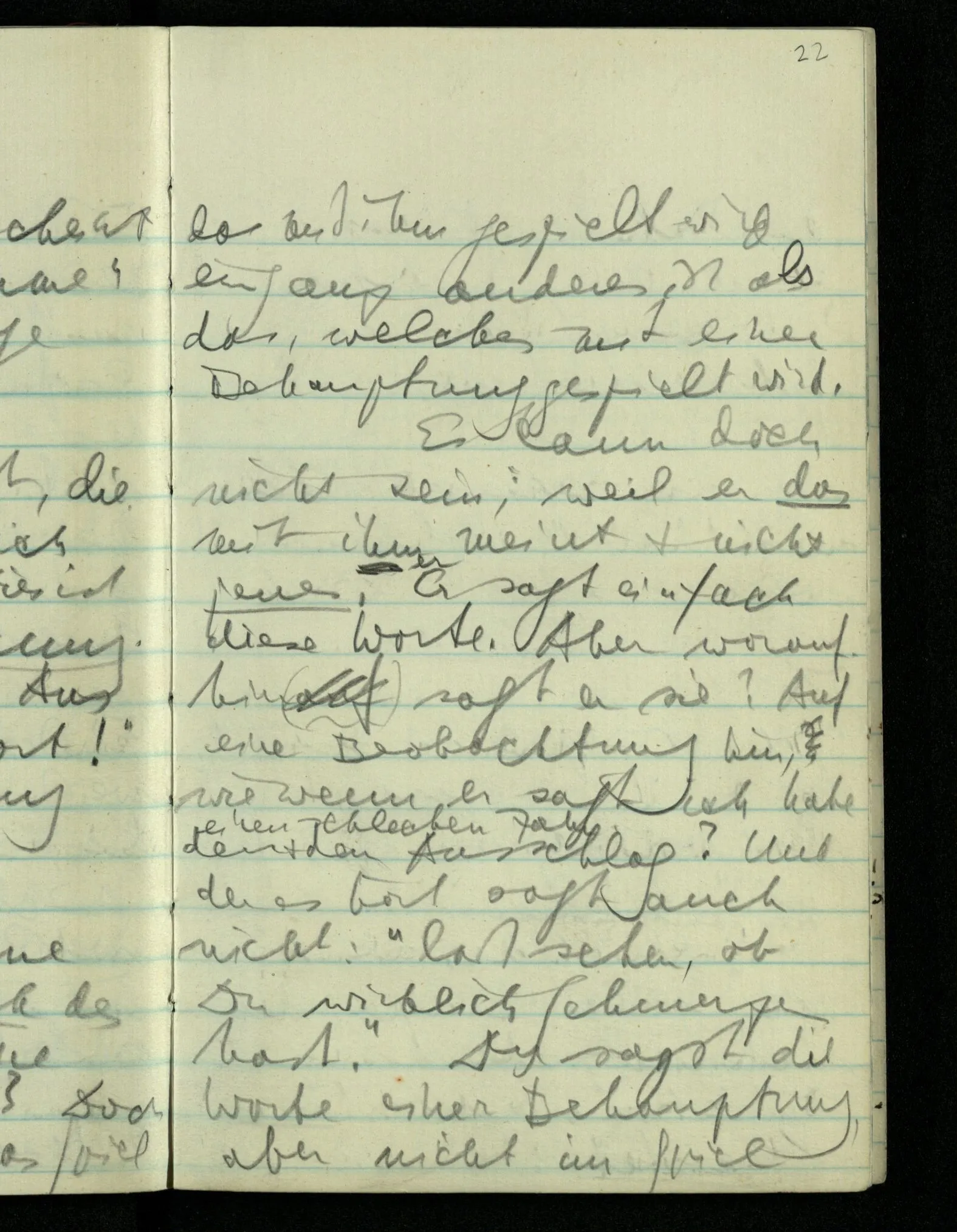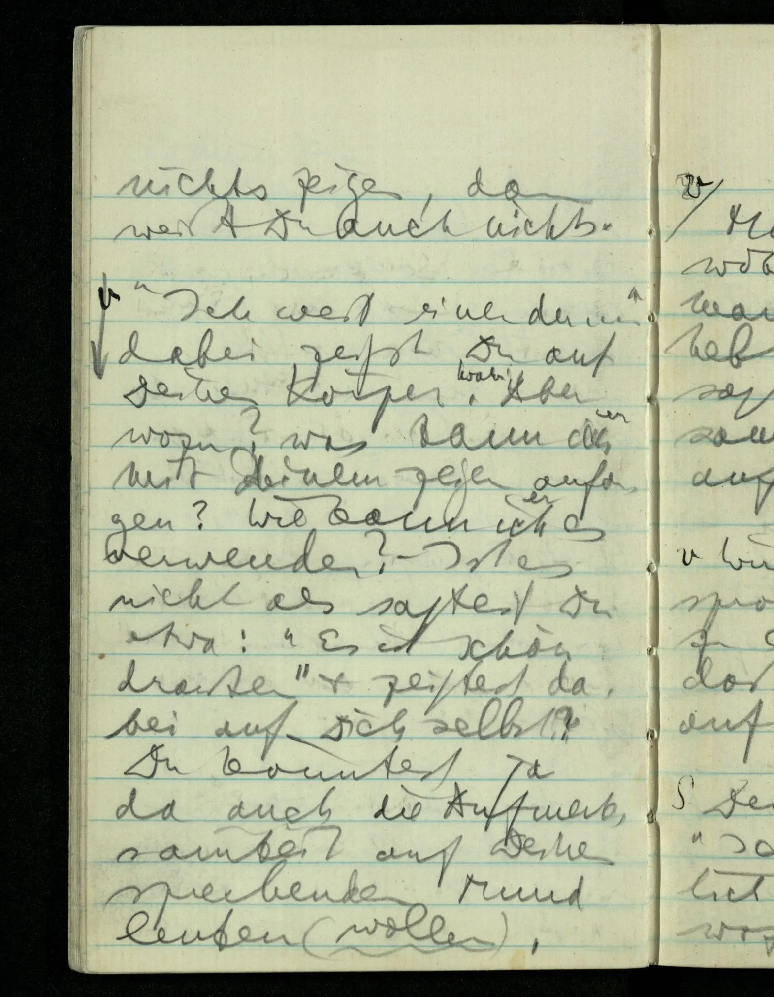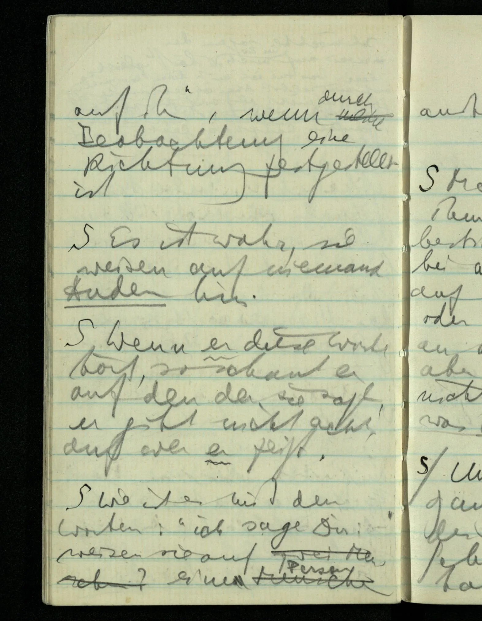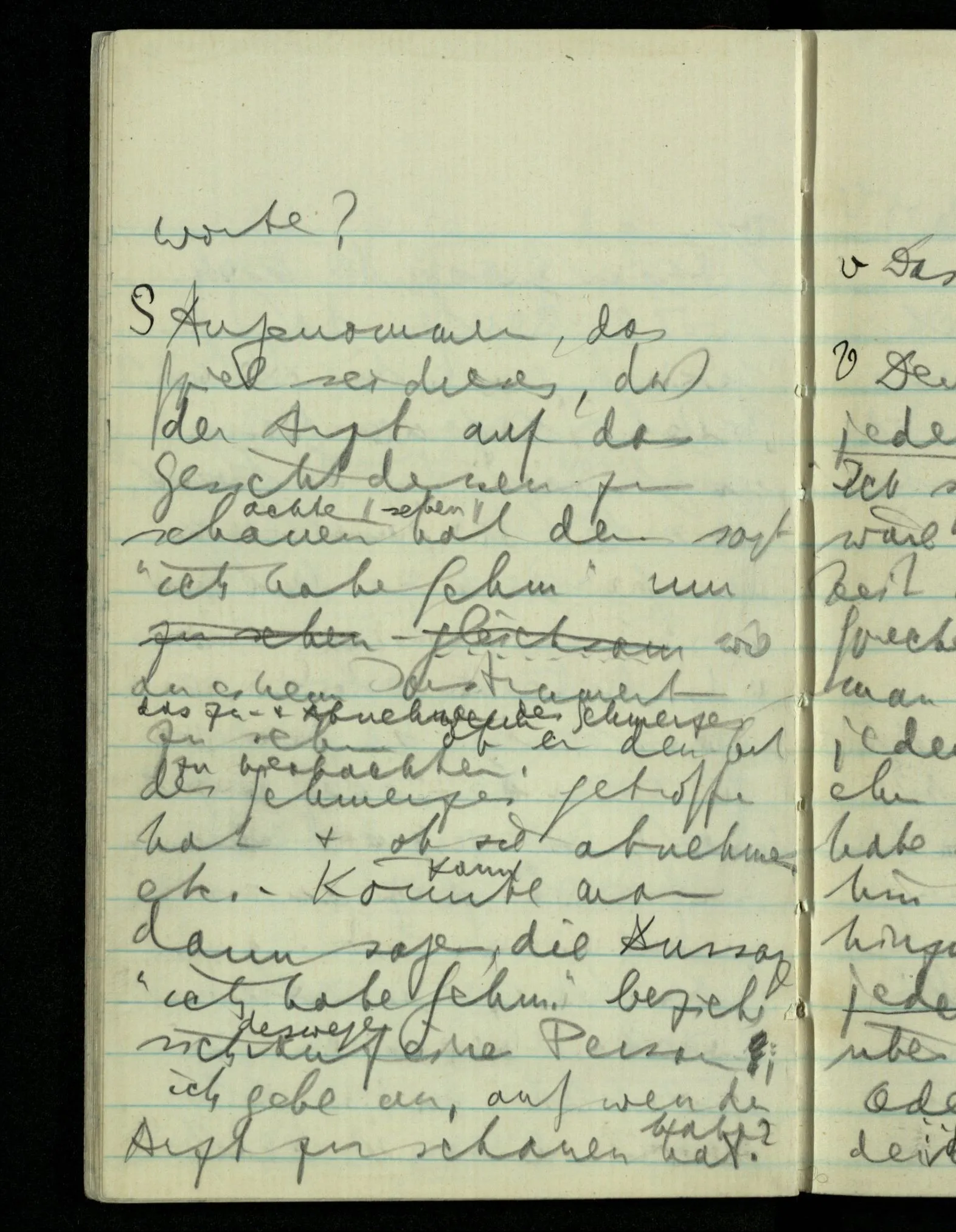 “Was heißt das, Du willst nicht sagen, daß Du etwas hast?” – Ich will nicht sagen daß jetzt etwas bei mir ist. Daß jetzt etwas eine Beziehung zu diesem Körper hat die es sonst zu einem andern hat.