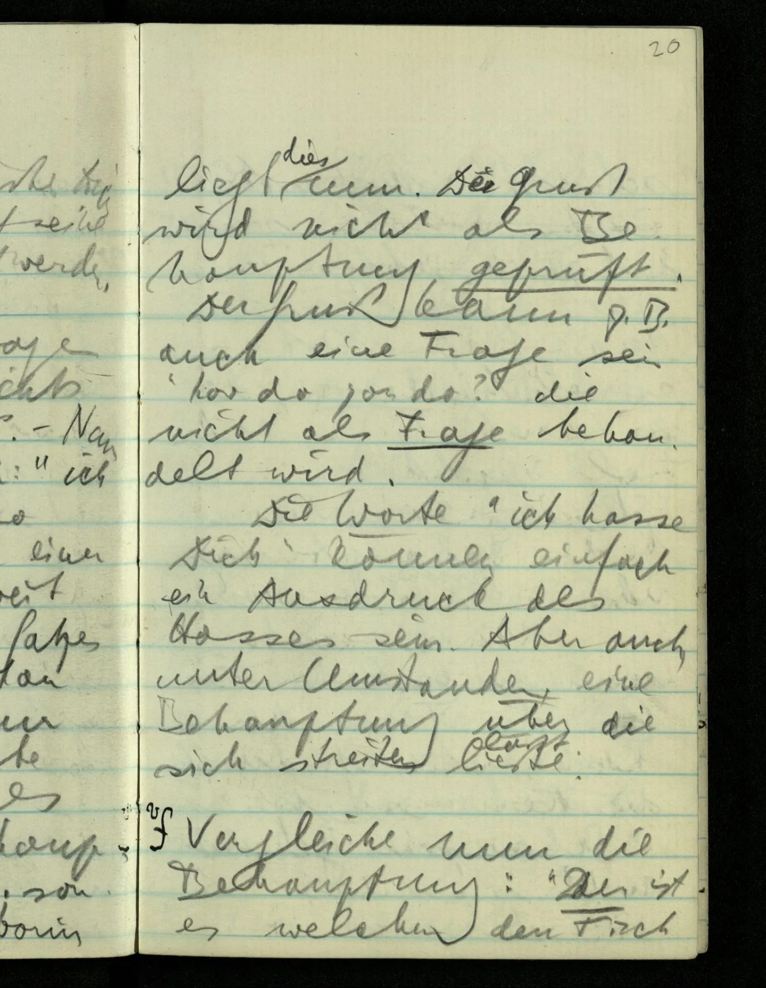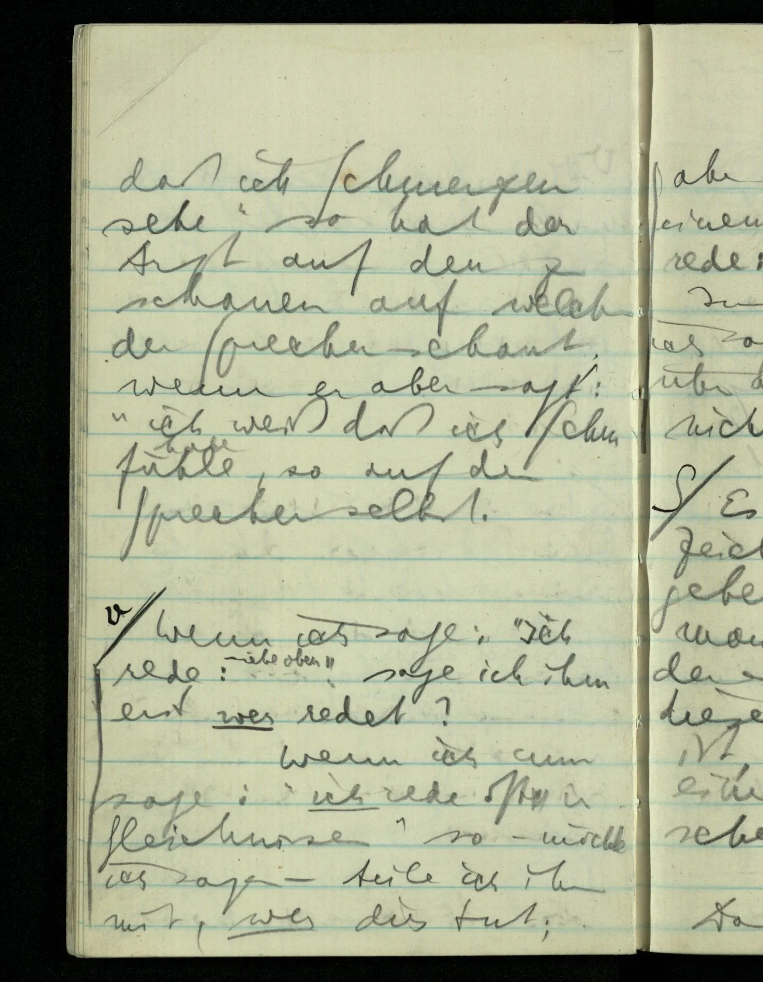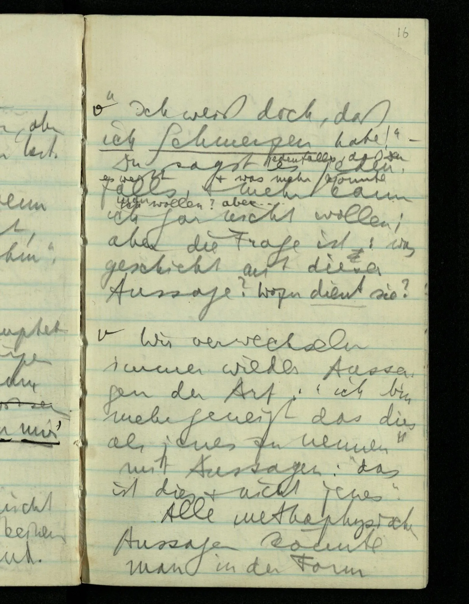 Wenn ich fühle, d.h. sagen will, daß die Schmerzäußerung durch etwas, durch den Schmerz, gerechtfertigt ist, & wenn ich mir sagen muß, daß sie durch nichts gerechtfertigt ist, – ist sie dann gerechtfertigt oder nicht?