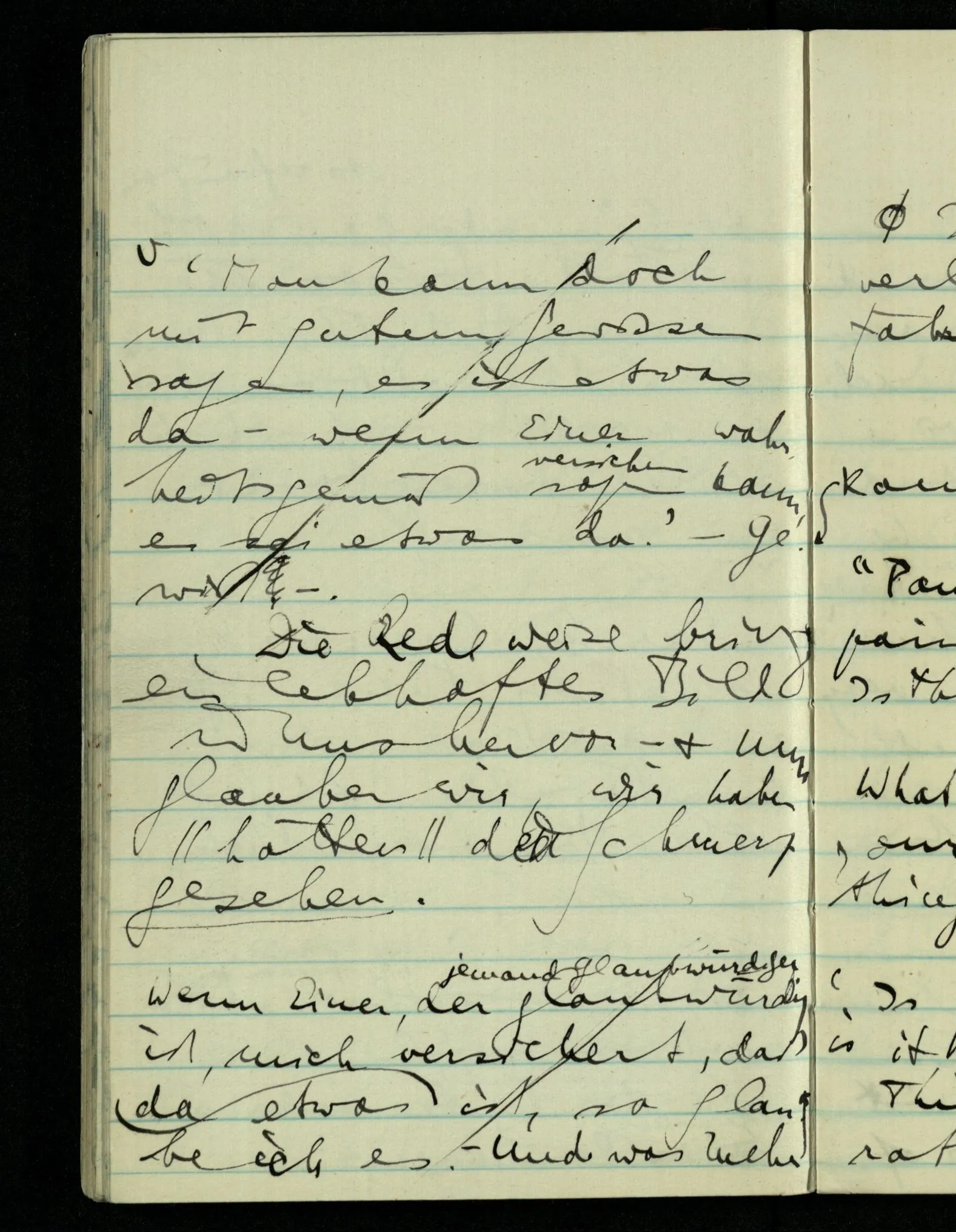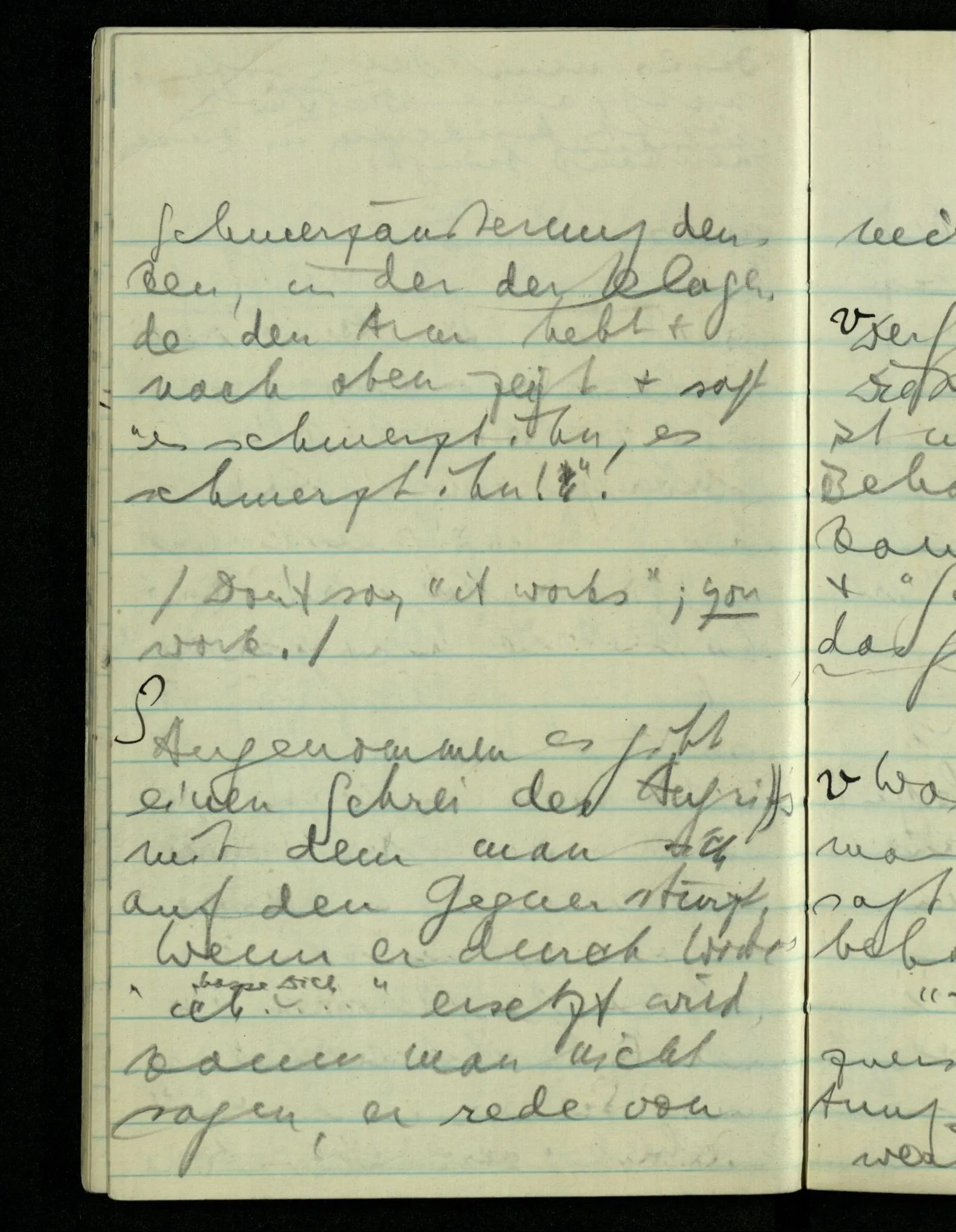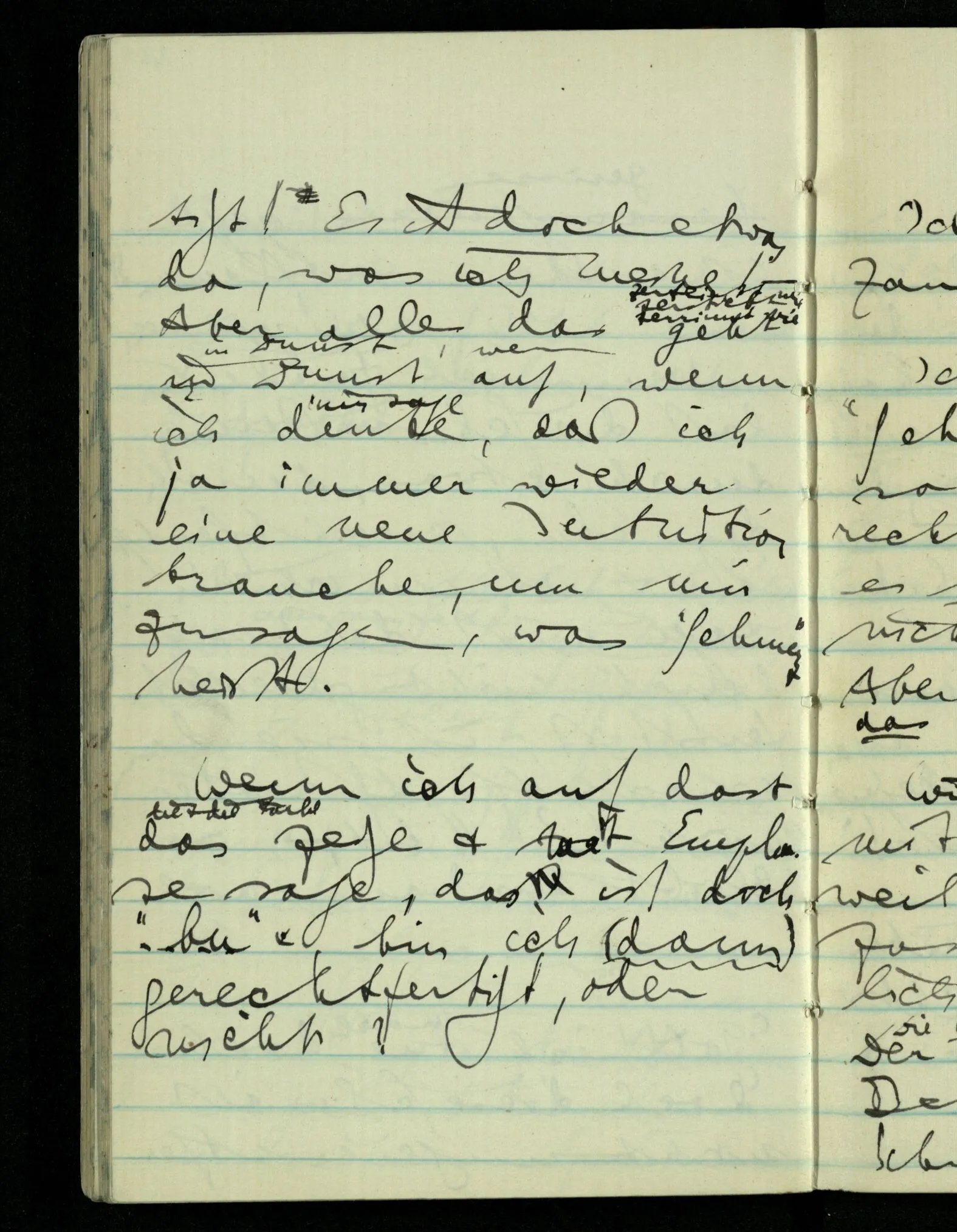 Wenn ich fühle, d.h. sagen will, daß die Schmerzäußerung durch etwas, durch den Schmerz, gerechtfertigt ist, & wenn ich mir sagen muß, daß sie durch nichts gerechtfertigt ist, – ist sie dann gerechtfertigt oder nicht?