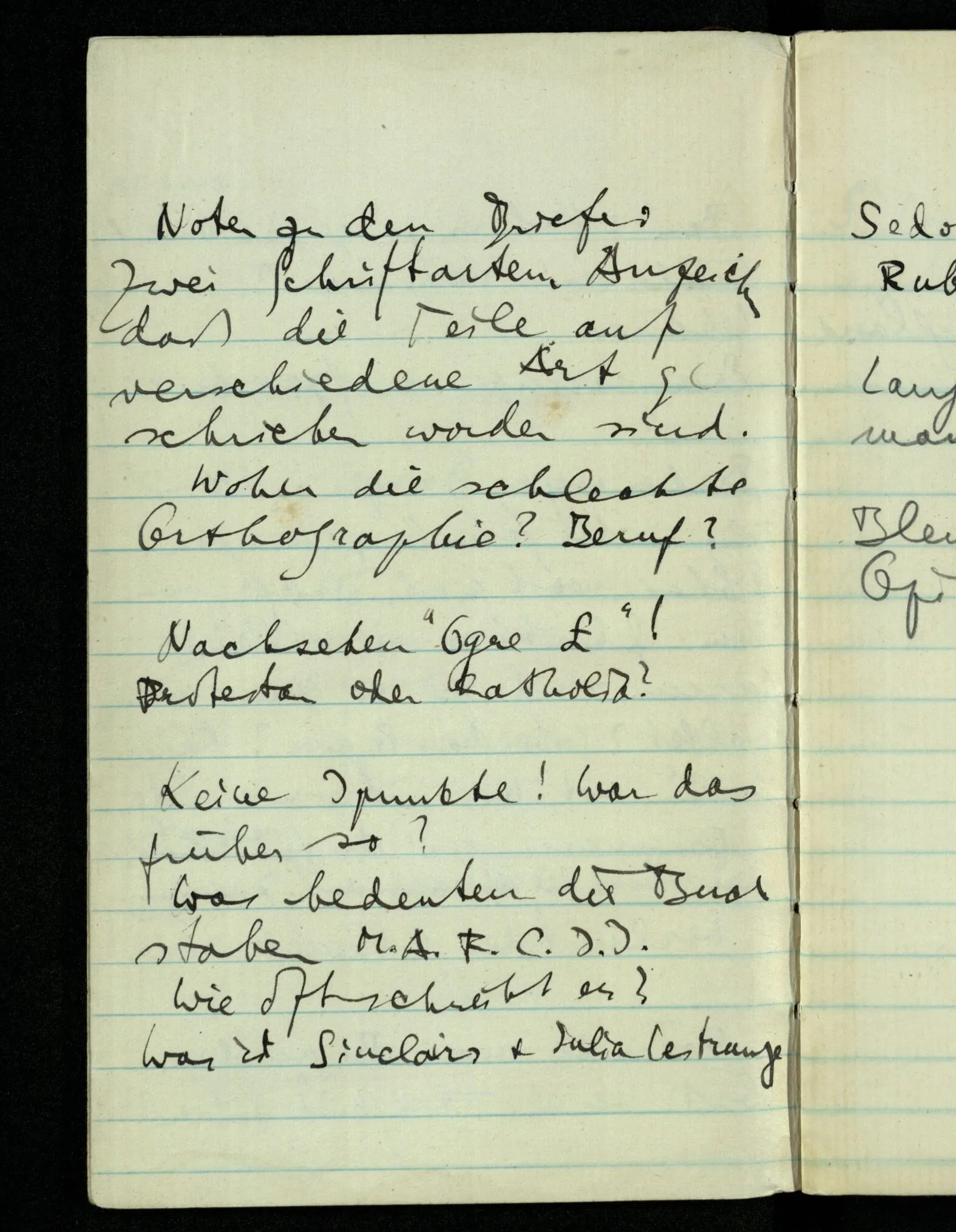 Noten zu den Briefen: Zwei Schriftarten, Anzeichen daß die Teile auf verschiedene Art geschrieben worden sind. Woher die schlechte Orthographie? Beruf?