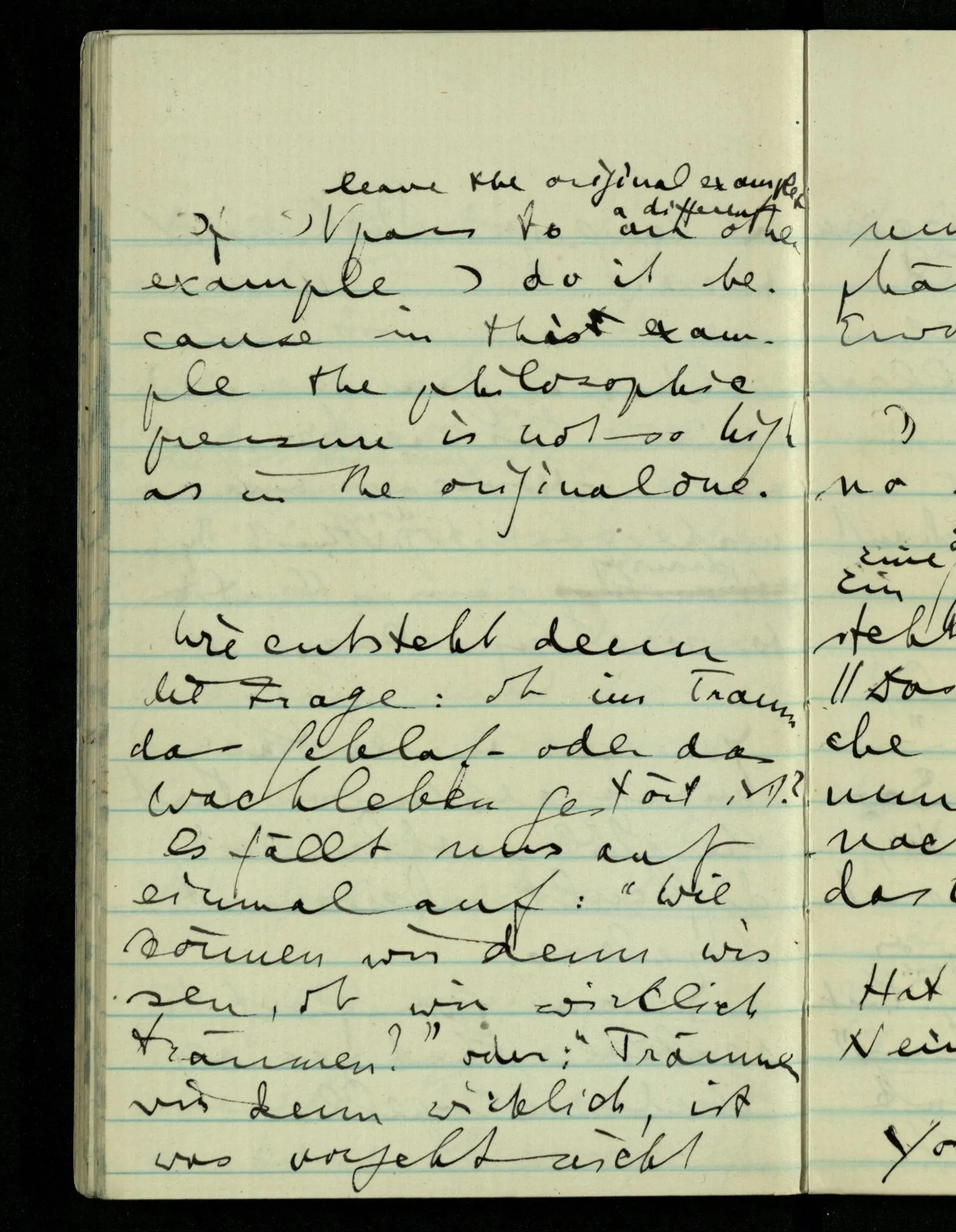 Wie entsteht denn die Frage: ob im Traum das Schlaf- oder das Wachleben gestört ist. Es fällt uns auf einmal auf: “Wie können wir denn wissen, ob wir wirklich träumen?” oder: “Träumen wir denn wirklich, ist was vorgeht nicht nur ein eigentliches Erinnerungsphänomen nach dem Erwachen?”