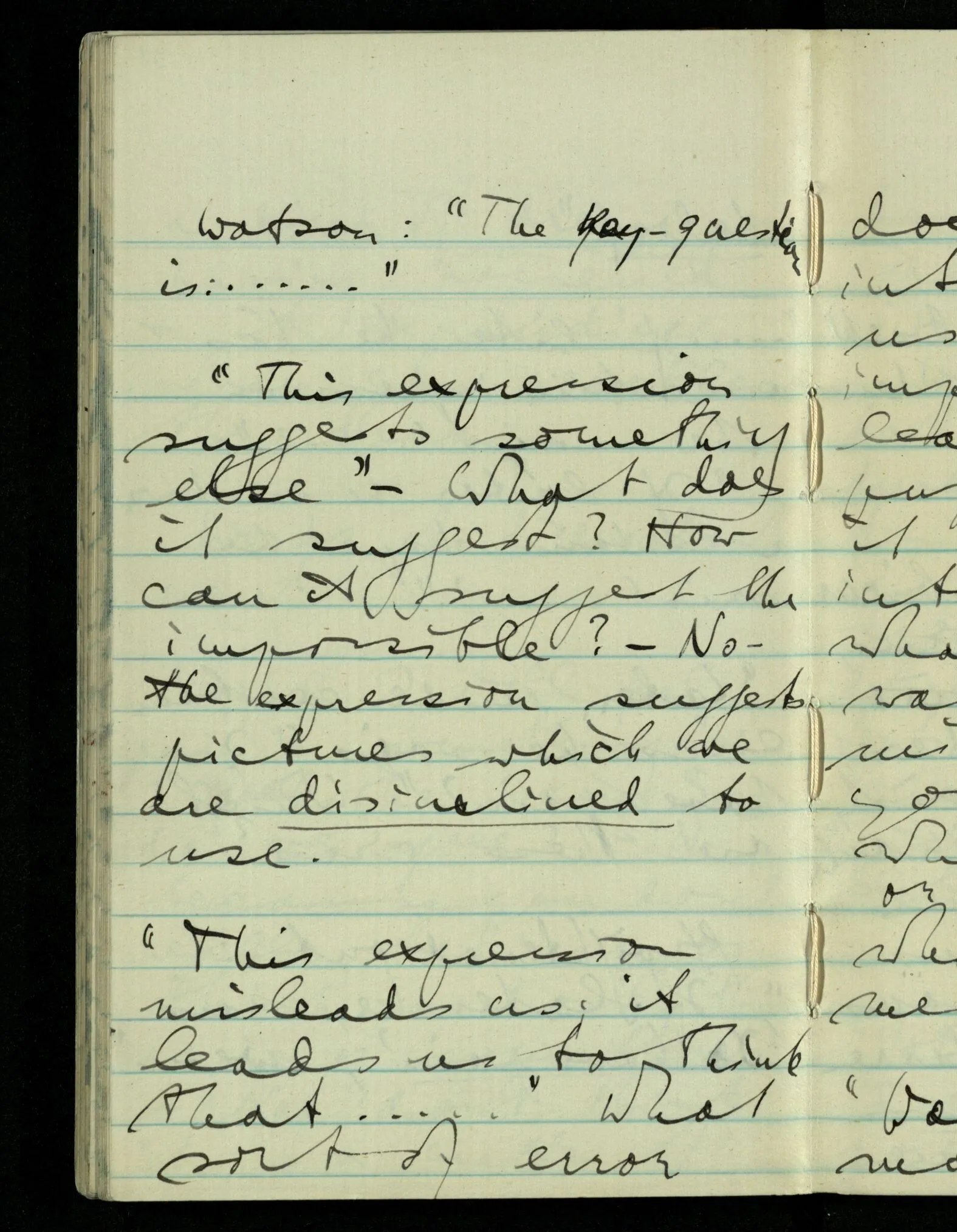 “This expression suggests something else.” – What does it suggest? How can it suggest the impossible? – No – the expression suggests pictures which we are disinclined to use.
