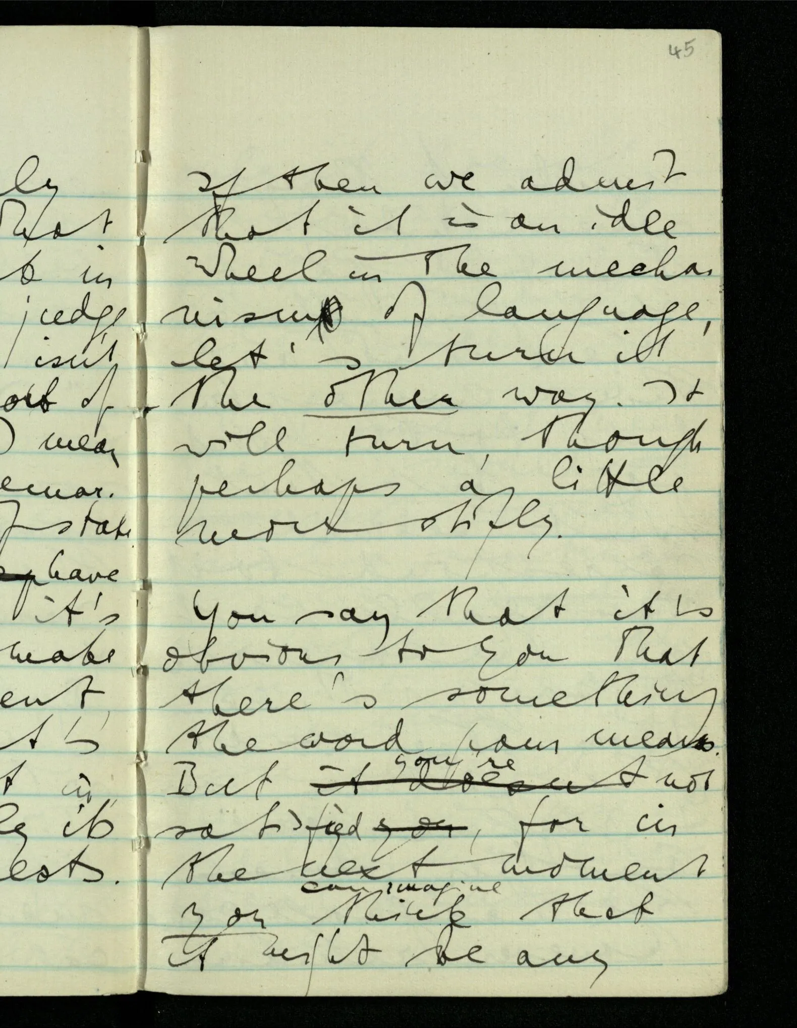 If then we admit that it is an idle wheel in the mechanism of language, let’s turn it the other way. It will turn, though perhaps a little more stiffly.