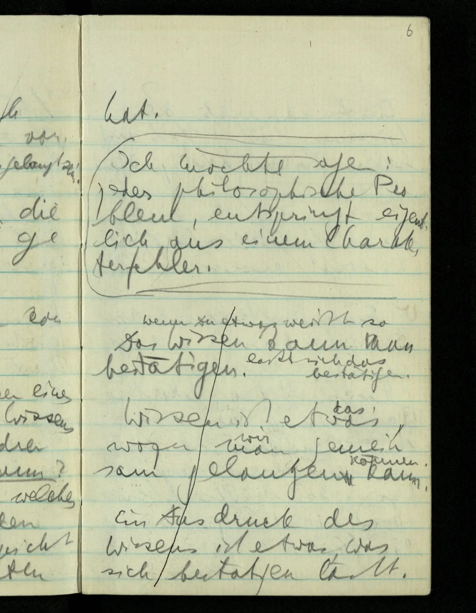 Ich möchte sagen: jedes philosophische Problem, entspringt eigentlich aus einem Charakterfehler.