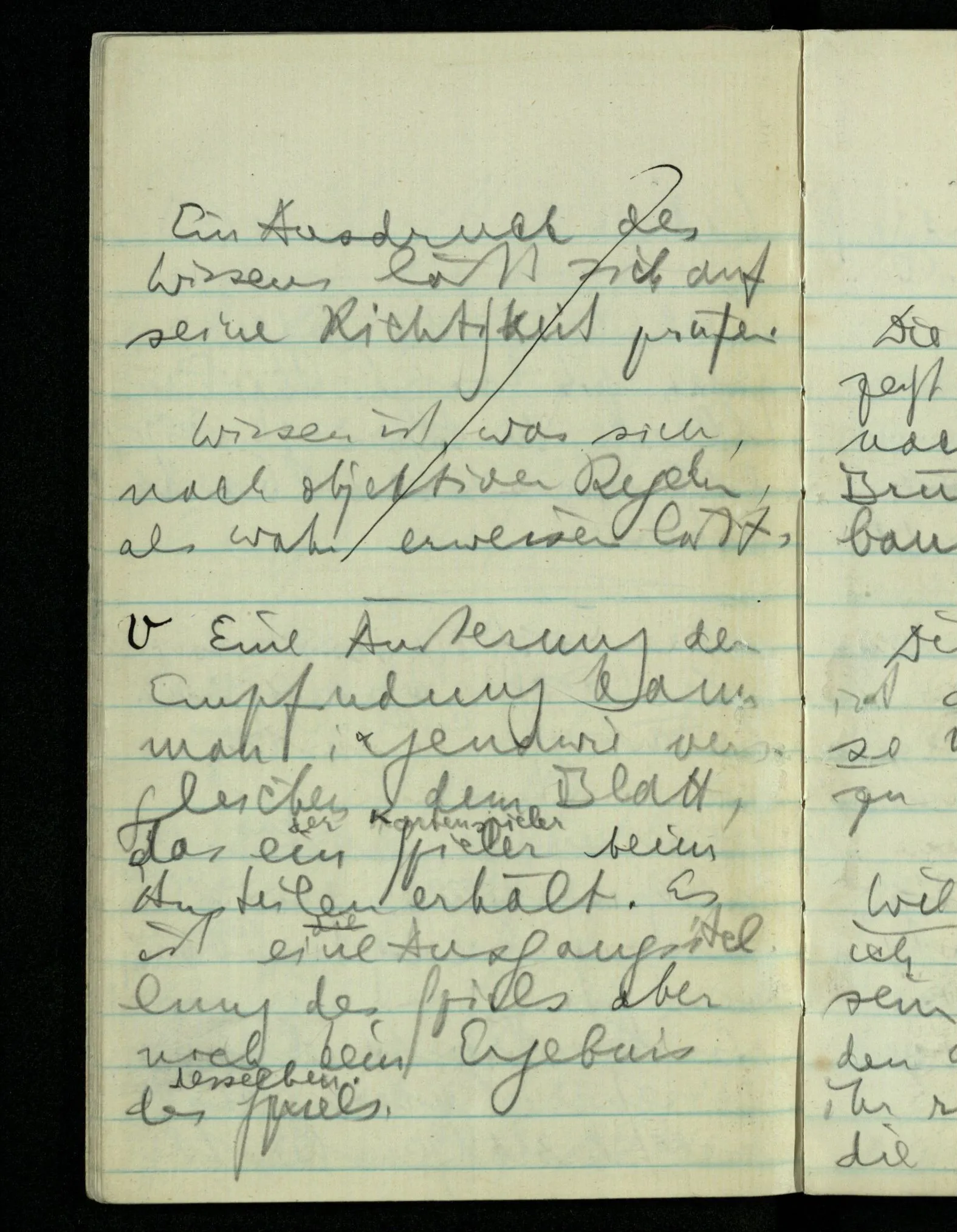 Eine Äußerung der Empfindung kann man irgendwie vergleichen dem Blatt, das ein Spieler beim Austeilen erhält. Es ist eine Ausgangsstellung des Spiels aber noch kein Ergebnis des Spiels.
