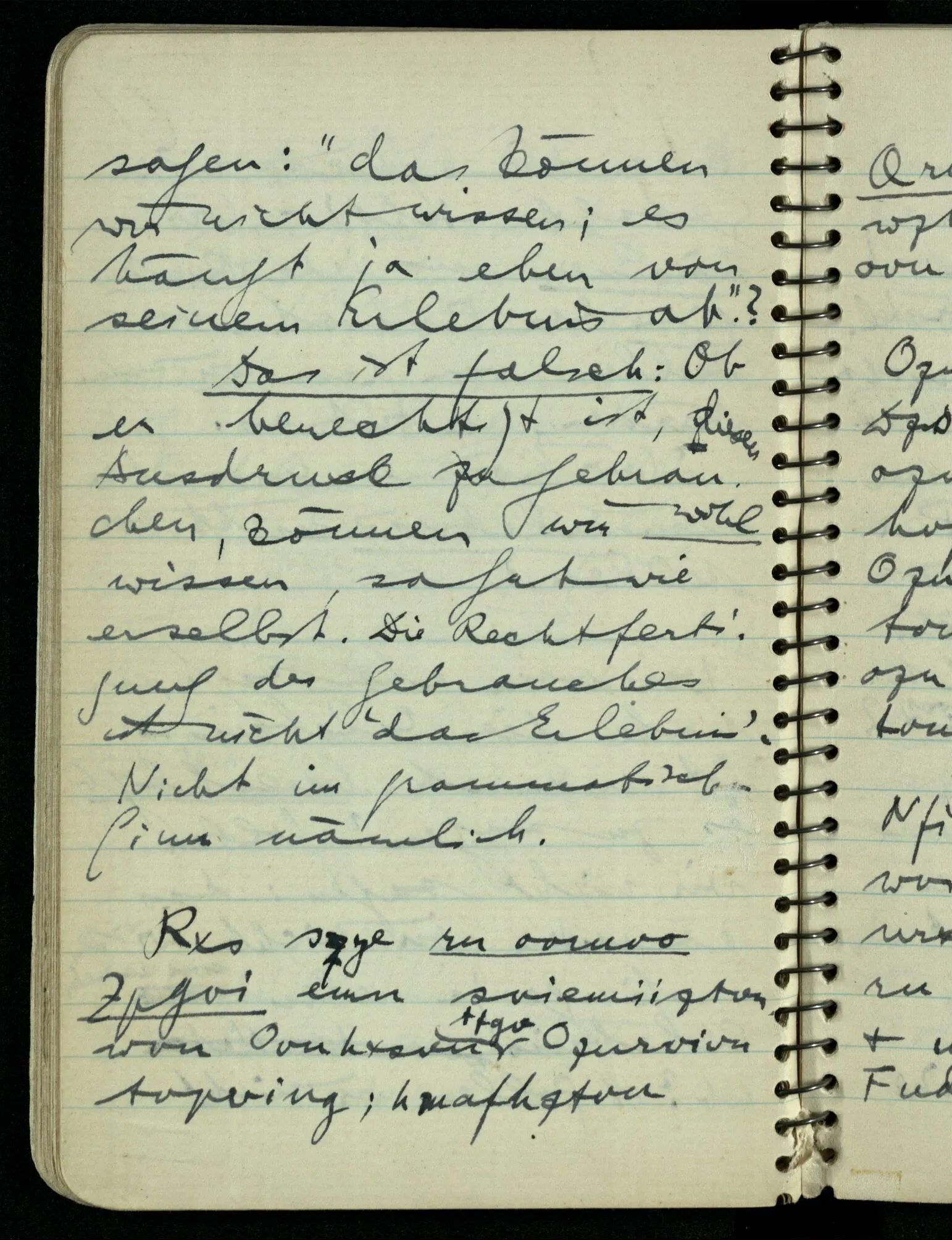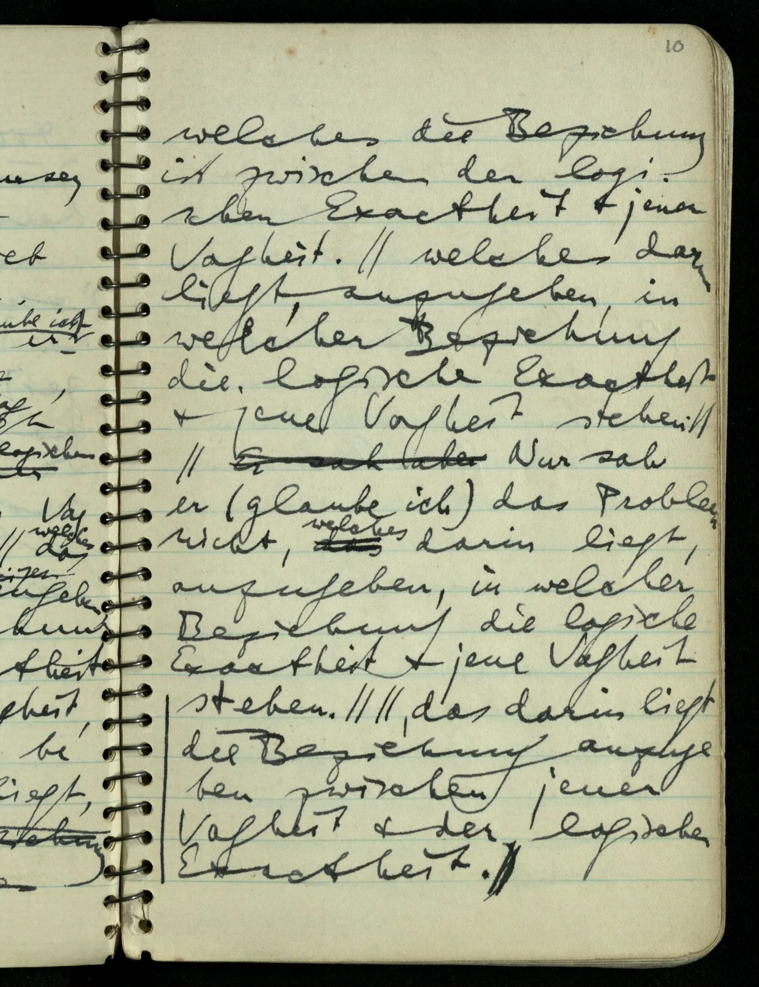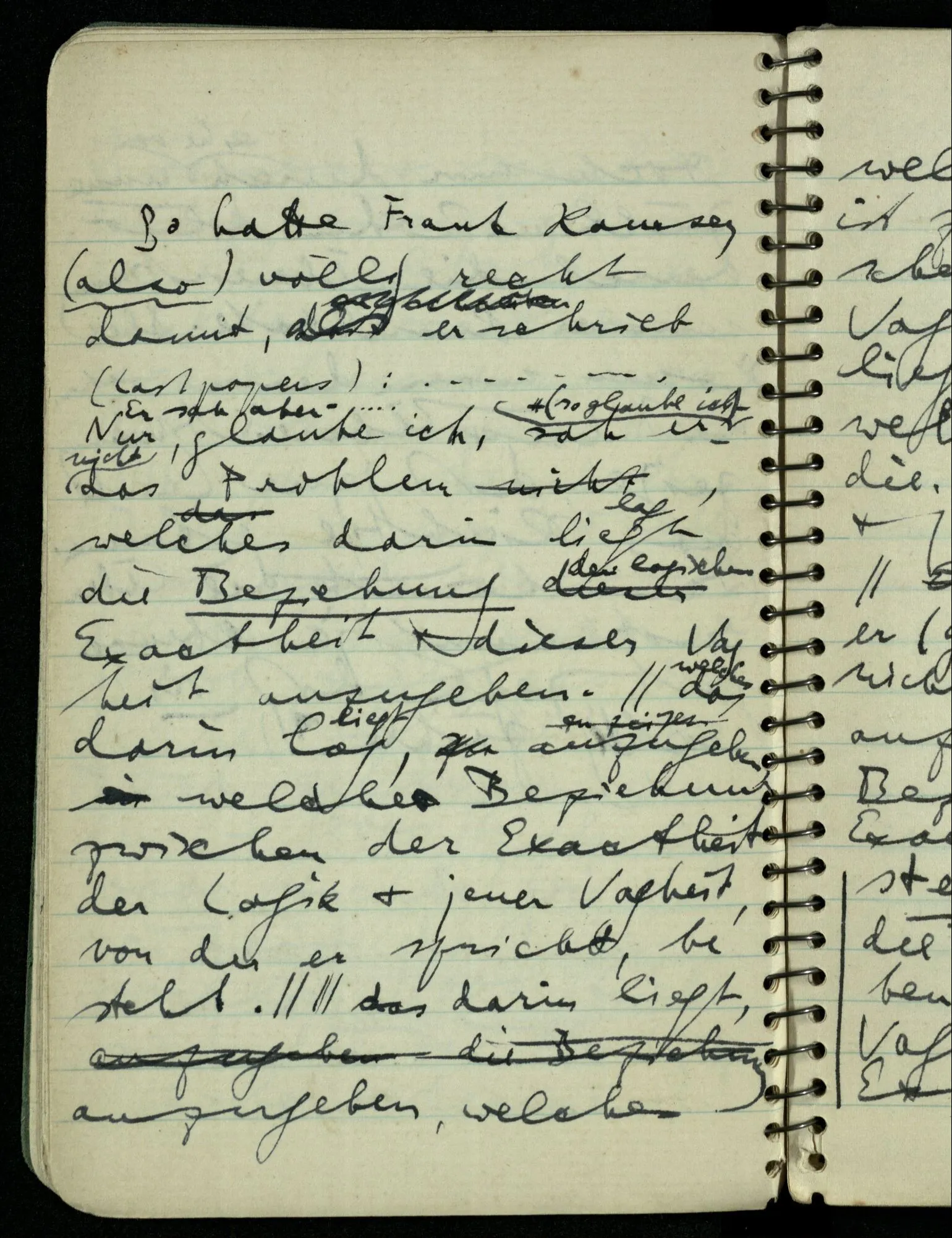 So hatte Frank Ramsey (also) völlig recht damit, als er schrieb (Last papers): … Nur, glaube ich, sah er nicht das Problem, welches darin liegt, die Beziehung der logischen Exaktheit & dieser Vagheit anzugeben.
