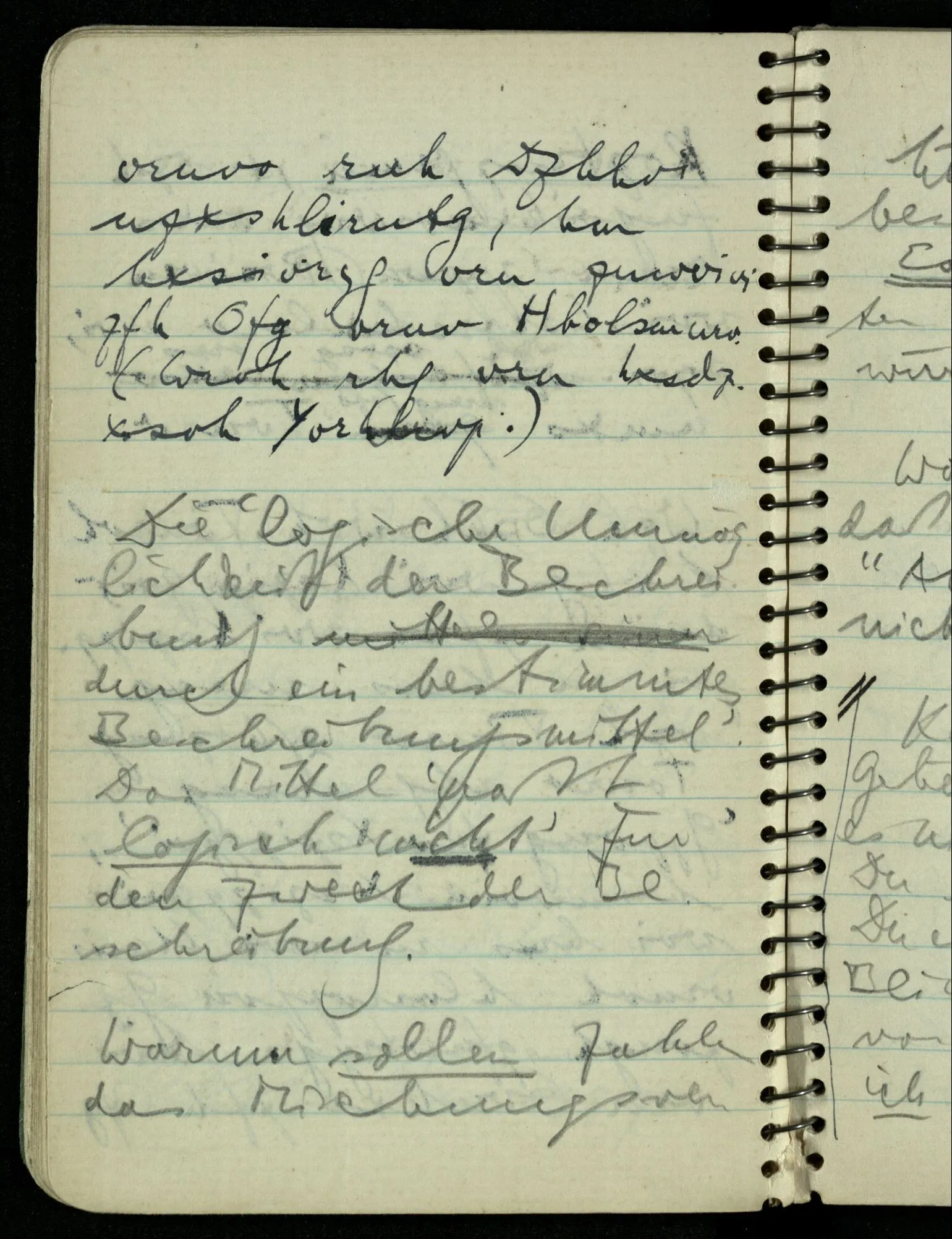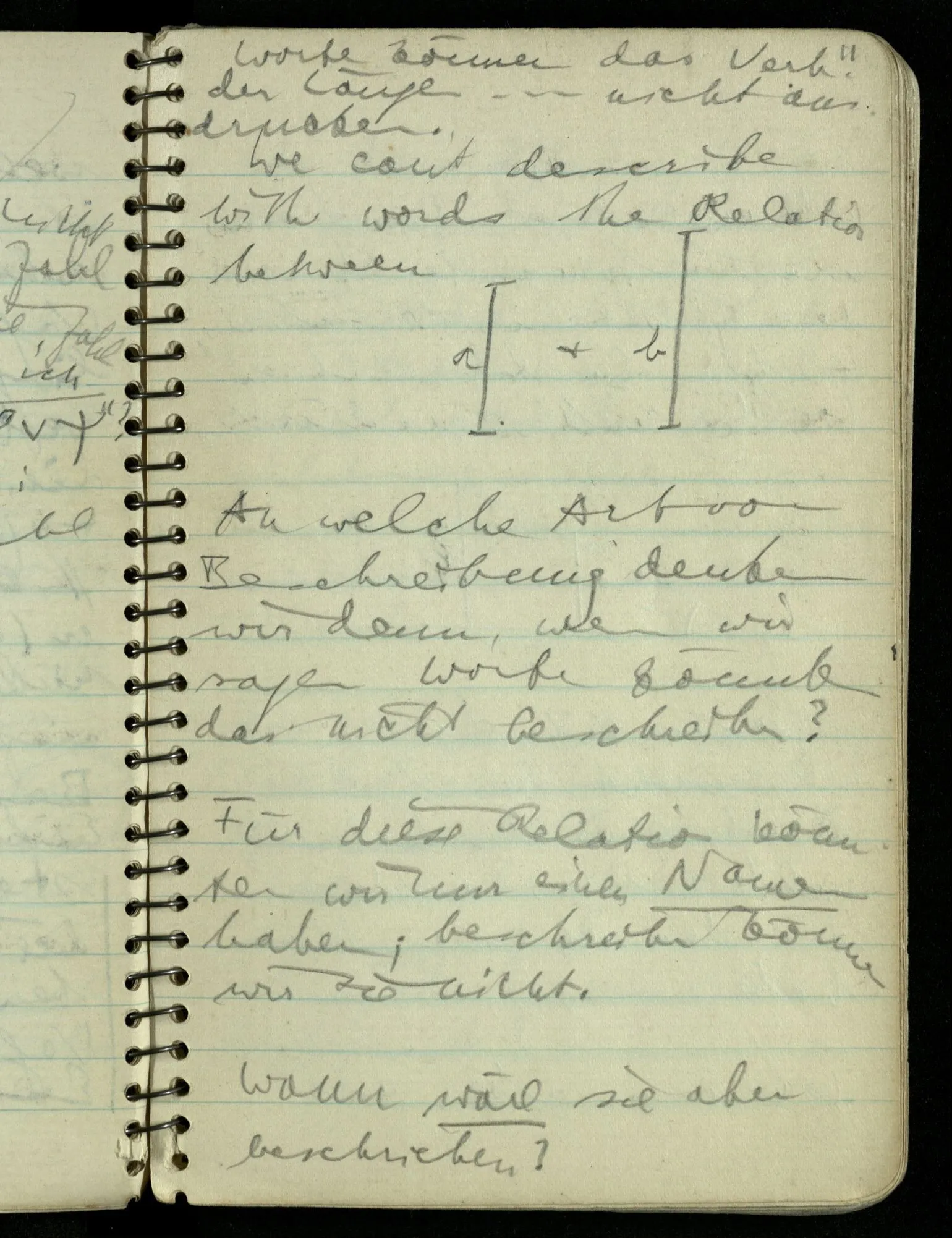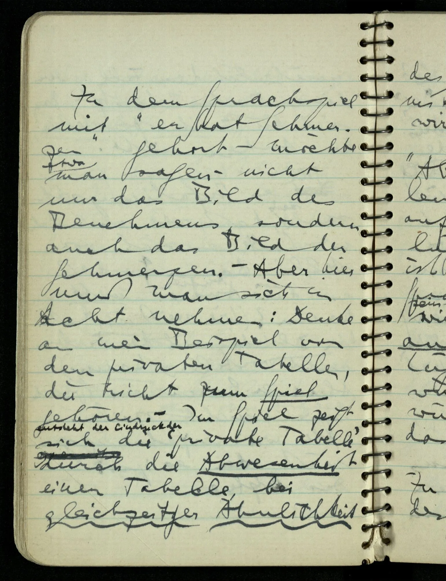17.04.1940 Die Inkonsistenz der gewöhnlichen Sprache ist offenbar ganz harmlos. Das heißt aber nicht, daß Inkonsistenz in speziellen Fällen, für gewisse Techniken der Verwendung von Symbolen, nicht äußerst unerwünscht sein kann. Und man wird dann Vorsichtsmaßregeln ergreifen.