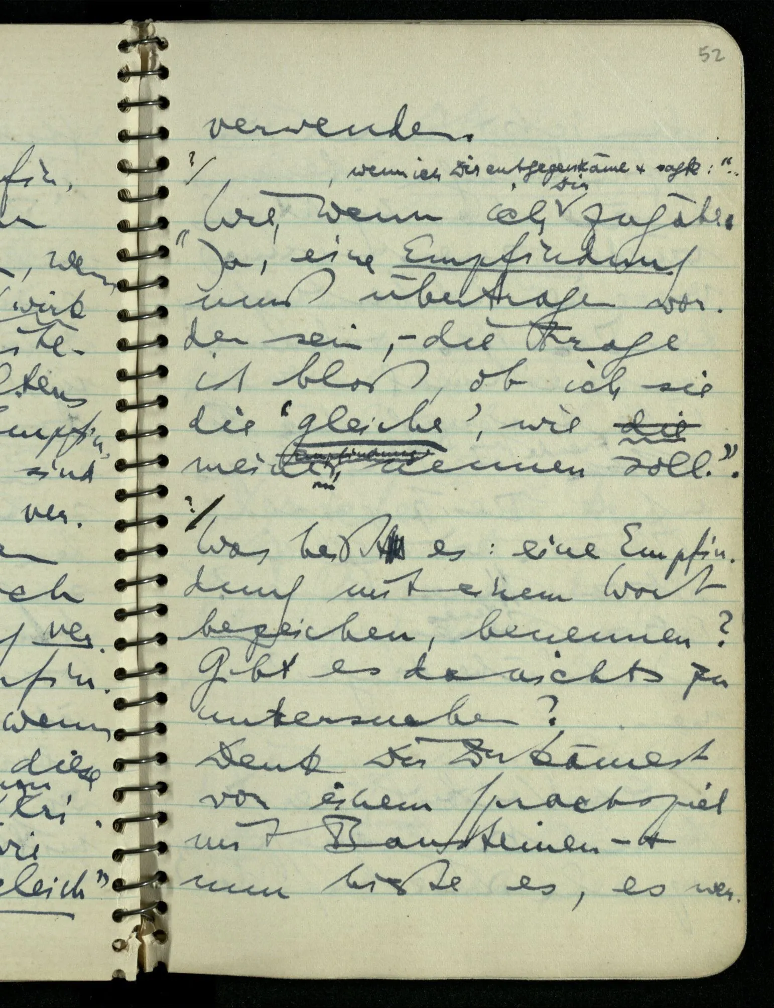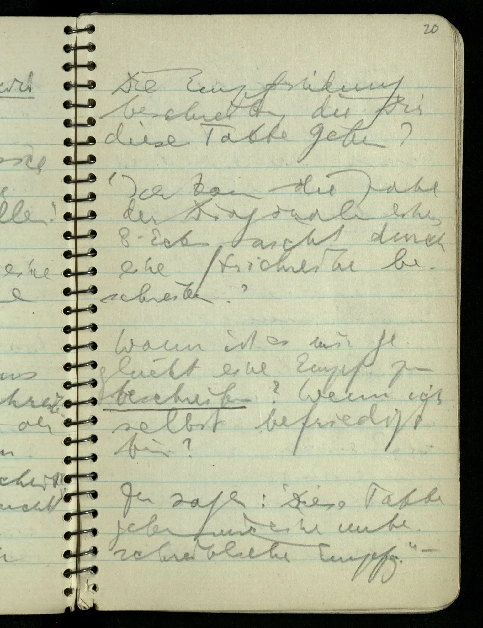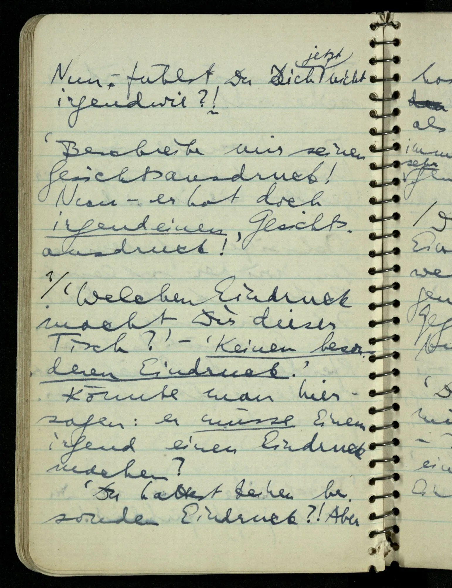 13.08.1940 Du zeigst mir einen neuen Gegenstand & sagst: “Was sagst Du nun dazu?” – Und ich: “Was kann ich dazu sagen? – doch nur daß …”.