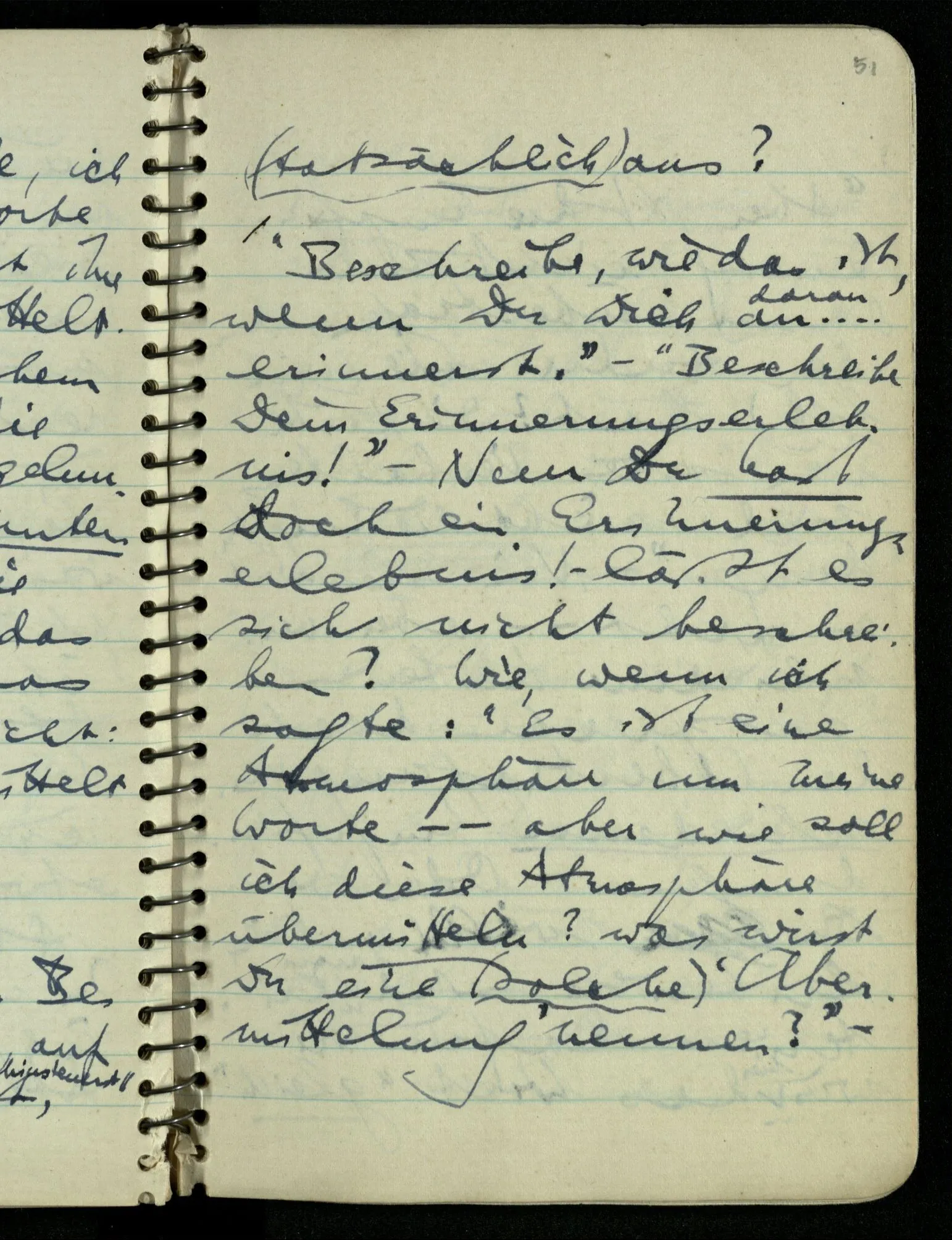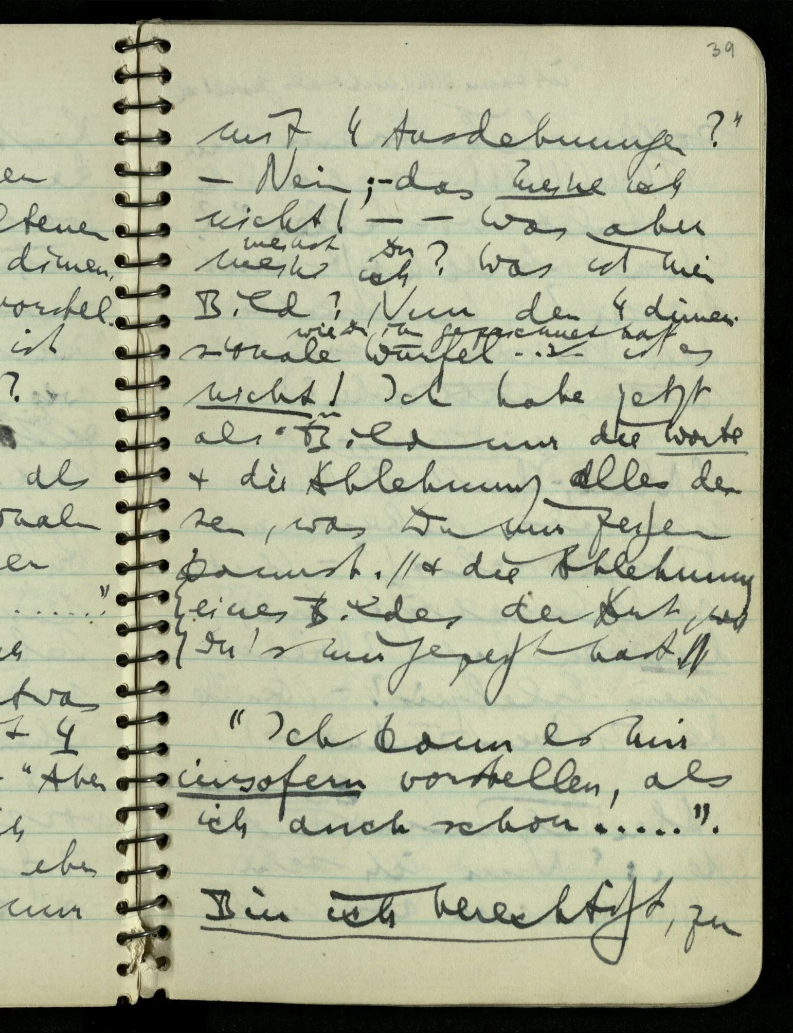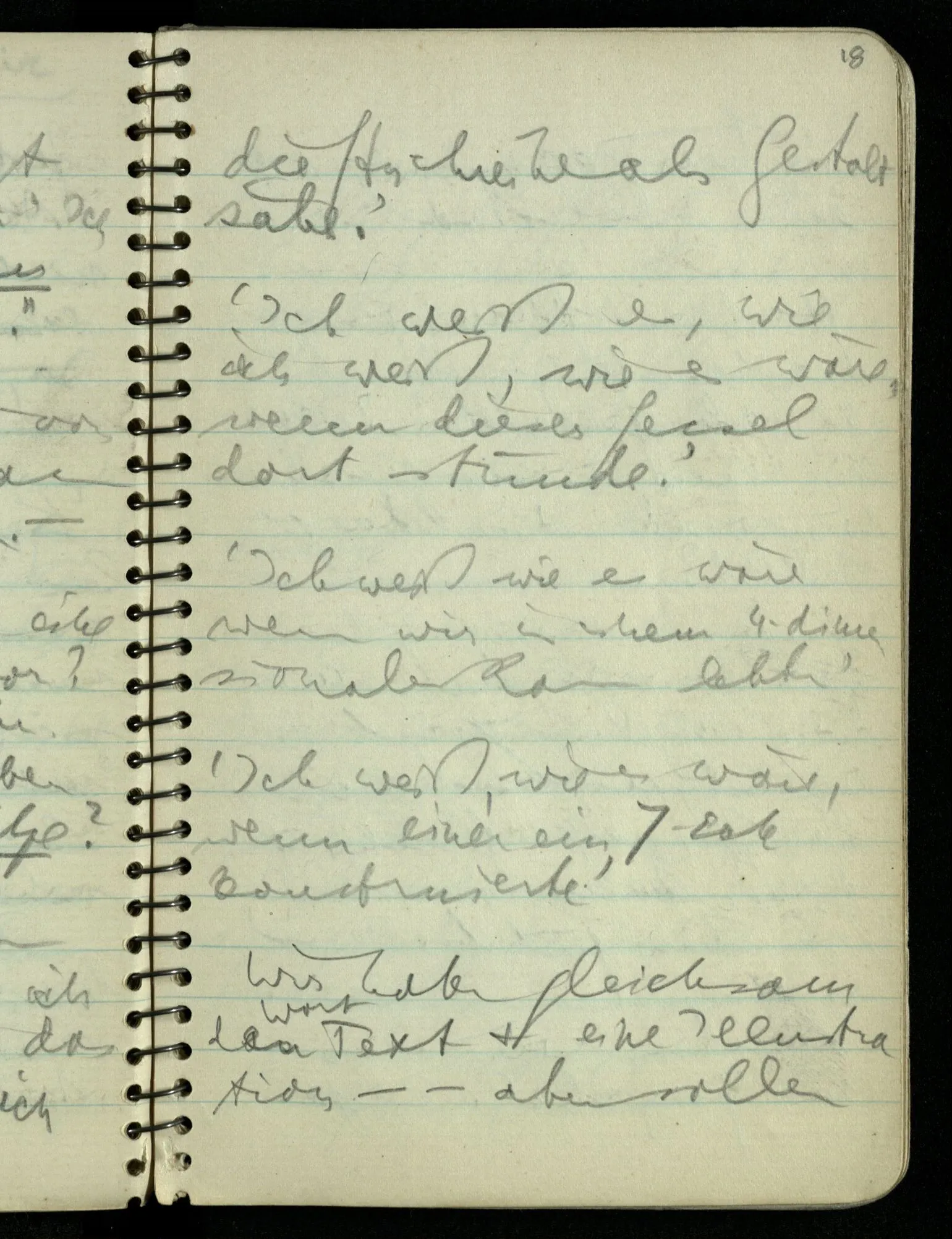 13.08.1940 Du zeigst mir einen neuen Gegenstand & sagst: “Was sagst Du nun dazu?” – Und ich: “Was kann ich dazu sagen? – doch nur daß …”.