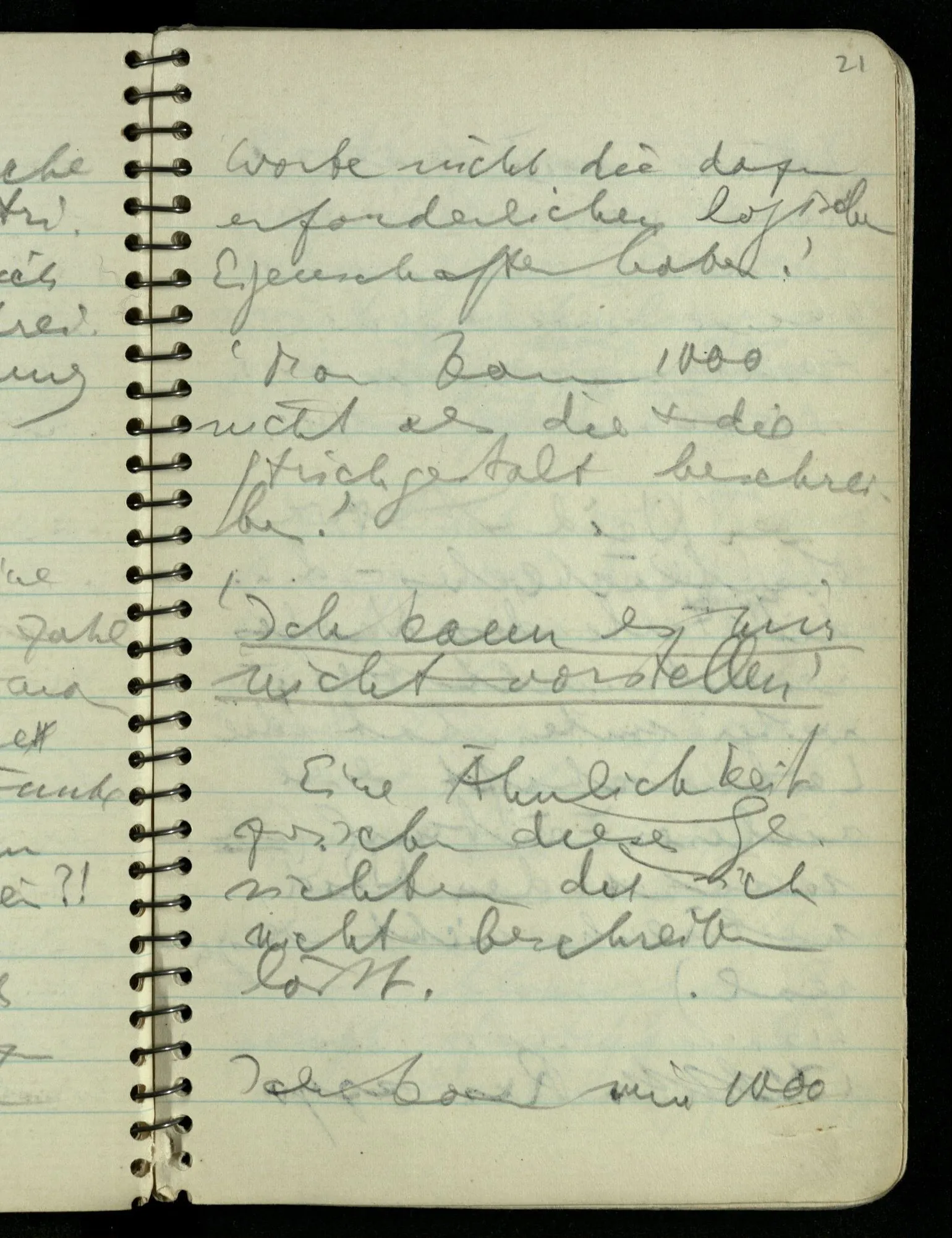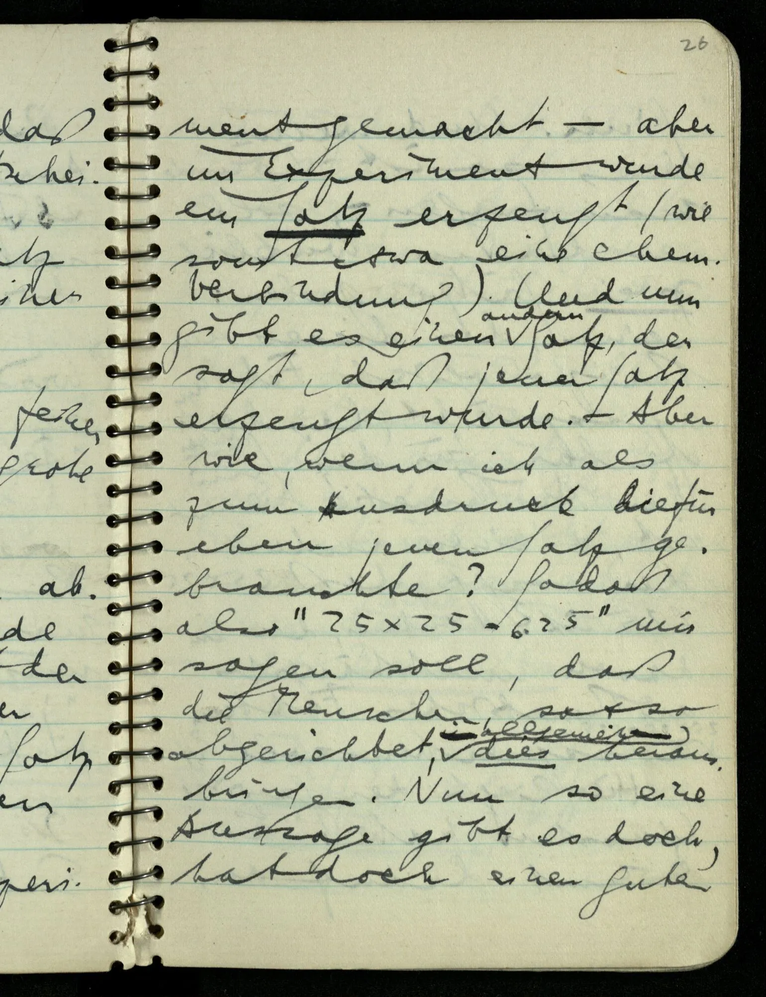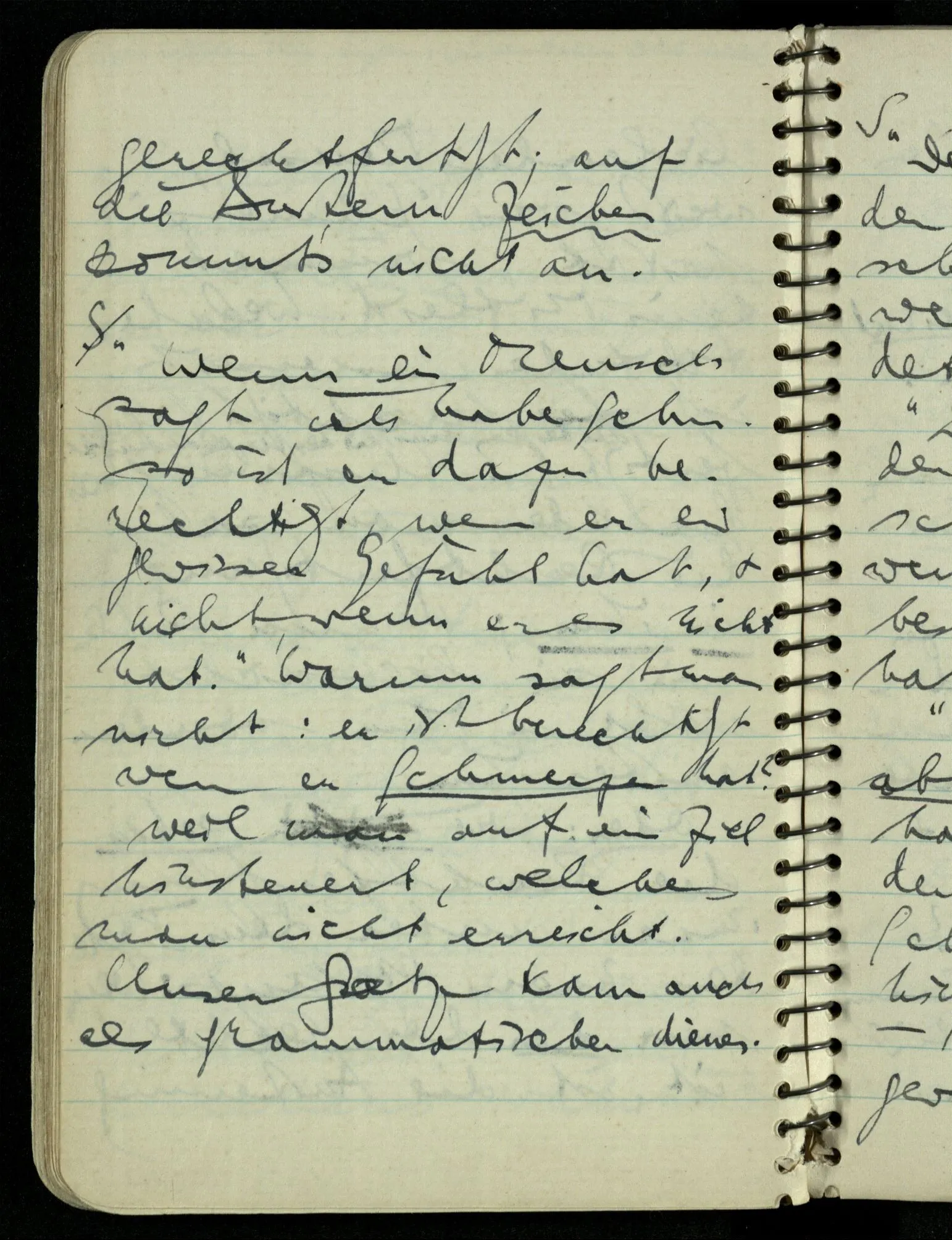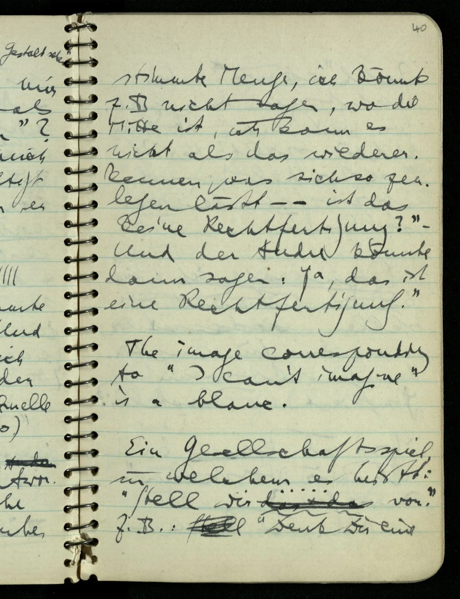 02.07.1940 Das Verführerische der kausalen Betrachtungsweise ist, daß sie einen dazu führt zu sagen: “Natürlich, so muß es geschehen.” Während man denken sollte: so, & auf viele andere Weisen kann es geschehen sein.