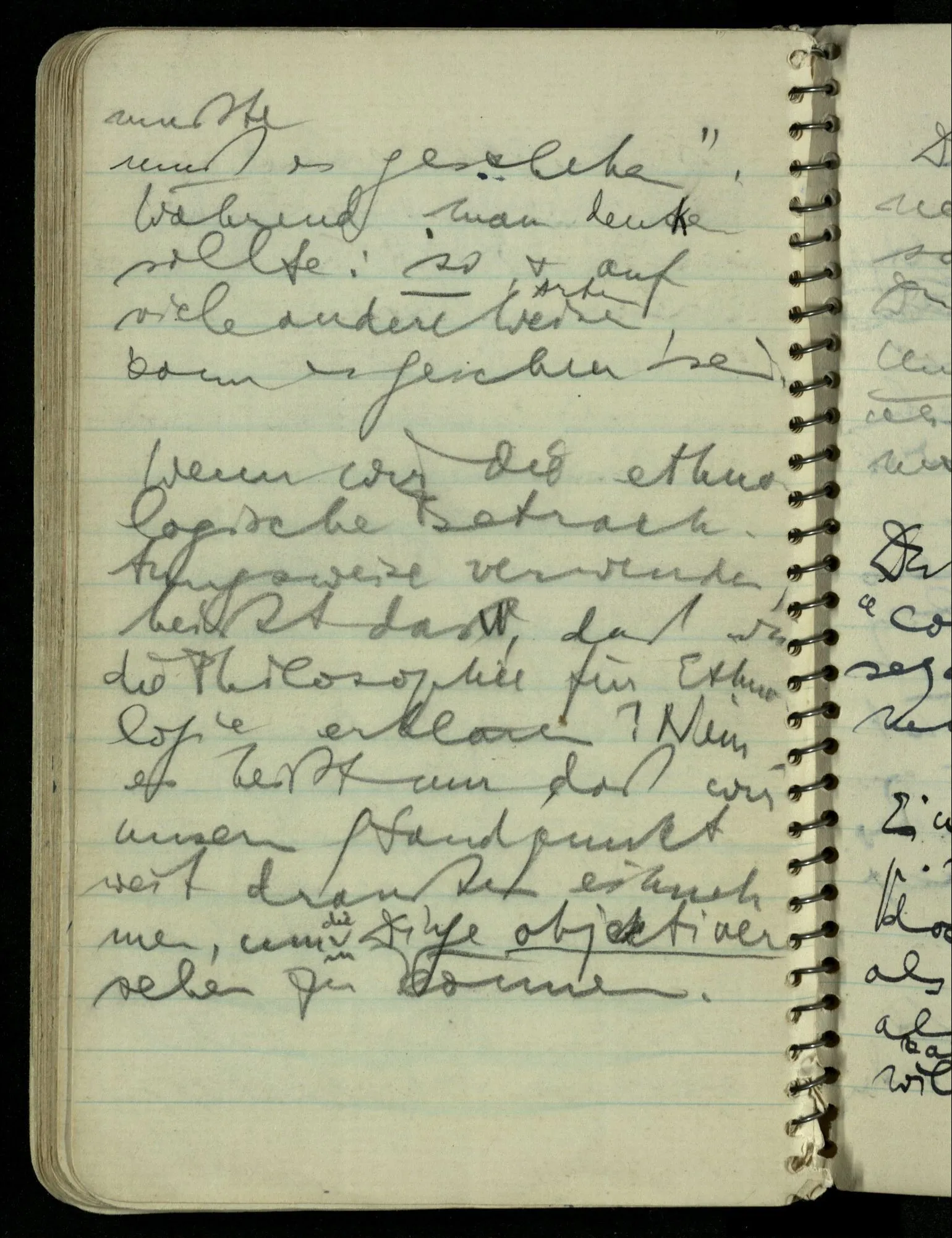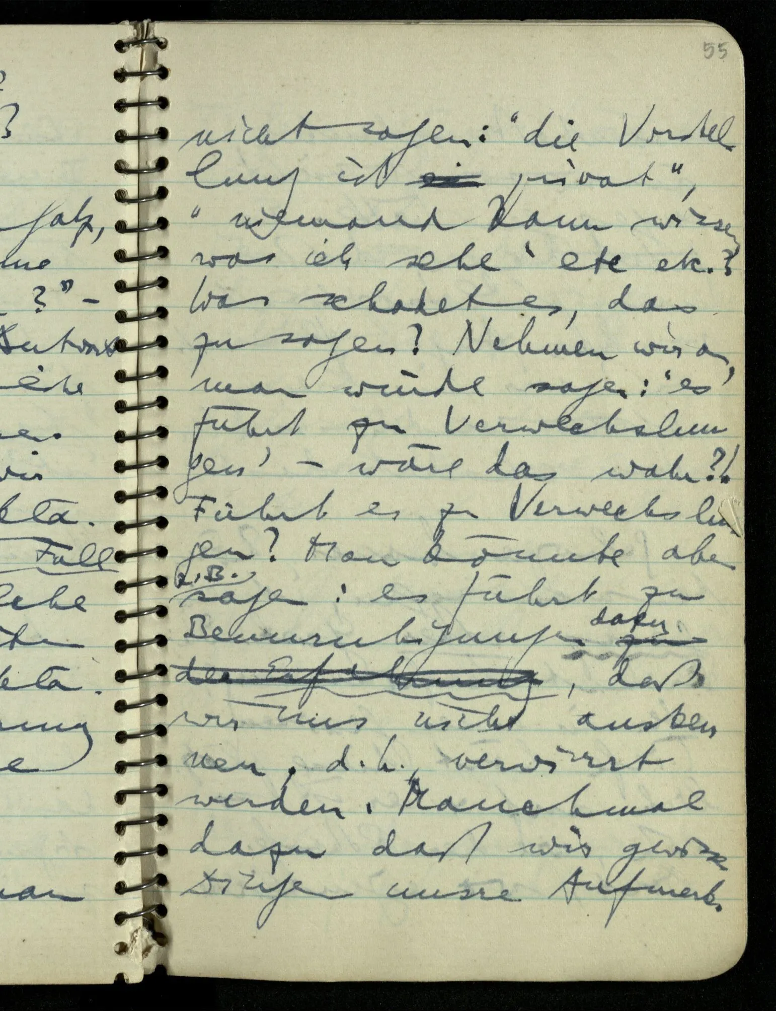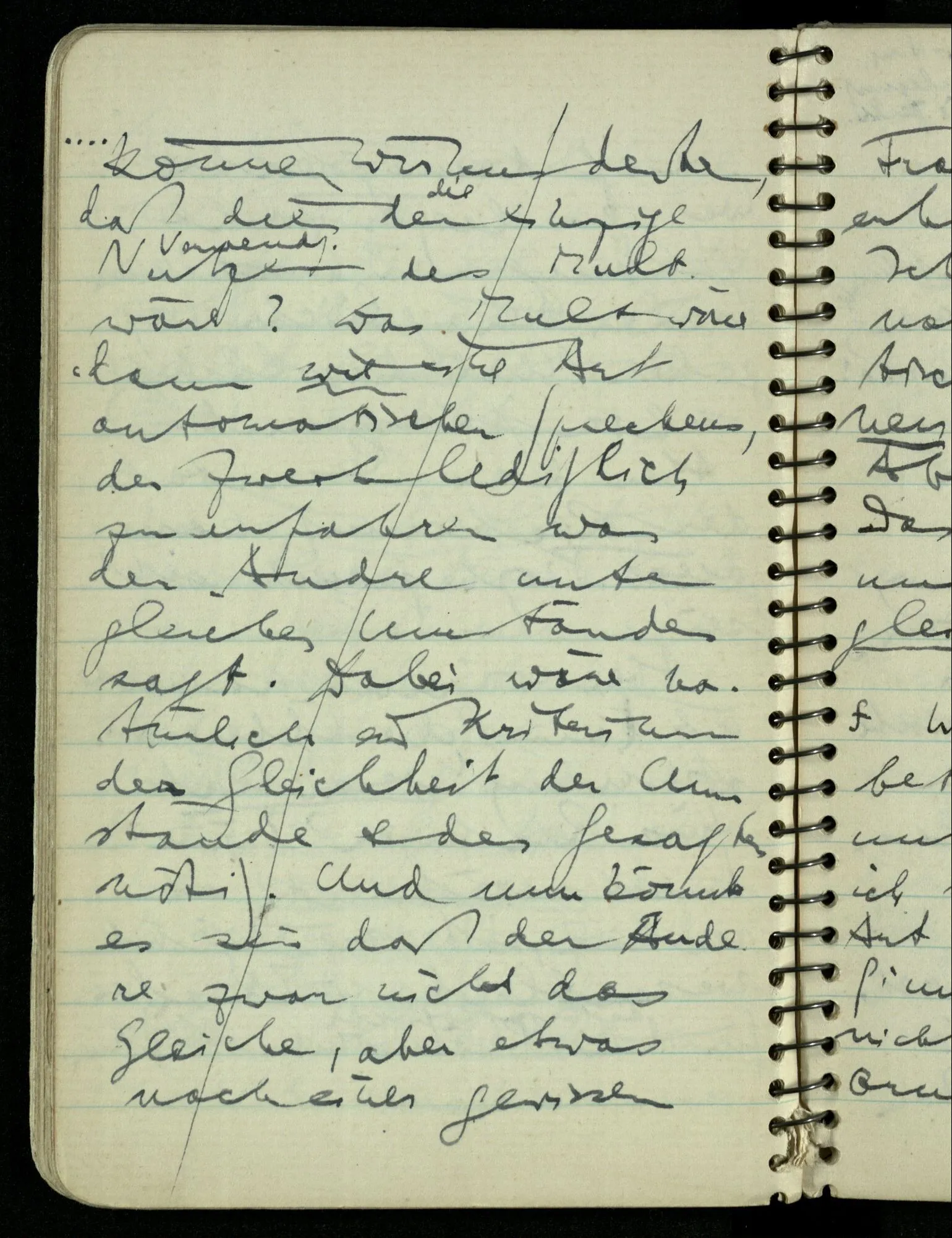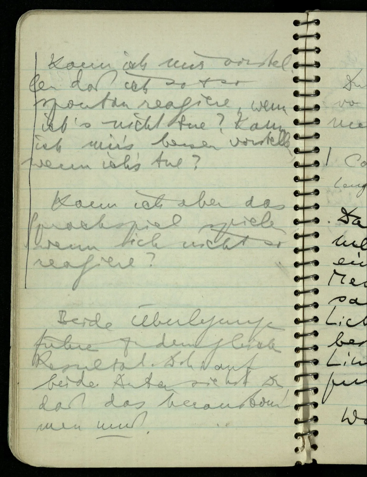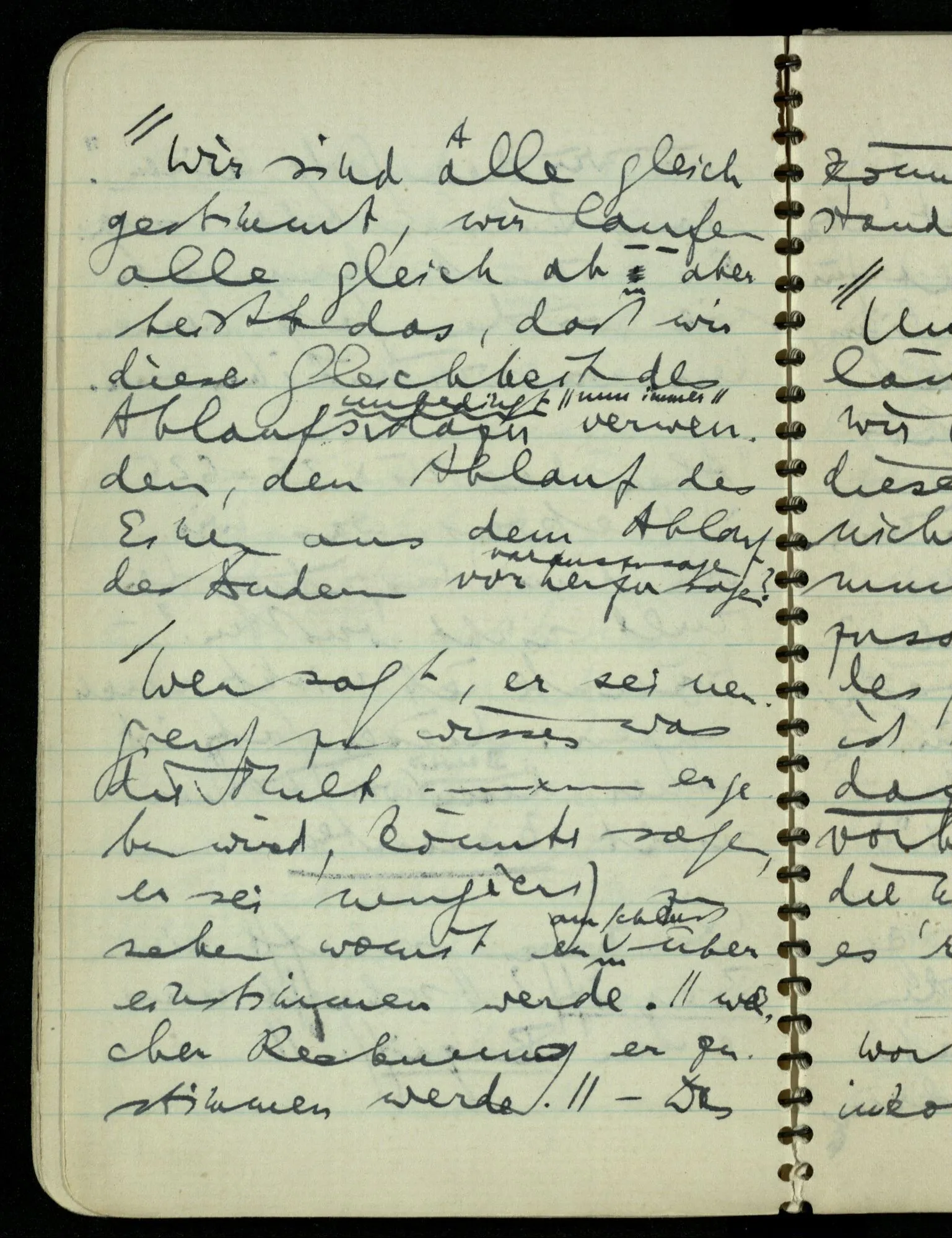02.07.1940 Das Verführerische der kausalen Betrachtungsweise ist, daß sie einen dazu führt zu sagen: “Natürlich, so muß es geschehen.” Während man denken sollte: so, & auf viele andere Weisen kann es geschehen sein.