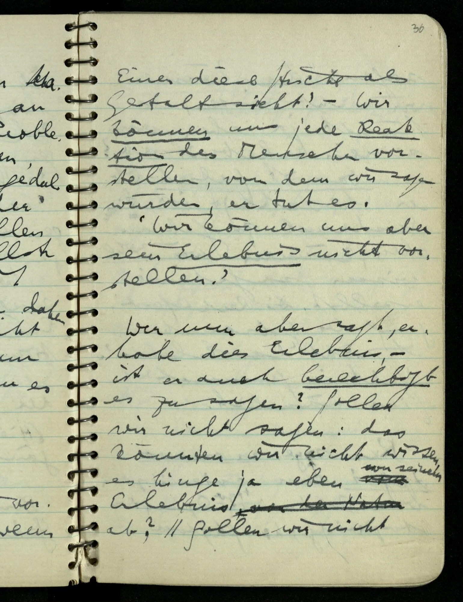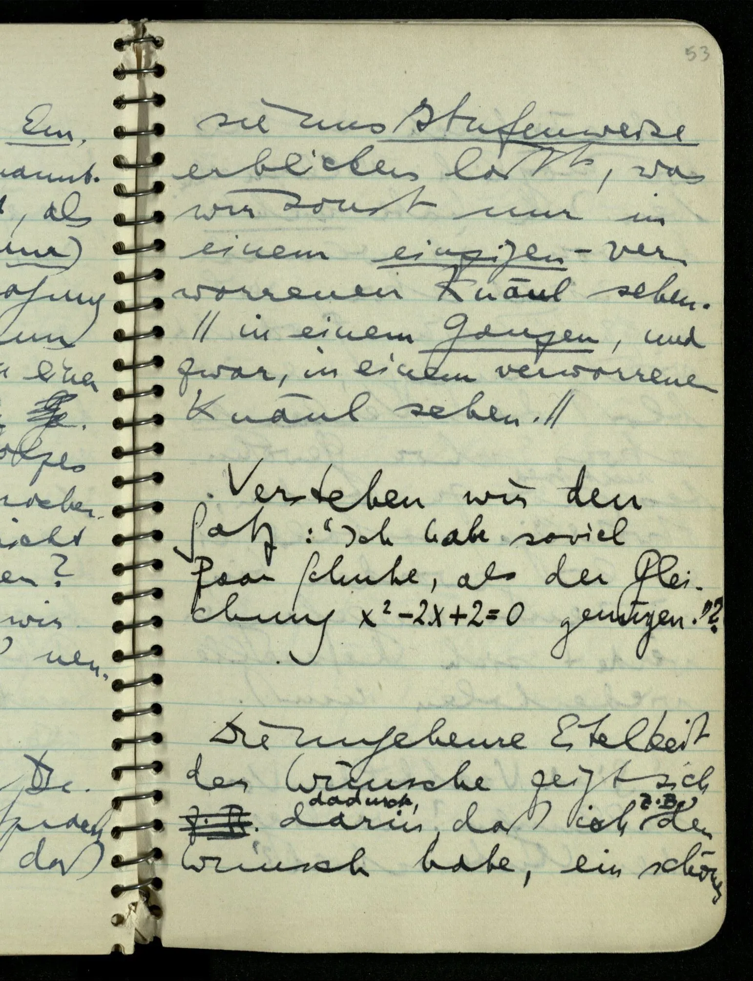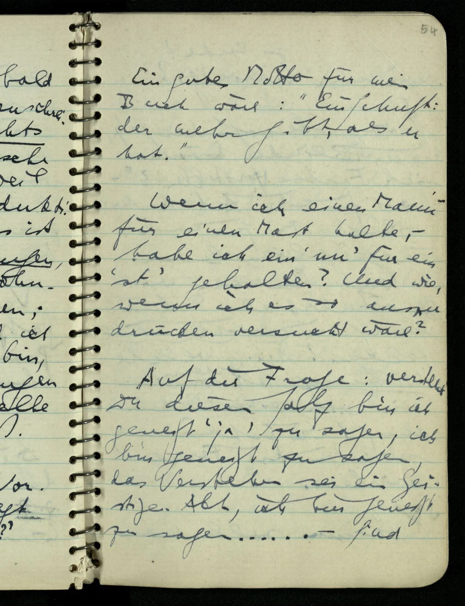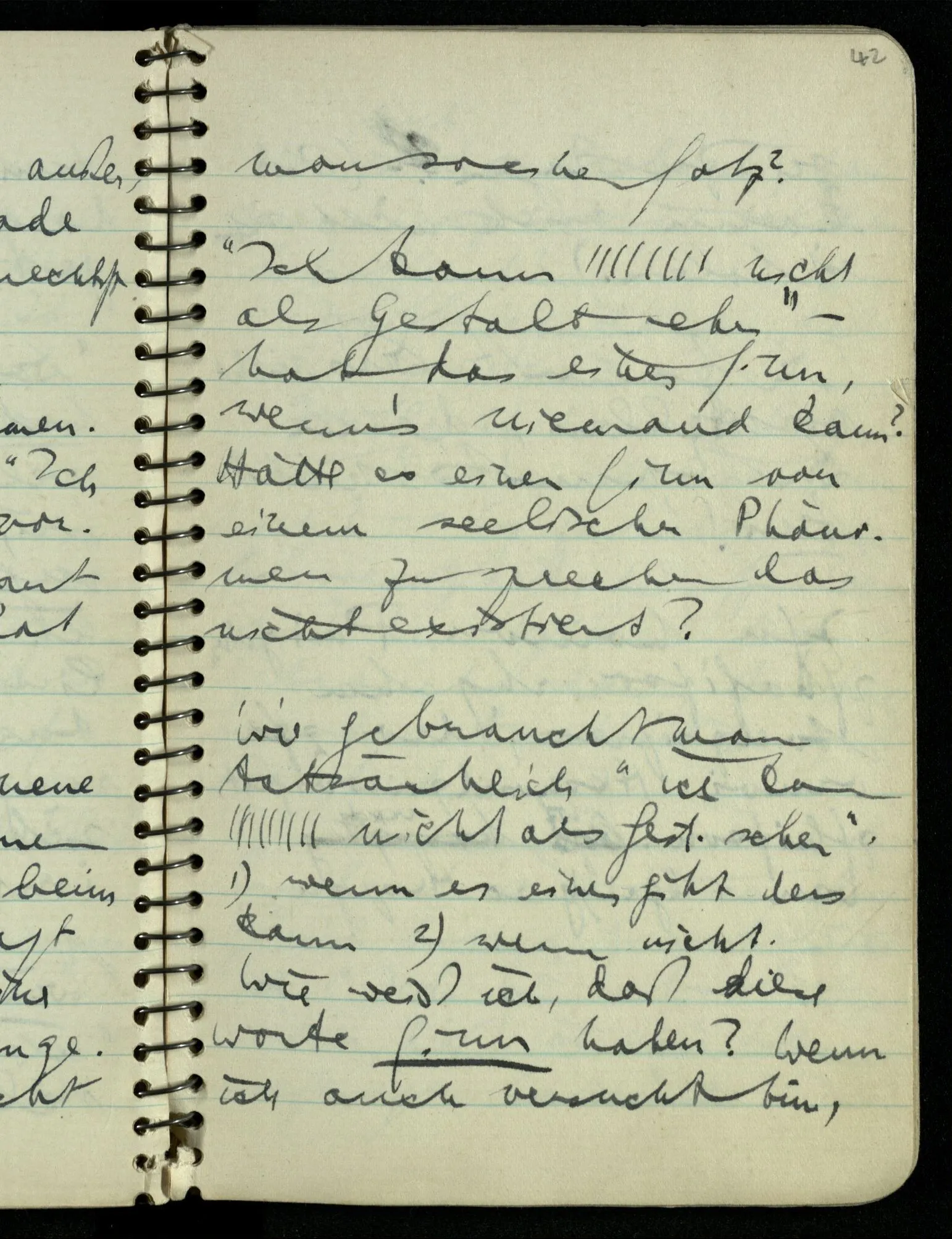 02.07.1940 Das Verführerische der kausalen Betrachtungsweise ist, daß sie einen dazu führt zu sagen: “Natürlich, so muß es geschehen.” Während man denken sollte: so, & auf viele andere Weisen kann es geschehen sein.