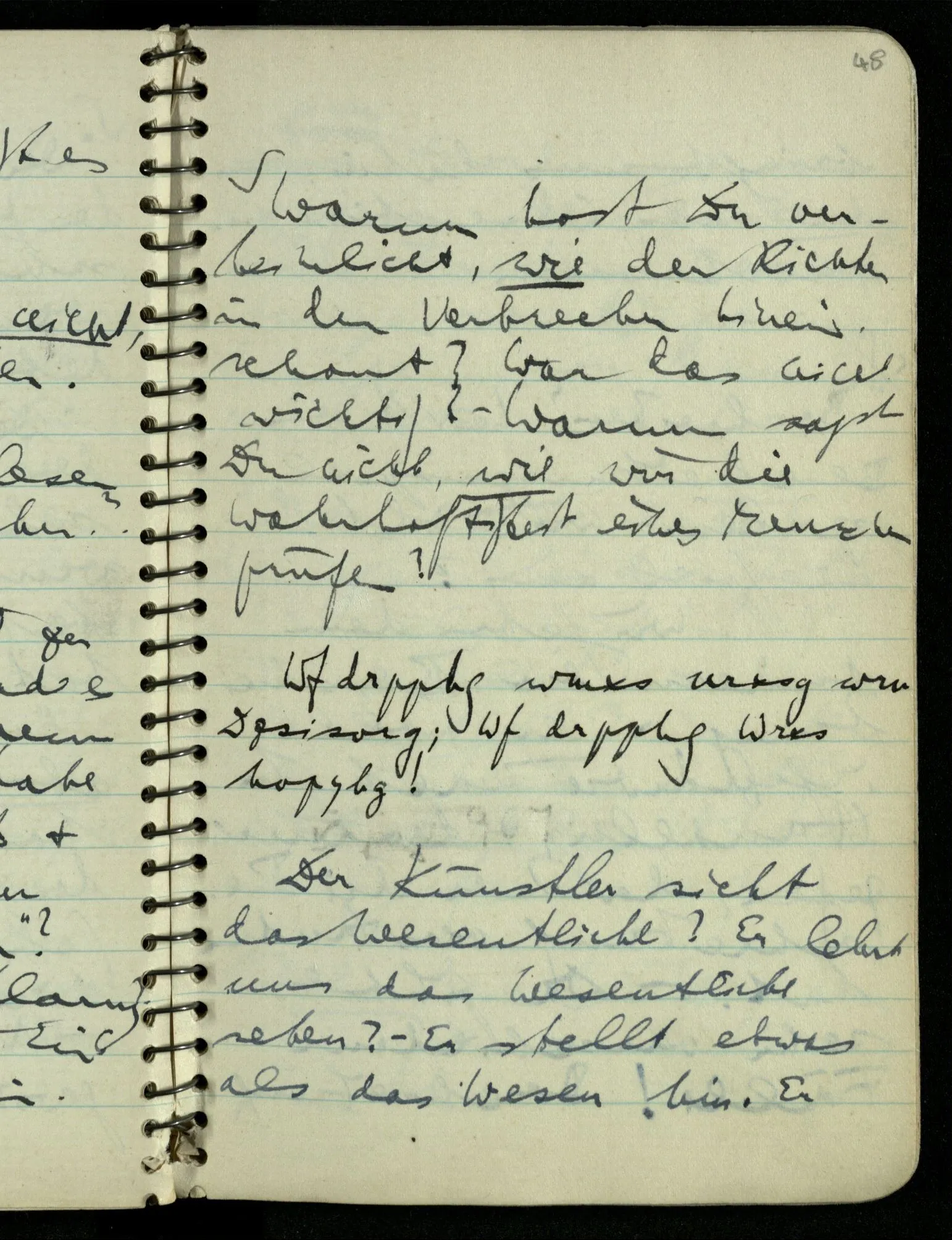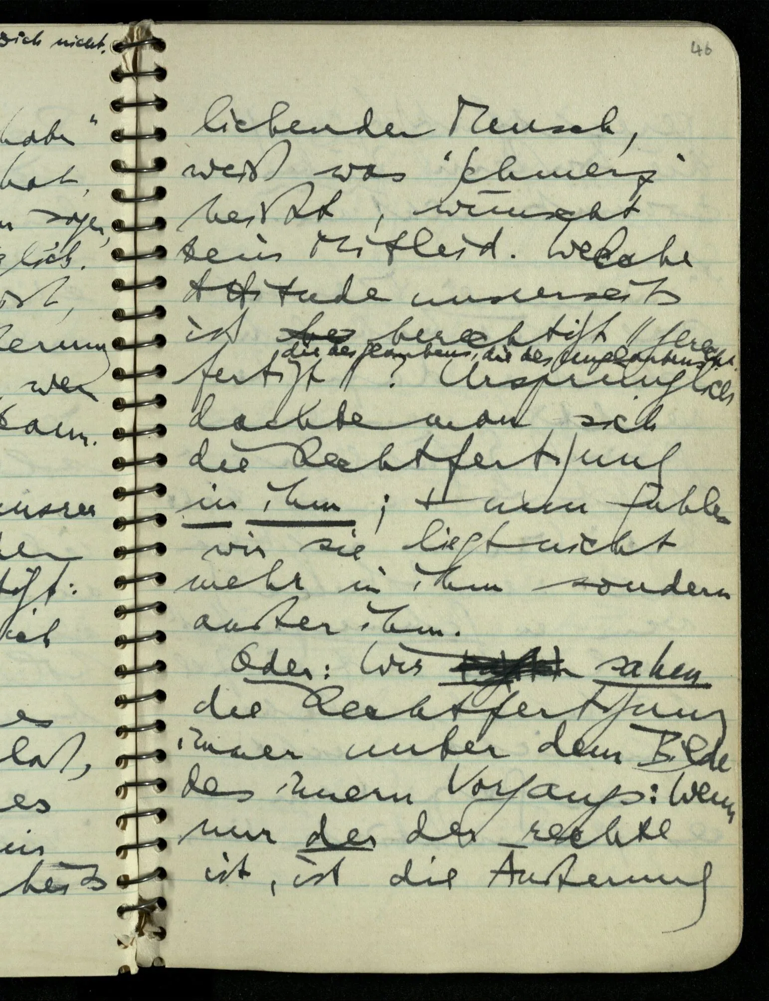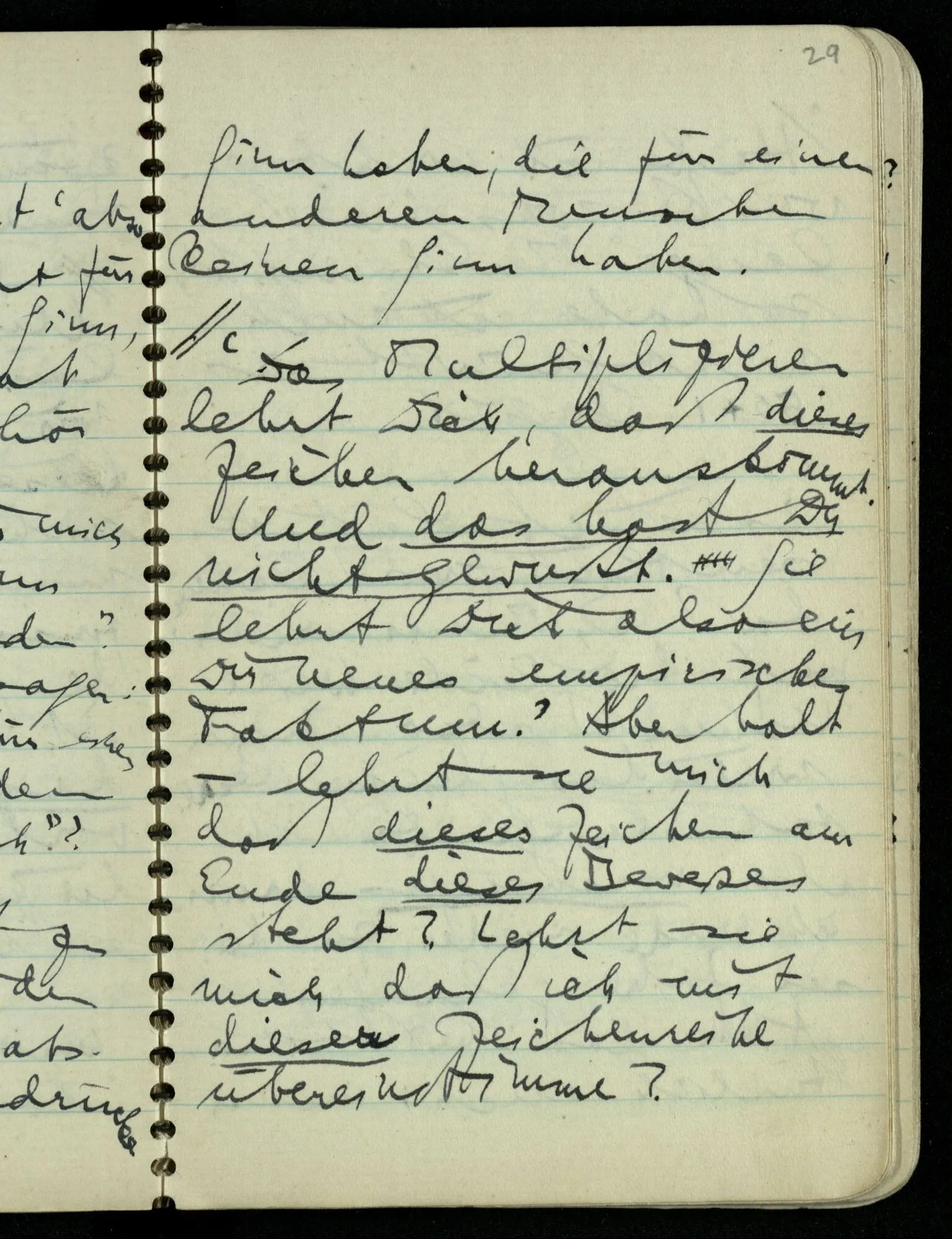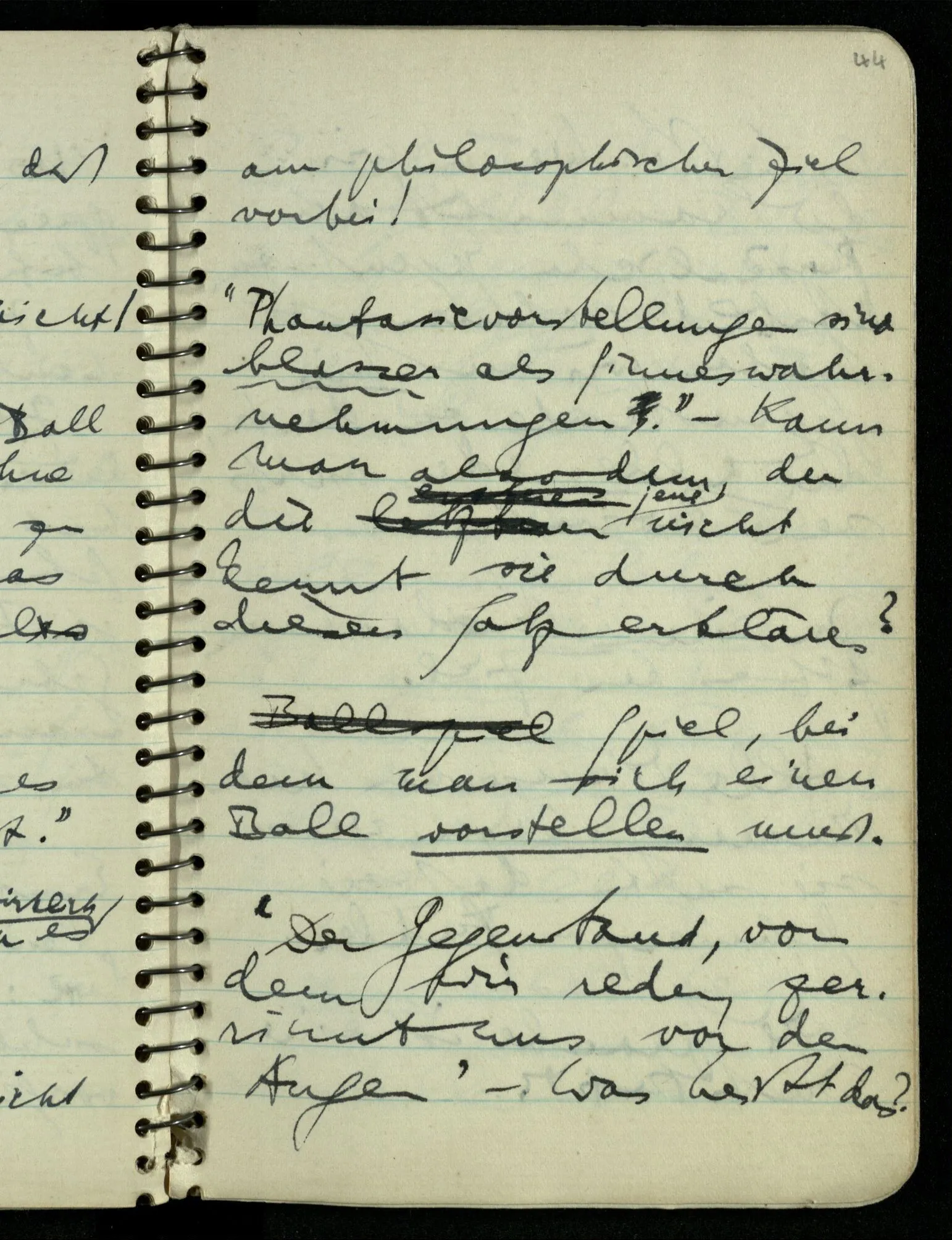 02.07.1940 Das Verführerische der kausalen Betrachtungsweise ist, daß sie einen dazu führt zu sagen: “Natürlich, so muß es geschehen.” Während man denken sollte: so, & auf viele andere Weisen kann es geschehen sein.