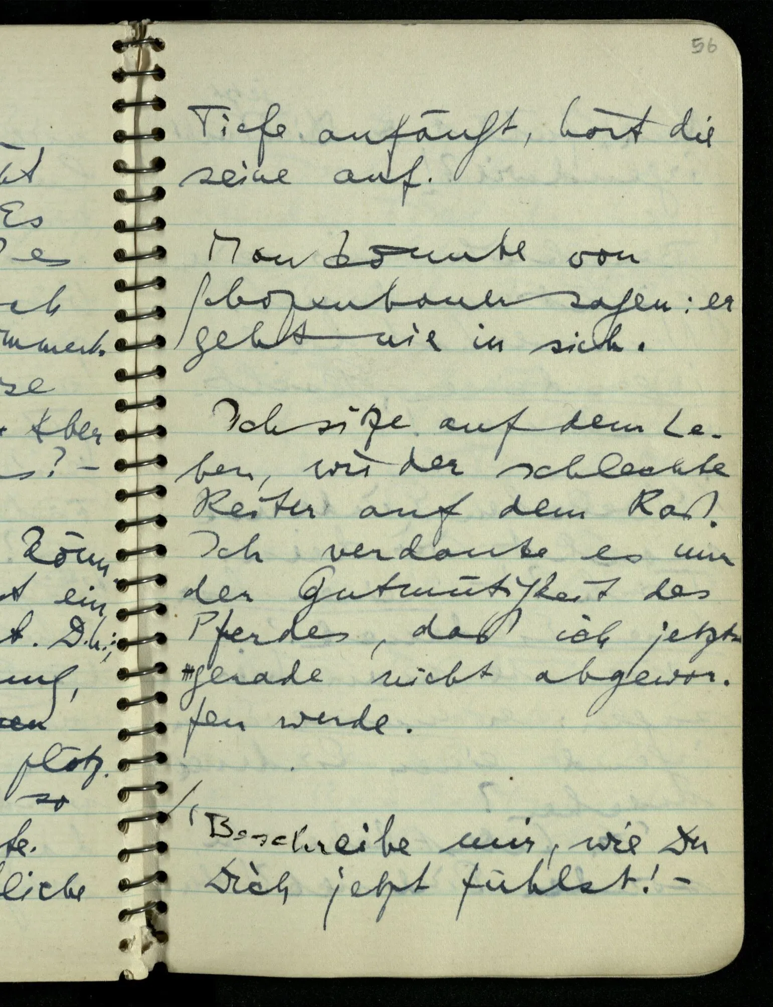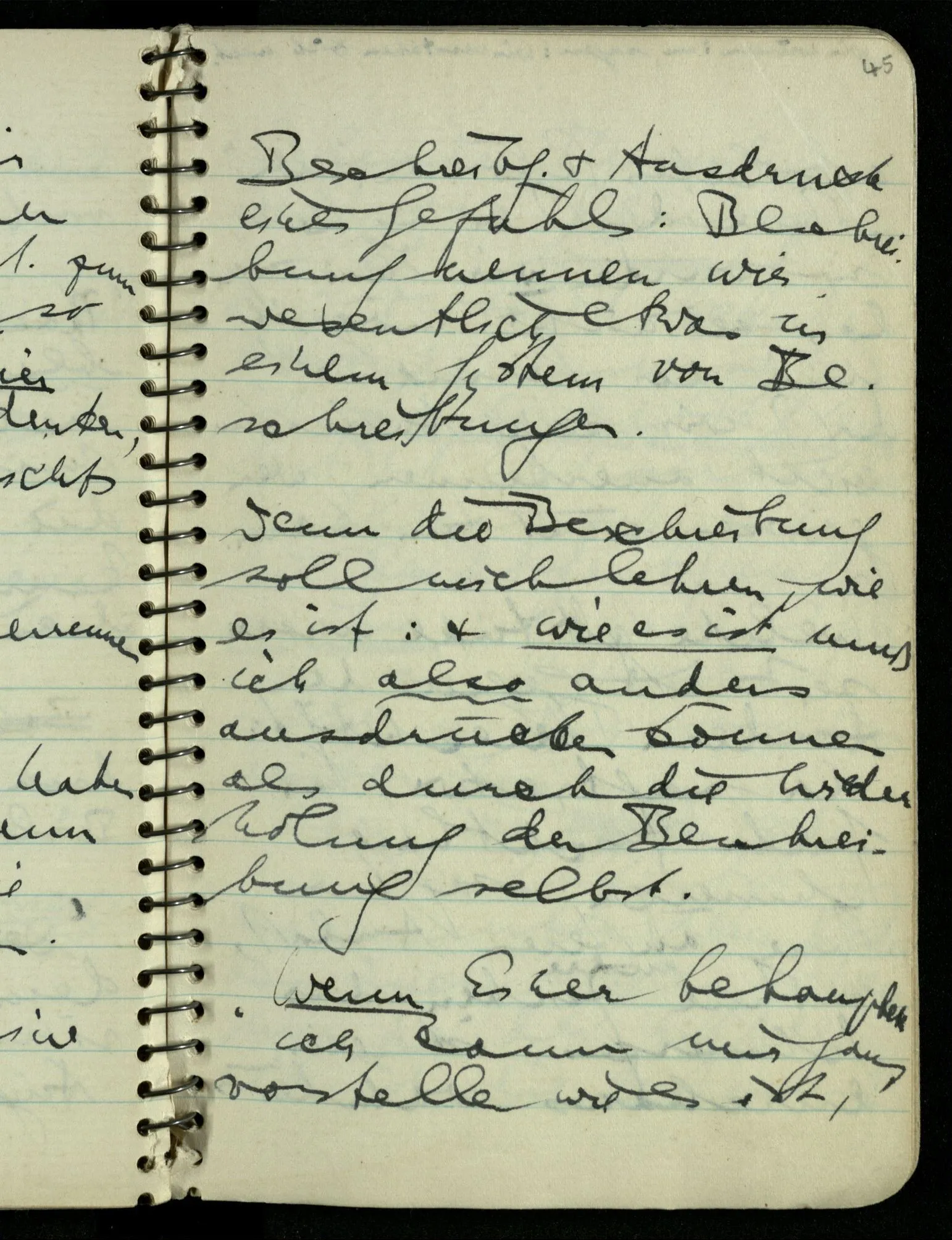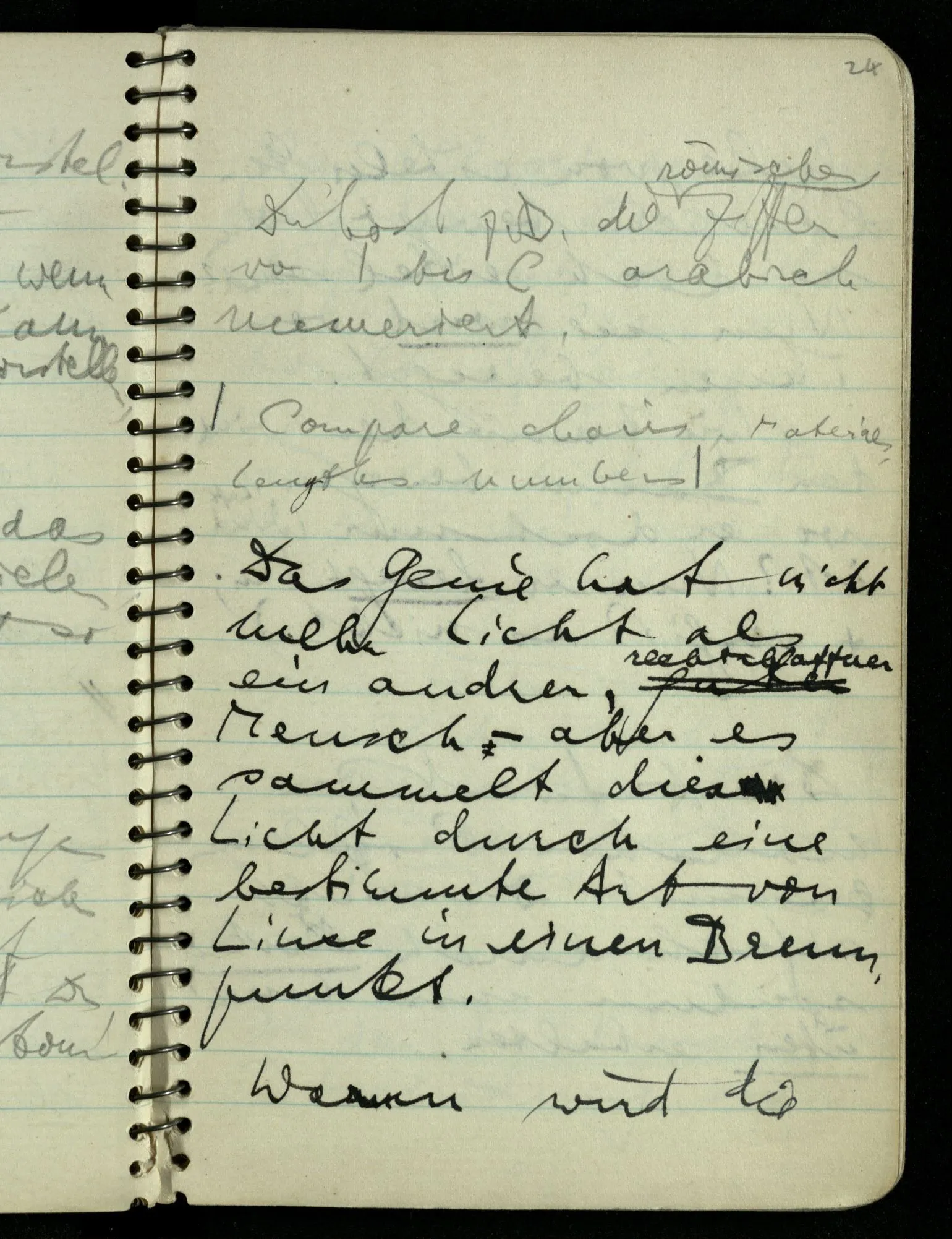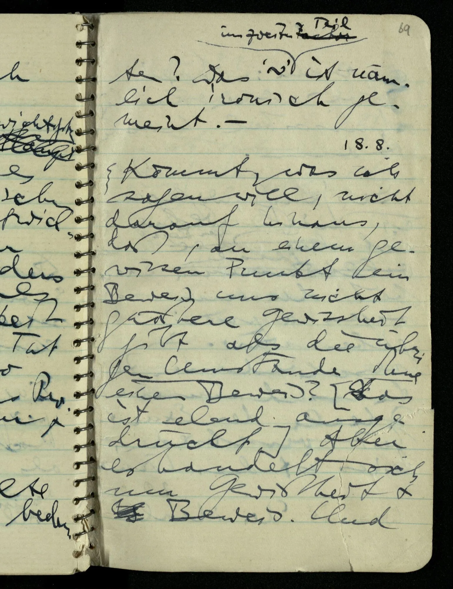 Meine Originalität, (wenn das das richtige Wort ist), ist, glaube ich, eine Originalität des Bodens, nicht des Samens. (Ich habe vielleicht keinen eigenen Samen.) Wirf einen Samen in meinen Boden, & er wird anders wachsen, als in irgend einem andern Boden. Auch die Originalität Freud’s war, glaube ich, von dieser Art. Ich habe immer geglaubt – ohne daß ich weiß, warum – daß der eigentliche Same der Psychoanalyse von Breuer, nicht von Freud herrührt. Das Samenkorn Breuers kann natürlich nur ganz winzig gewesen sein. (Mut ist immer originell.)
