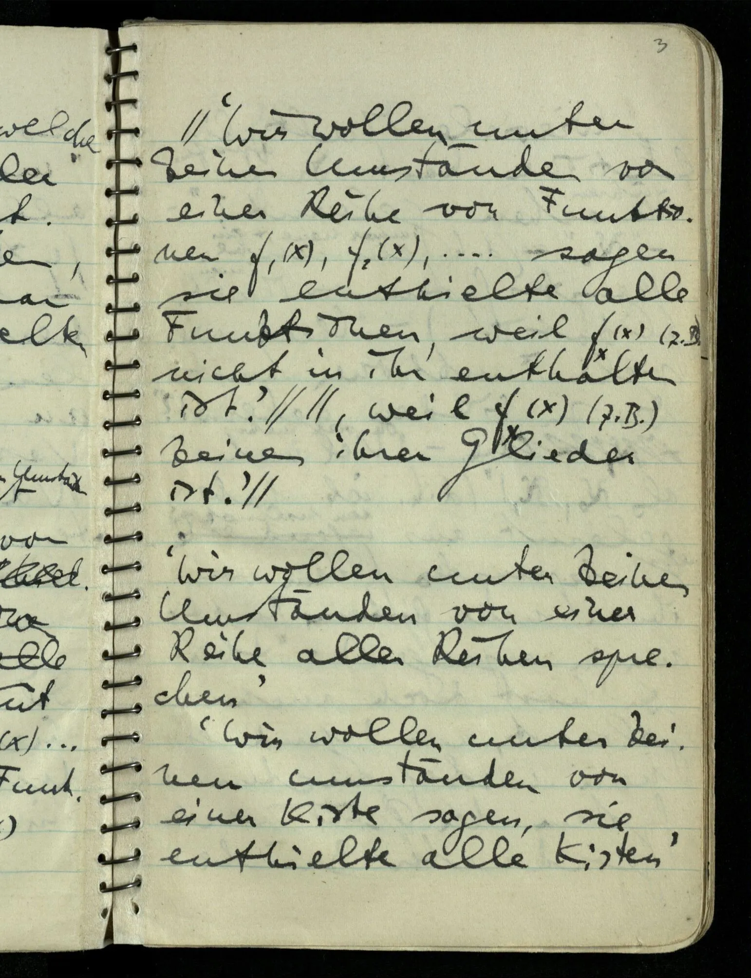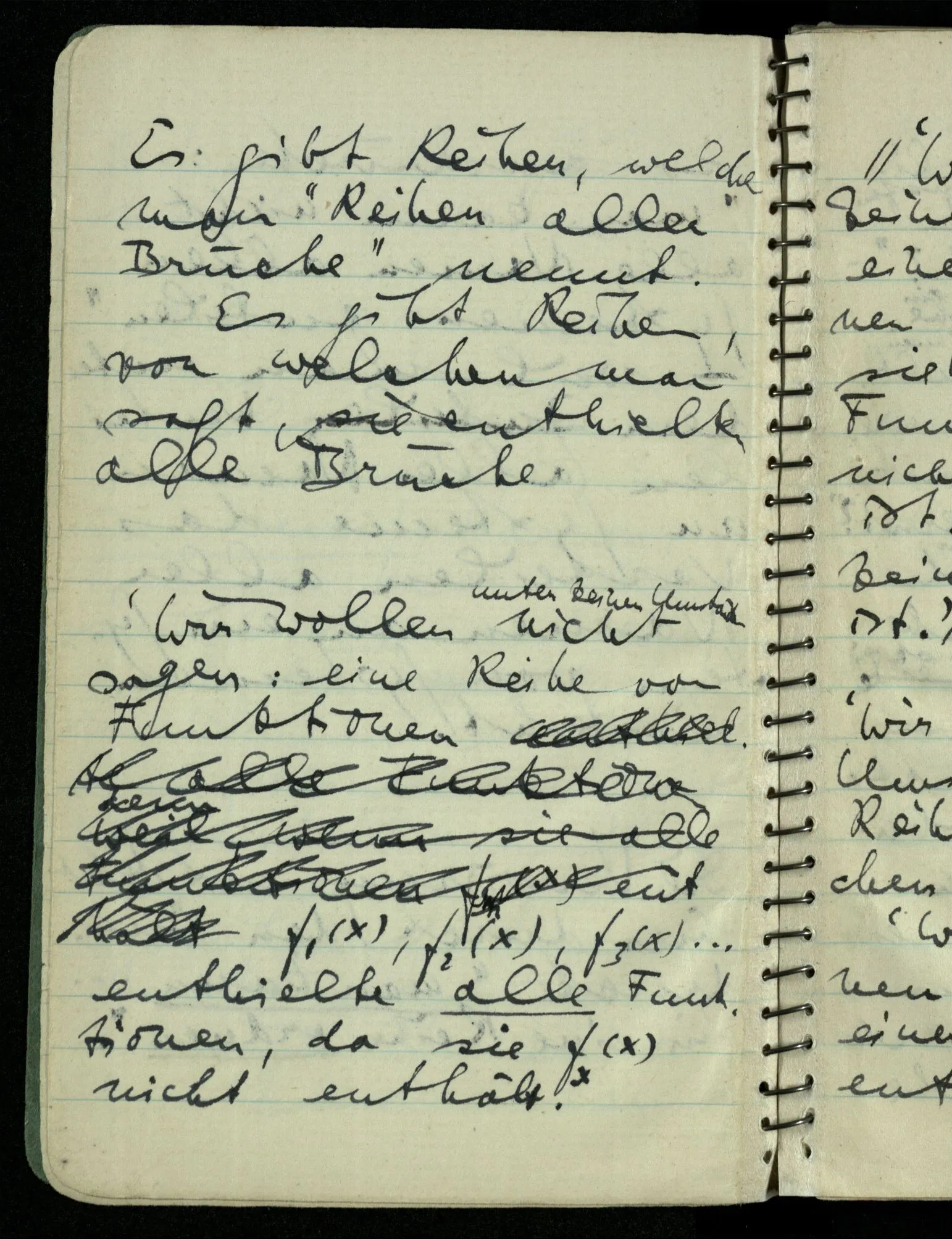 ‘Wir wollen nicht sagen: eine Reihe von Funktionen enthielte alle Funktionen, da sie nicht enthält.’
