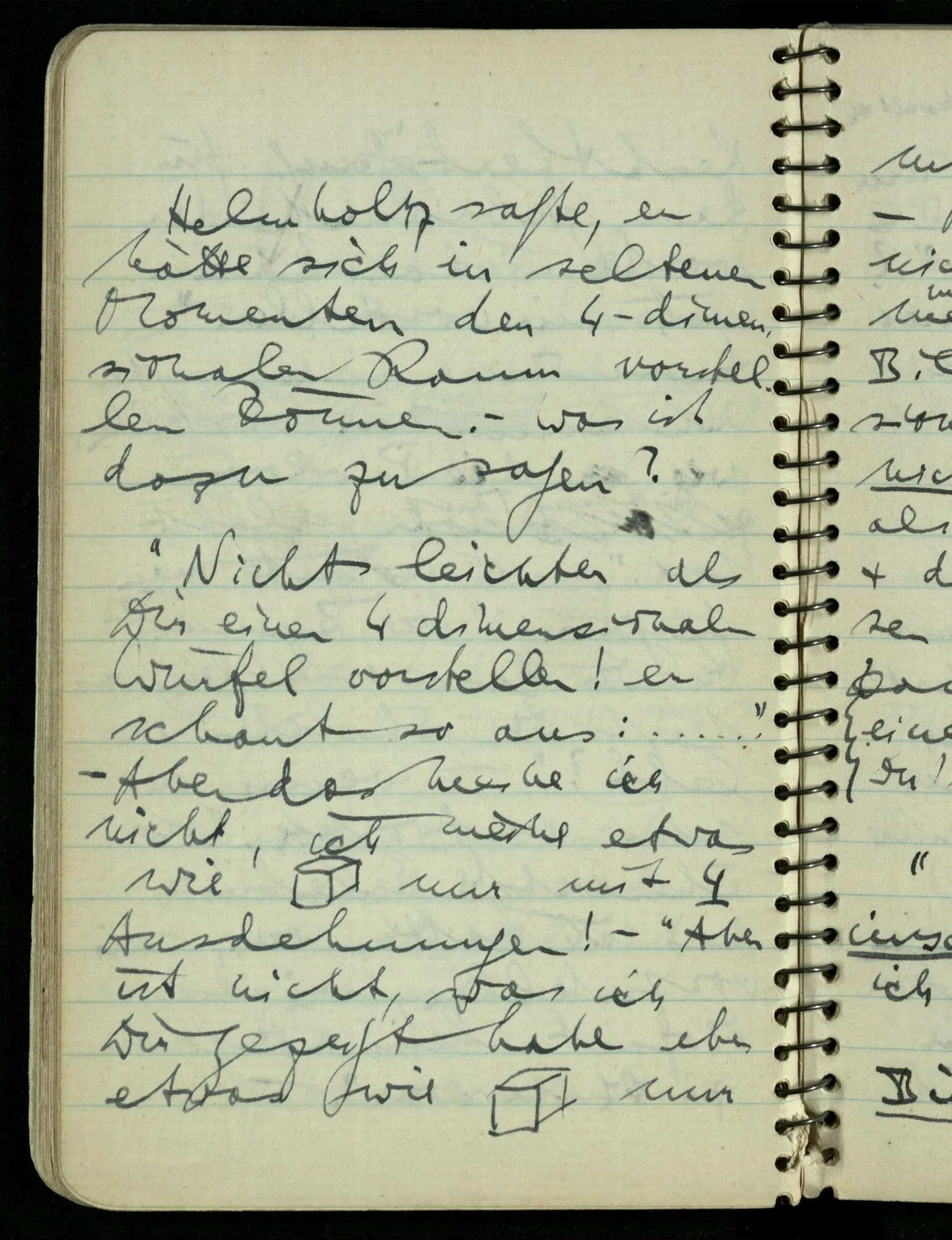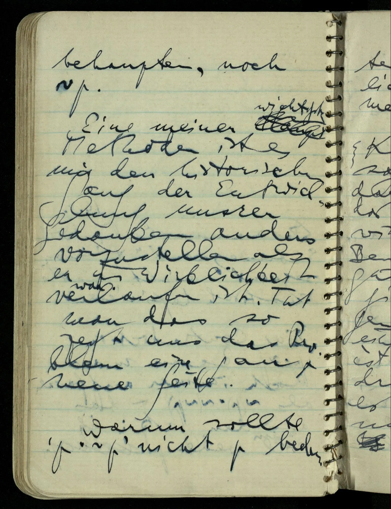 Eine meiner wichtigsten Methoden ist es mir den historischen Gang der Entwicklung unsrer Gedanken anders vorzustellen als er in Wirklichkeit verlaufen ist. Tut man das so zeigt uns das Problem eine ganz neue Seite.