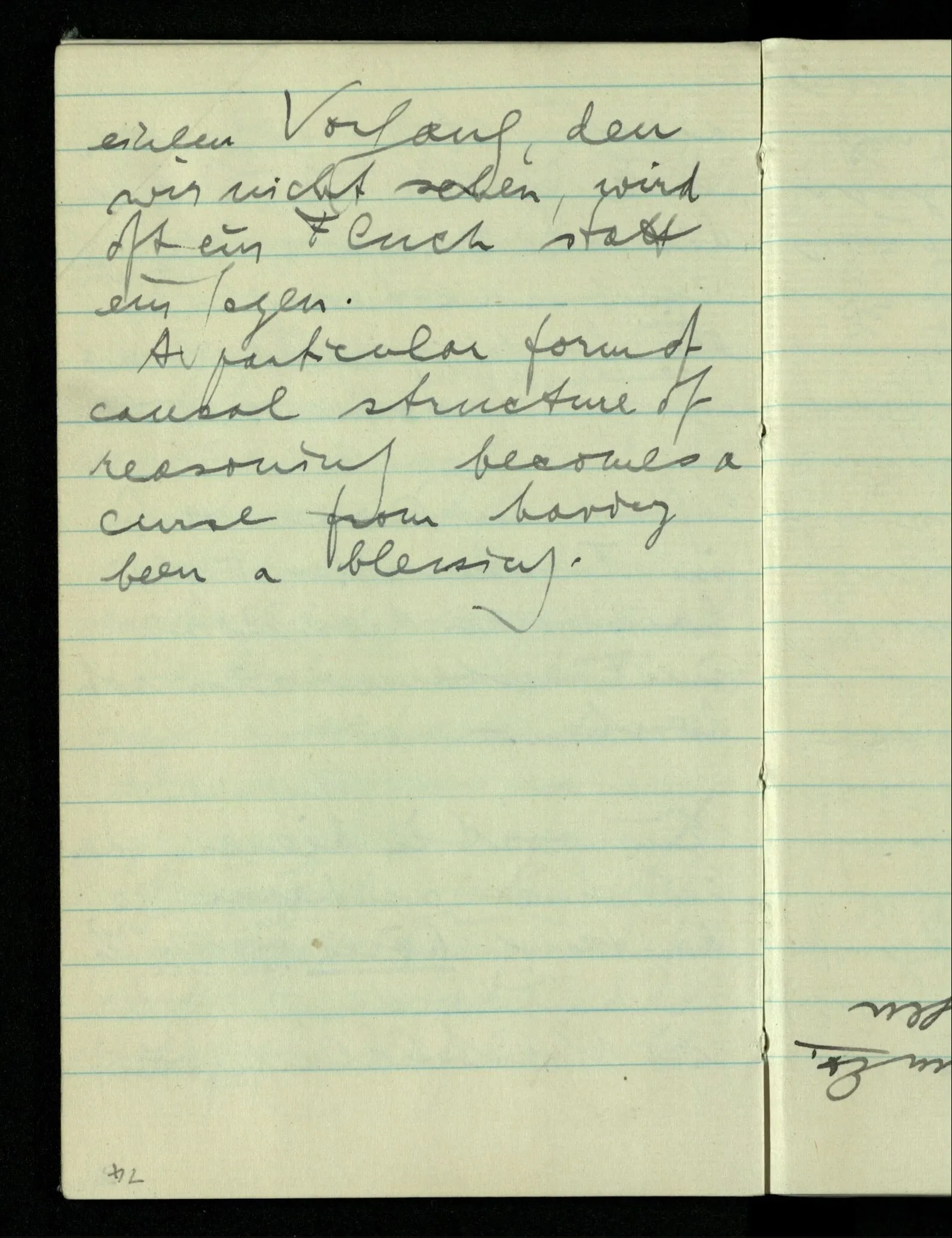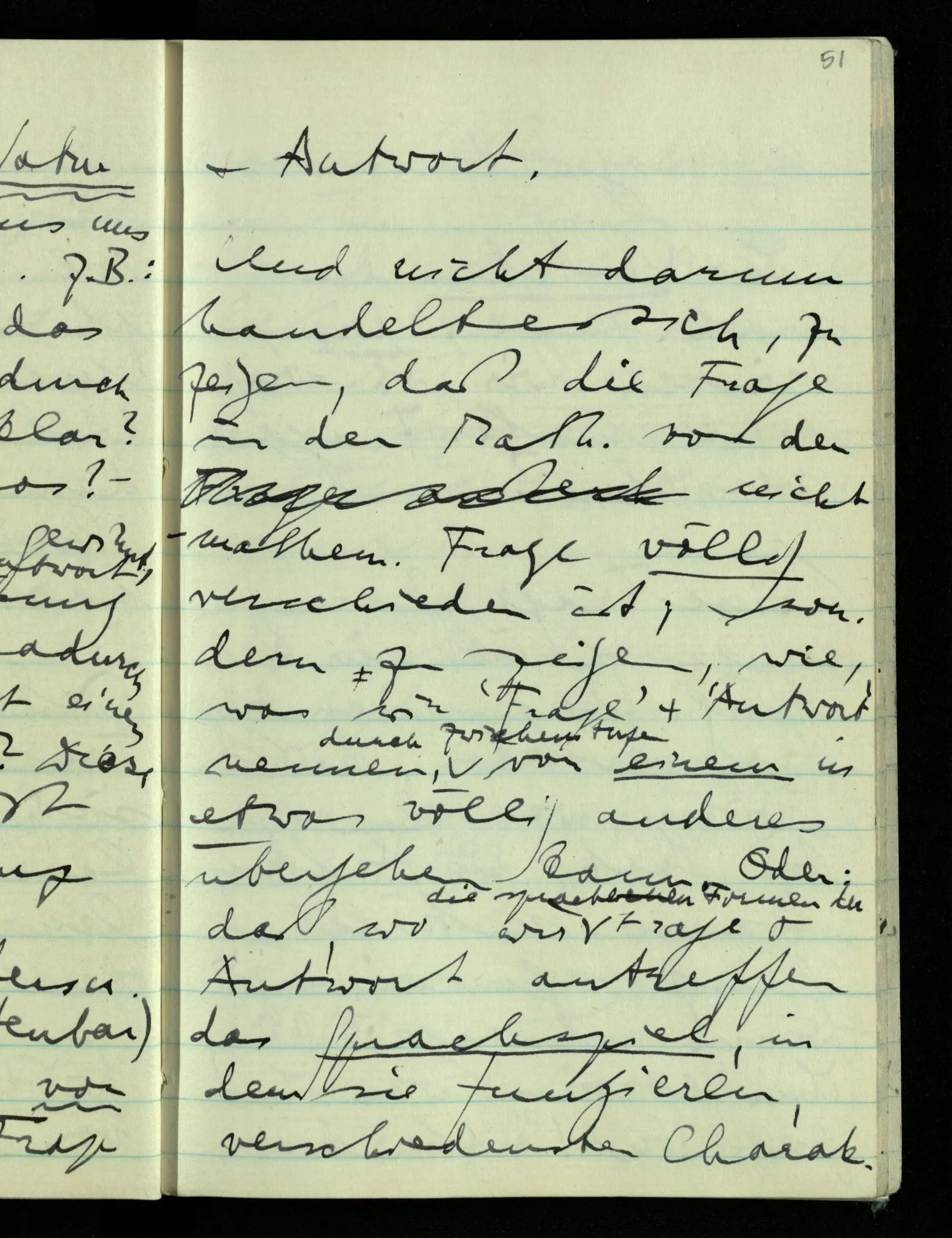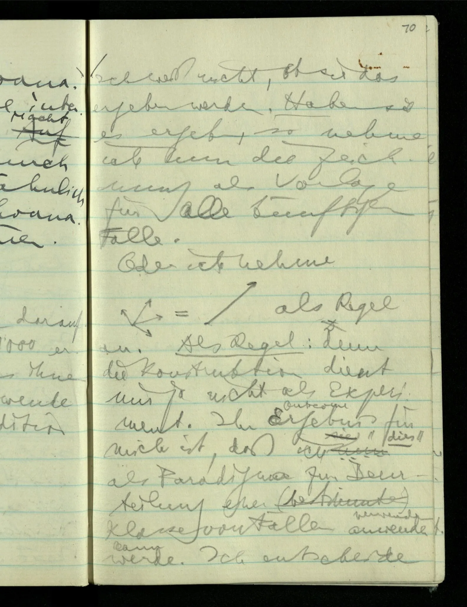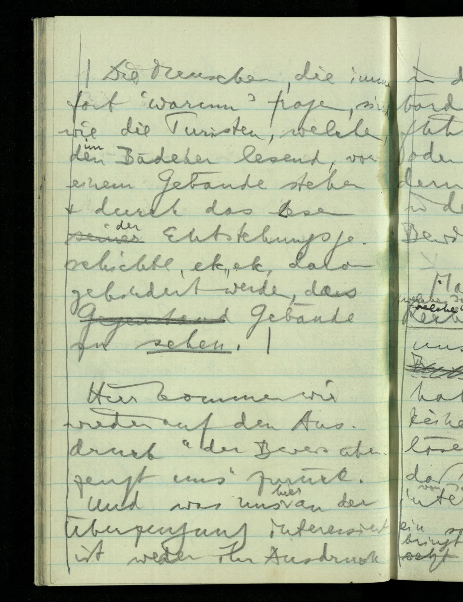 Unsre experimentellen Handlungen haben allerdings ein charakteristisches Gesicht. Wenn ich jemand in einem Laboratorium eine Flüssigkeit in eine Proberöhre gießen & über einem Bunsenbrenner erhitzen sehe, (so) bin ich geneigt, zu sagen, “er macht ein Experiment”.