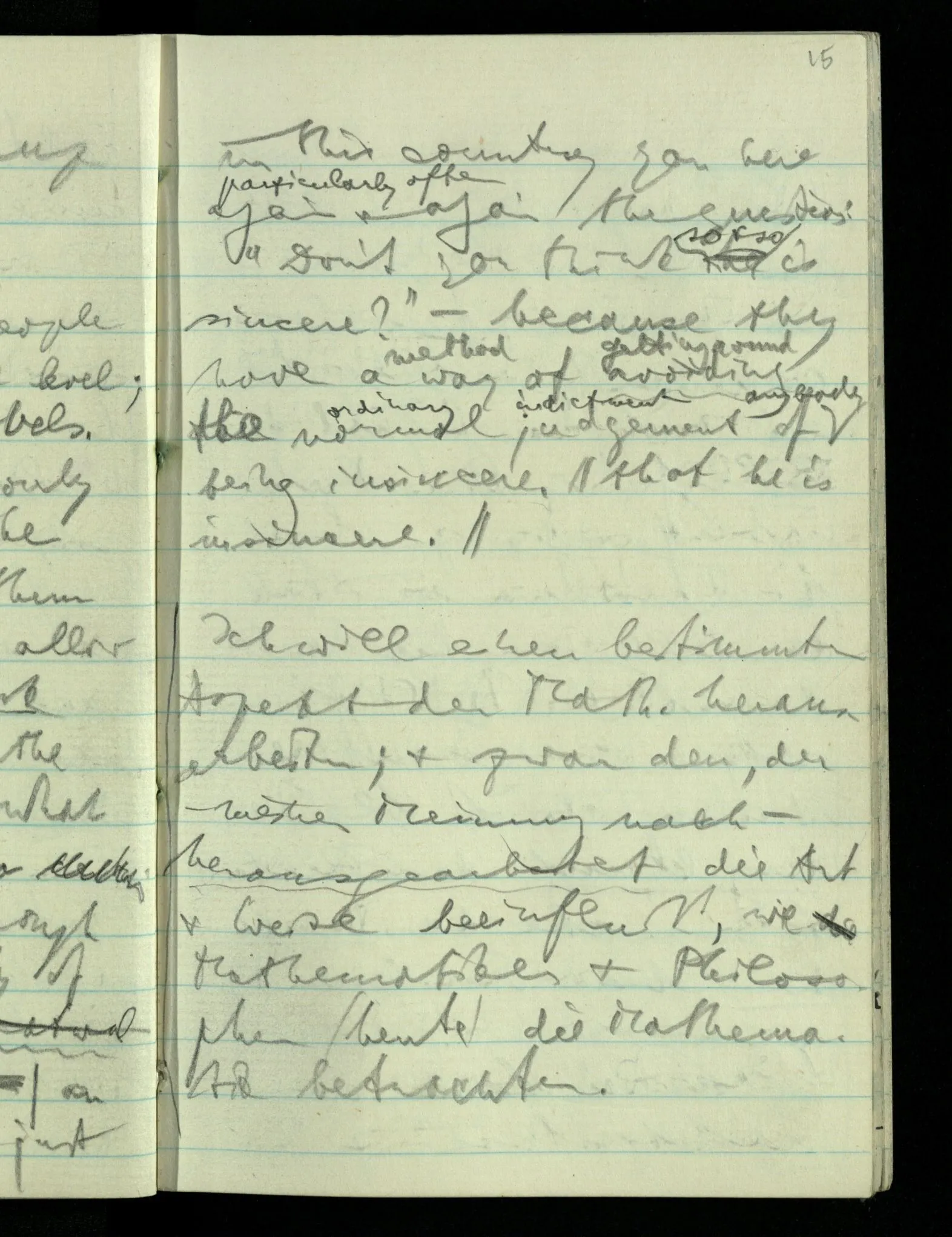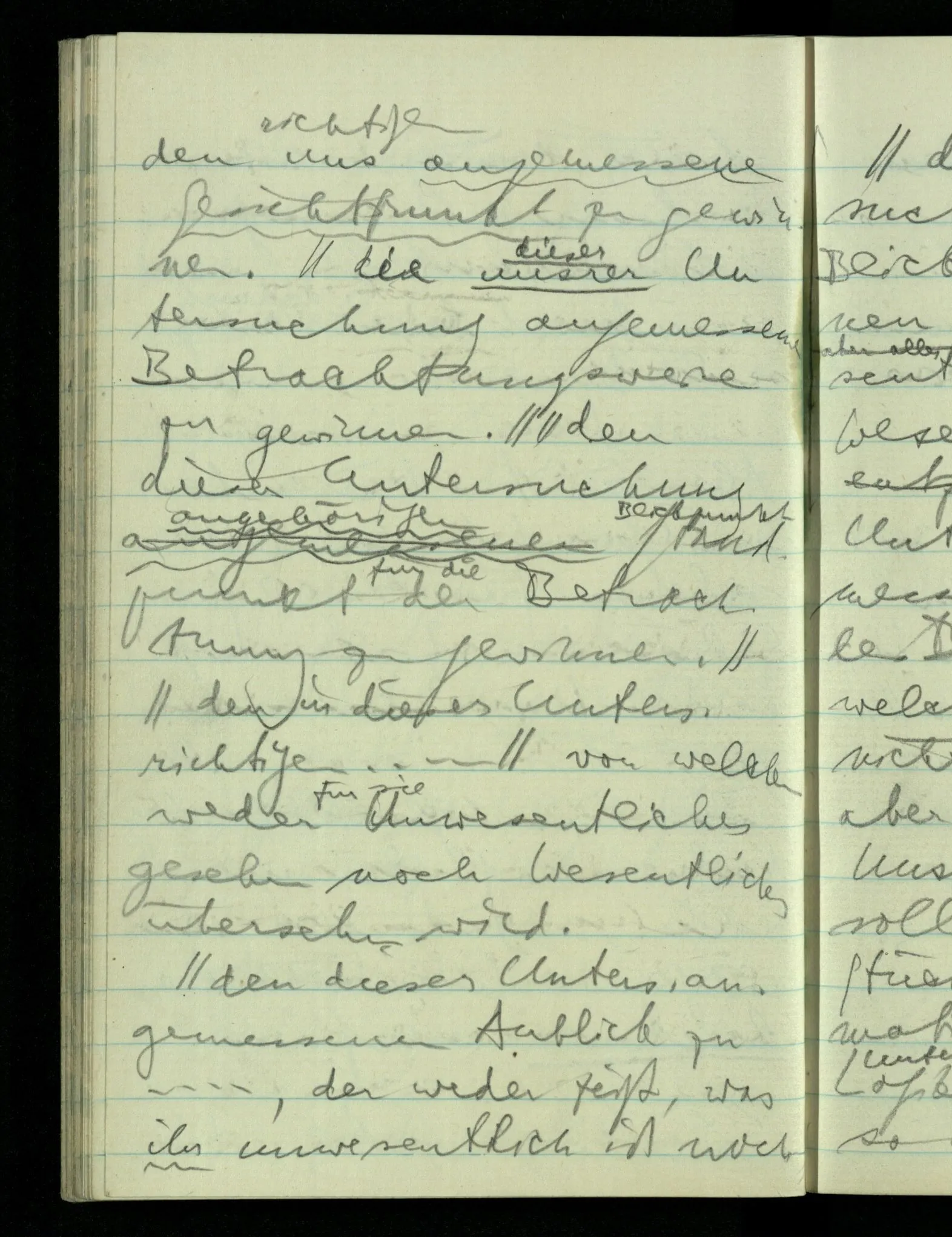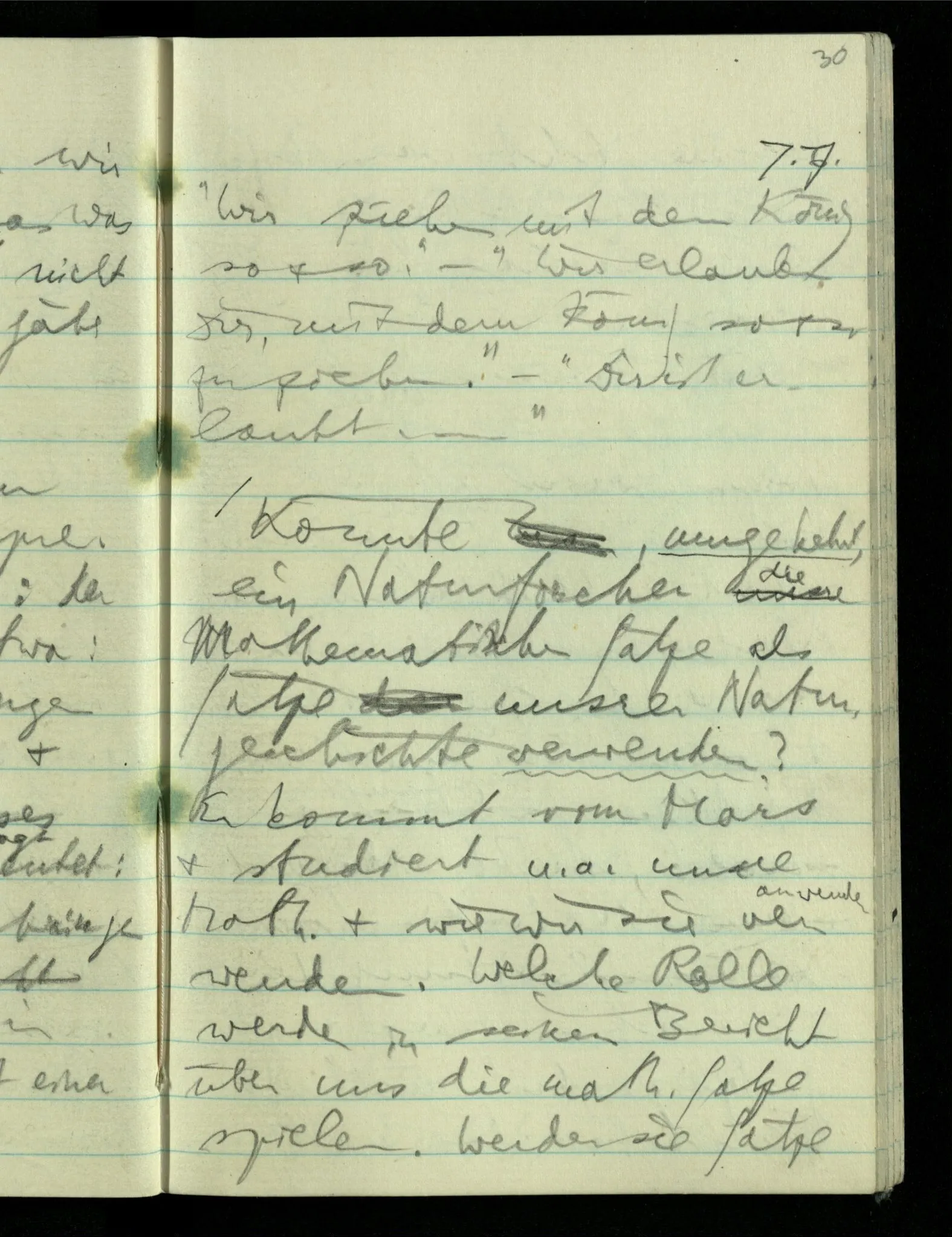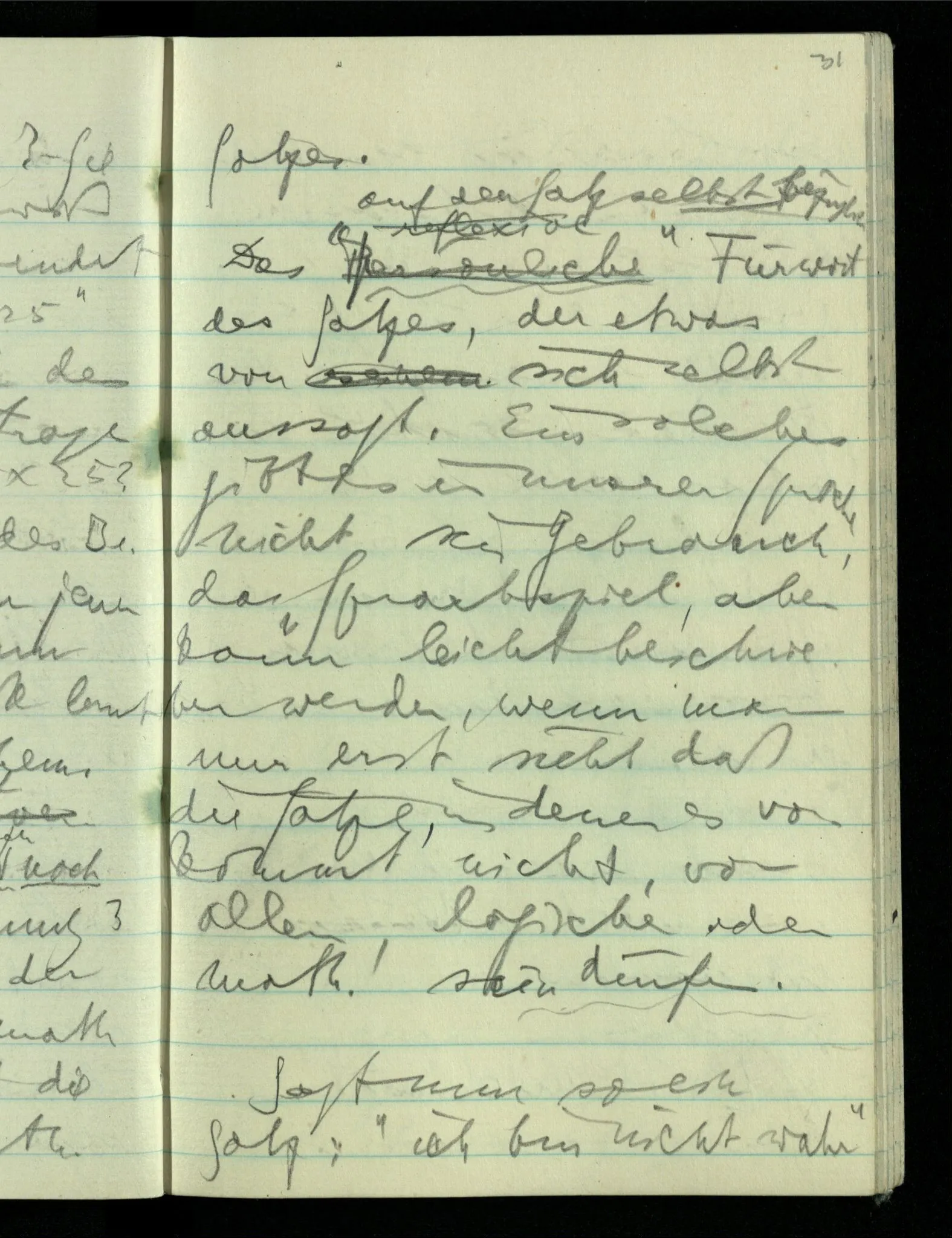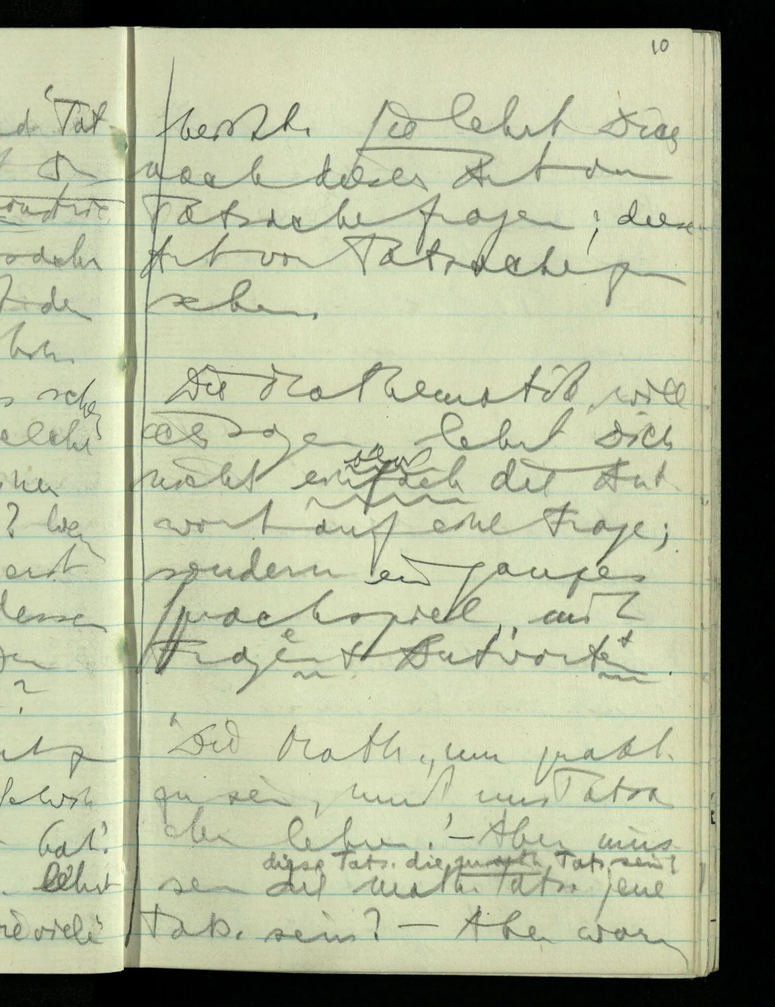 Unsre experimentellen Handlungen haben allerdings ein charakteristisches Gesicht. Wenn ich jemand in einem Laboratorium eine Flüssigkeit in eine Proberöhre gießen & über einem Bunsenbrenner erhitzen sehe, (so) bin ich geneigt, zu sagen, “er macht ein Experiment”.