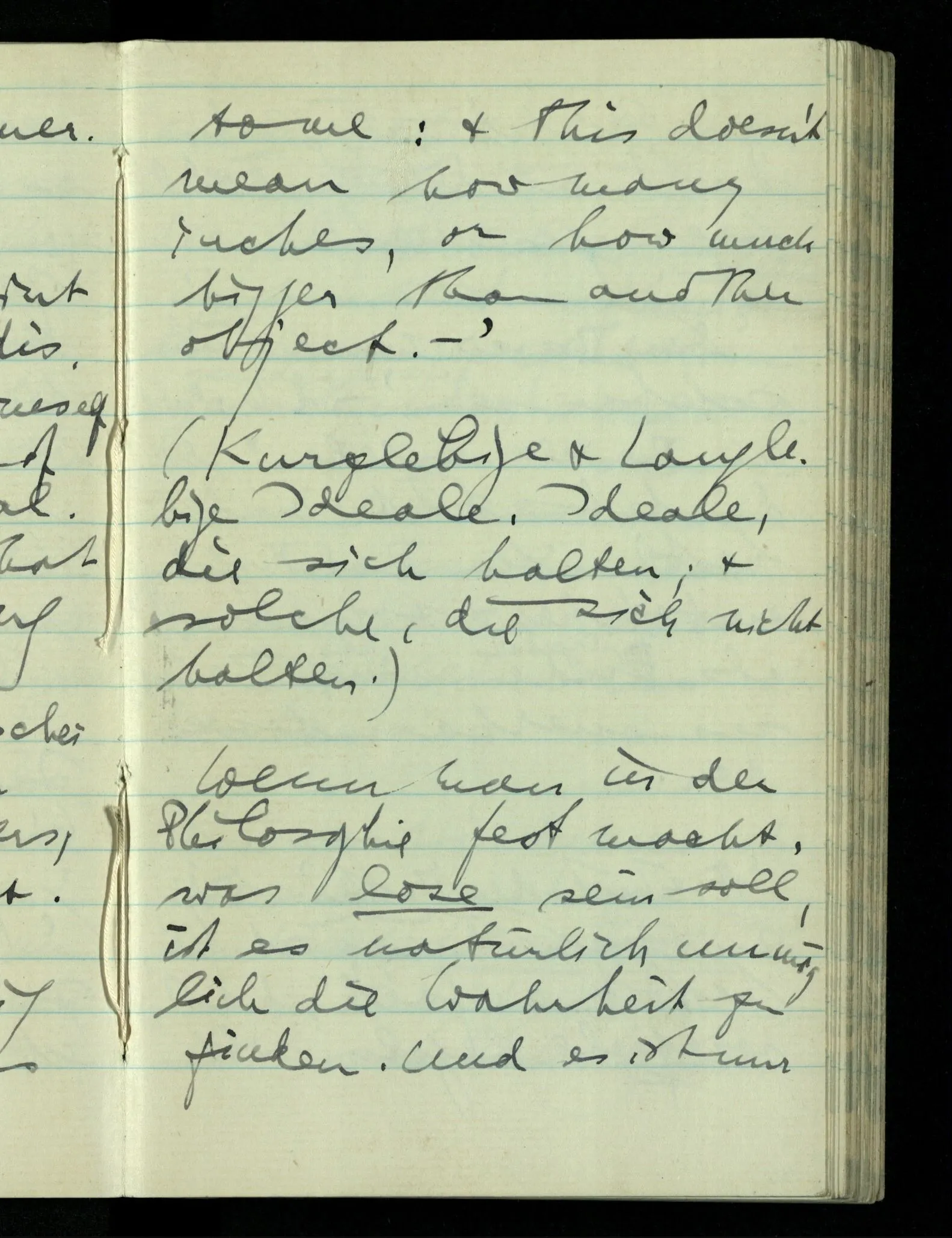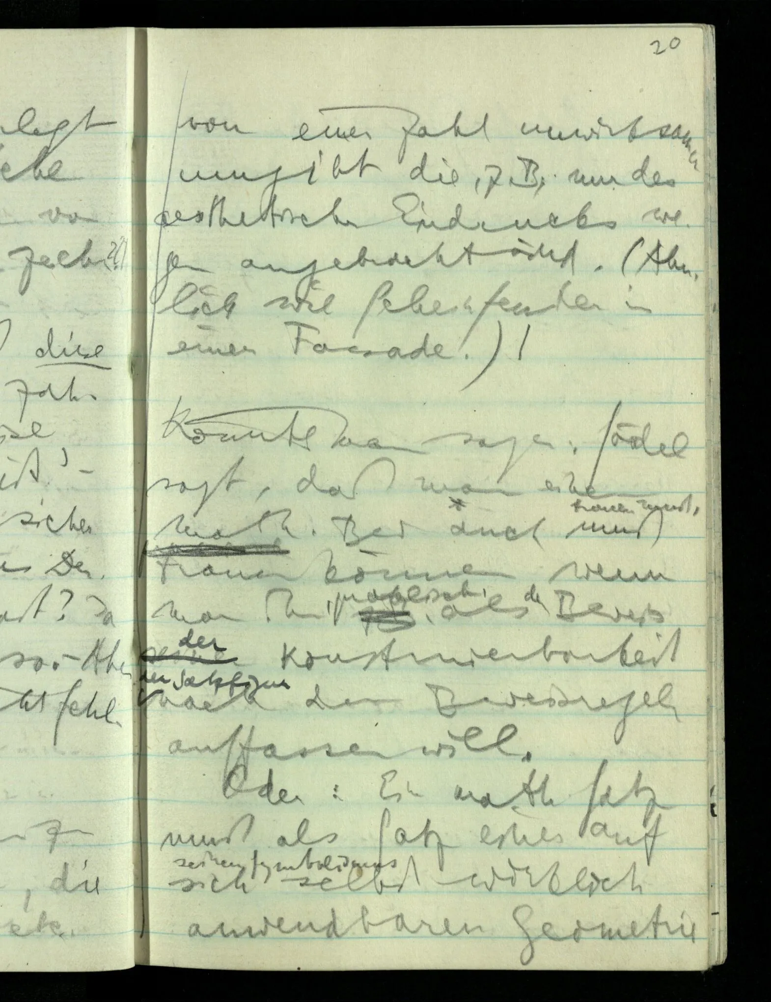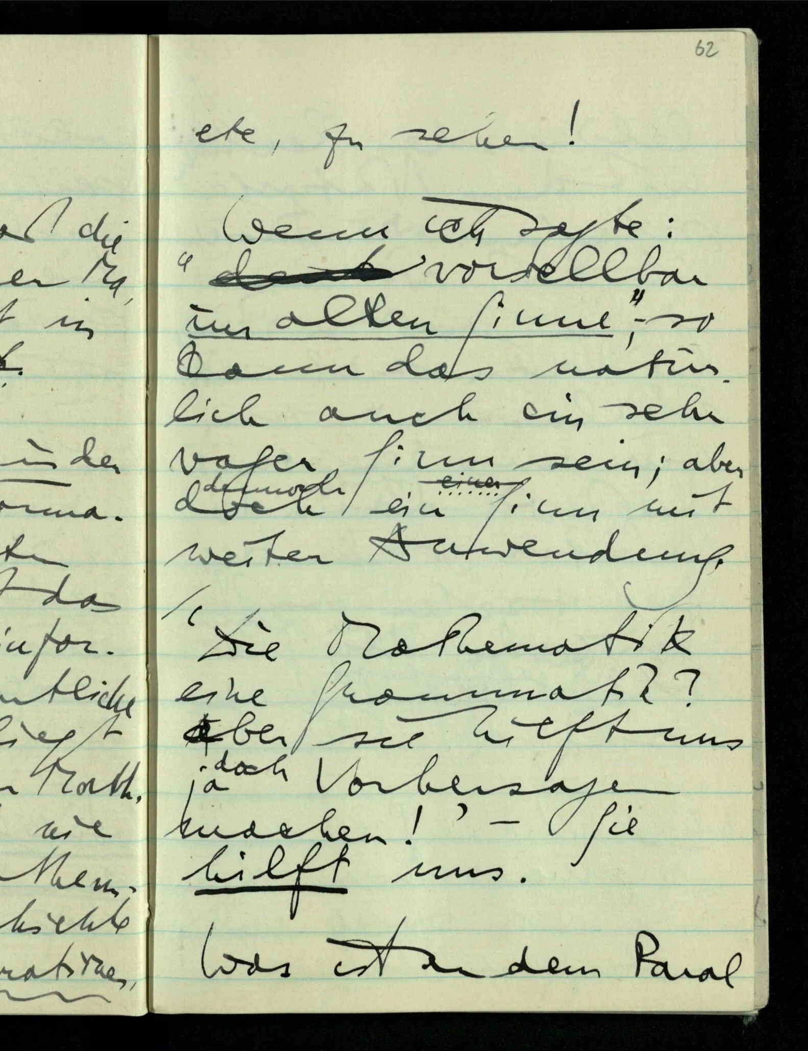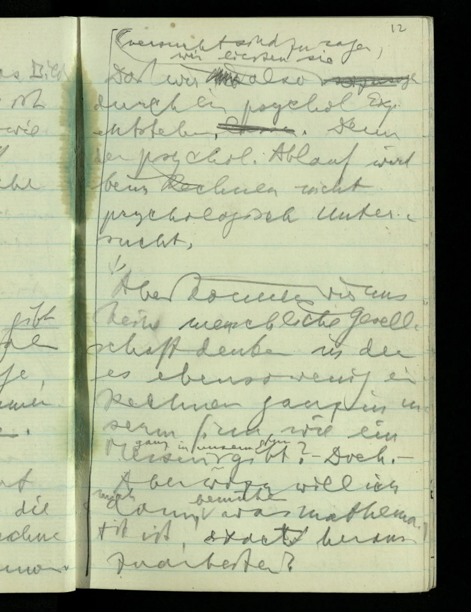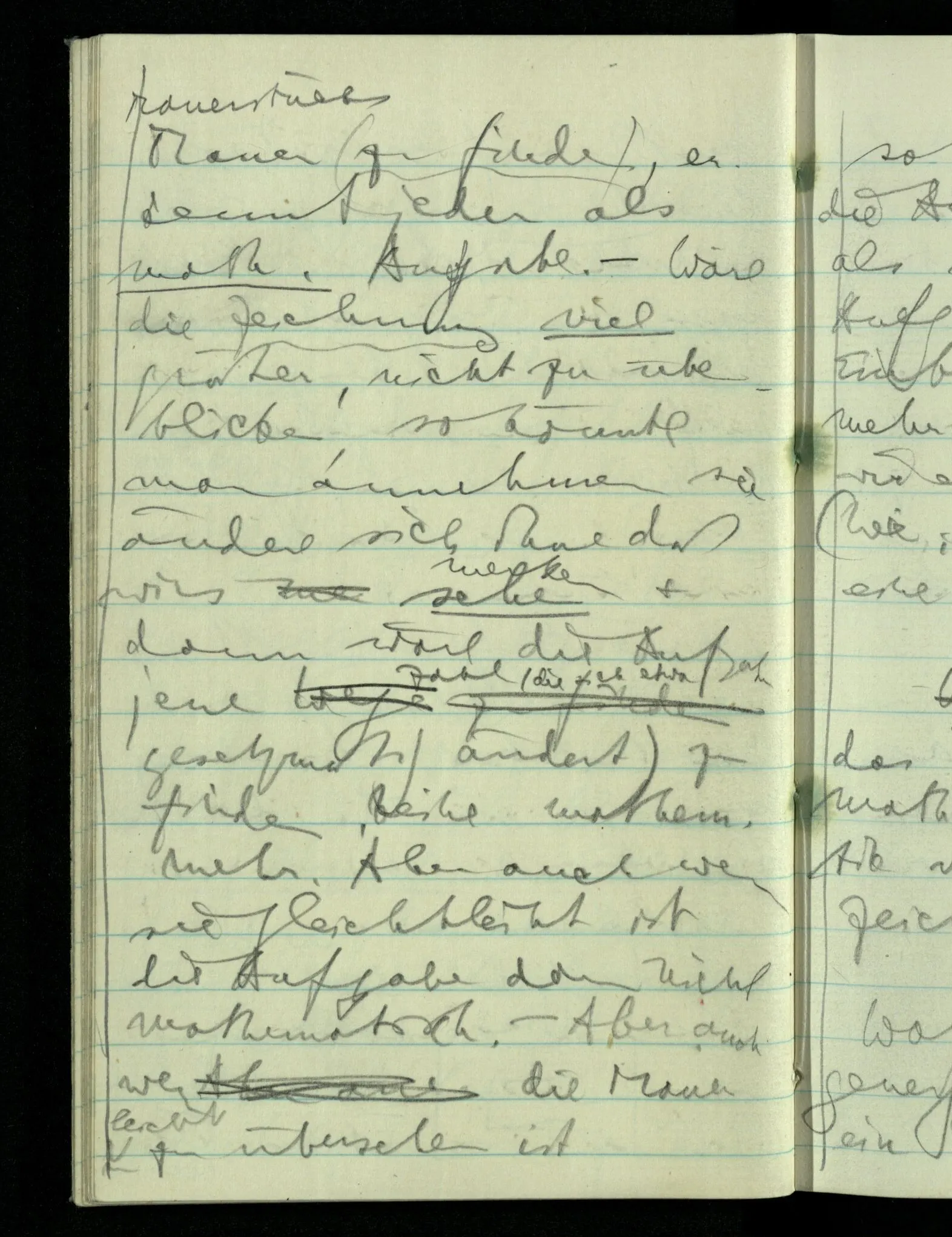 Aber können wir uns keine menschliche Gesellschaft denken in der es ebensowenig ein Rechnen ganz in unserm Sinn, wie ein Messen ganz in unserm Sinn gibt? – Doch. – Aber wozu will ich mich dann bemühen, was Mathematik ist, exakt herauszuarbeiten? Weil es bei uns eine Math. gibt & eine bestimmte Auffassung der Math. (gleichsam ein Ideal) das es wichtig ist klar zu beschreiben.