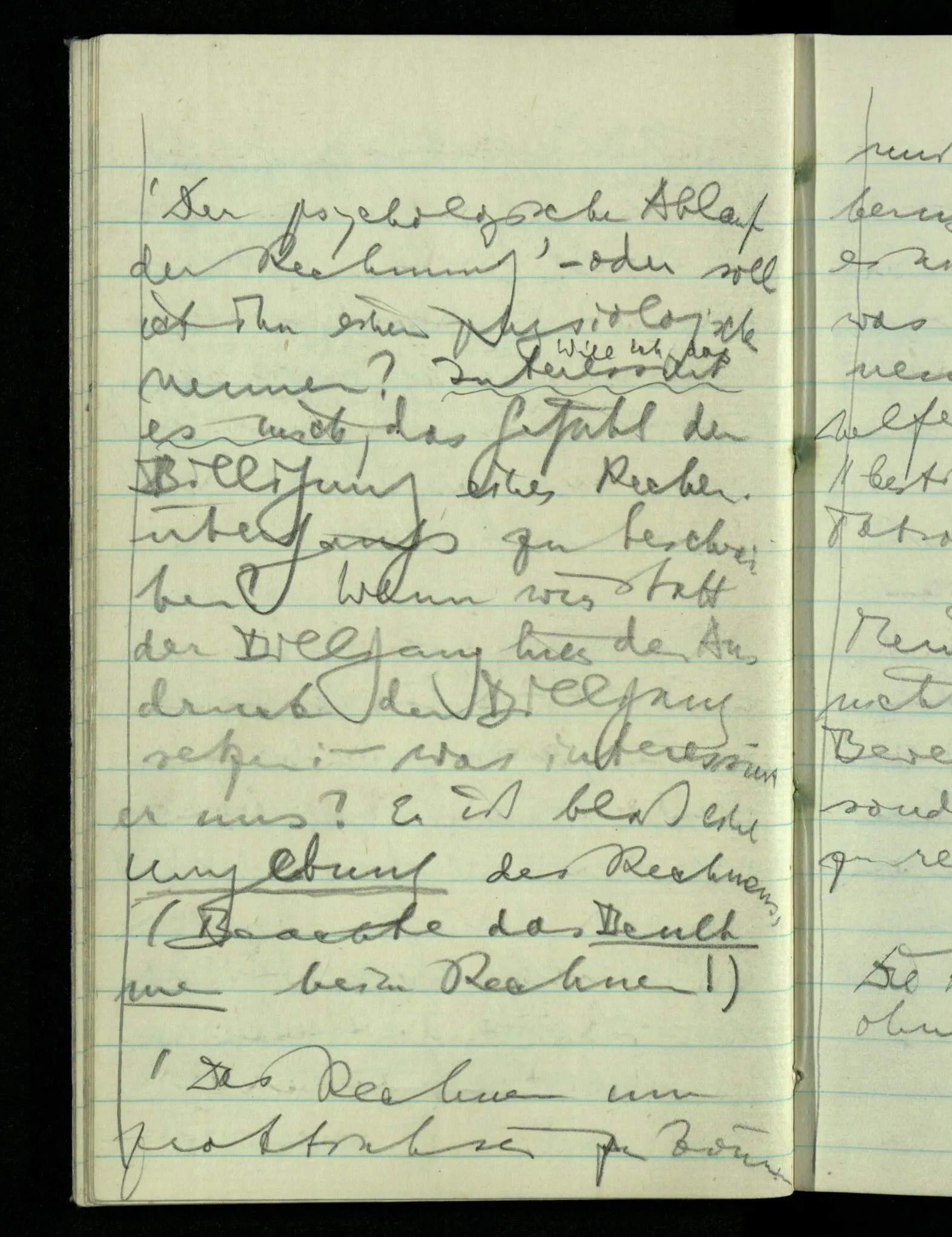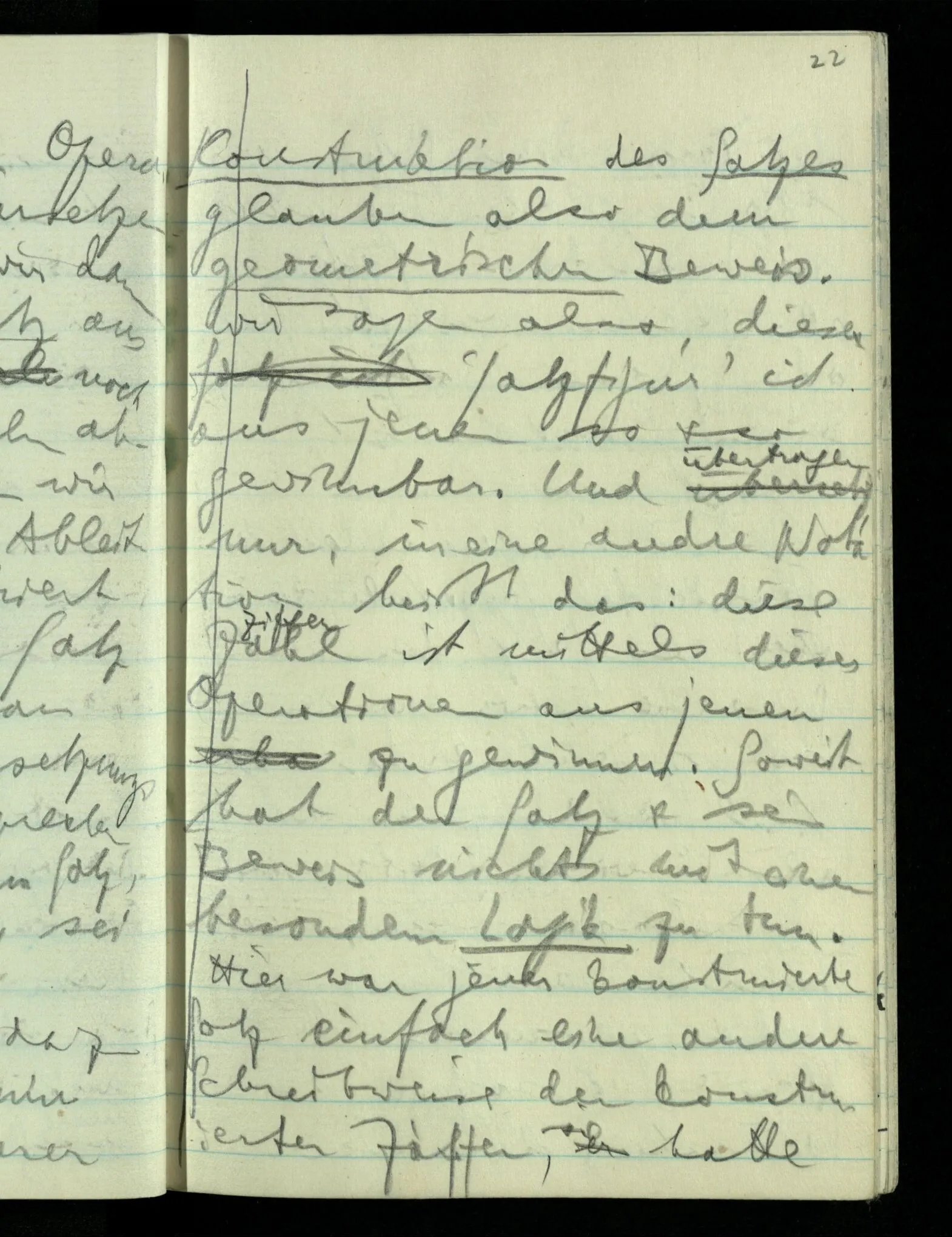 Und darin ändert es nichts, daß wir die Beweisfigur nachrechnen um sie anzuerkennen. Daß wir also versucht sind zu sagen, wir ließen sie durch ein psychologisches Experiment entstehen. Denn der psychologische Ablauf wird beim Rechnen nicht psychologisch untersucht.