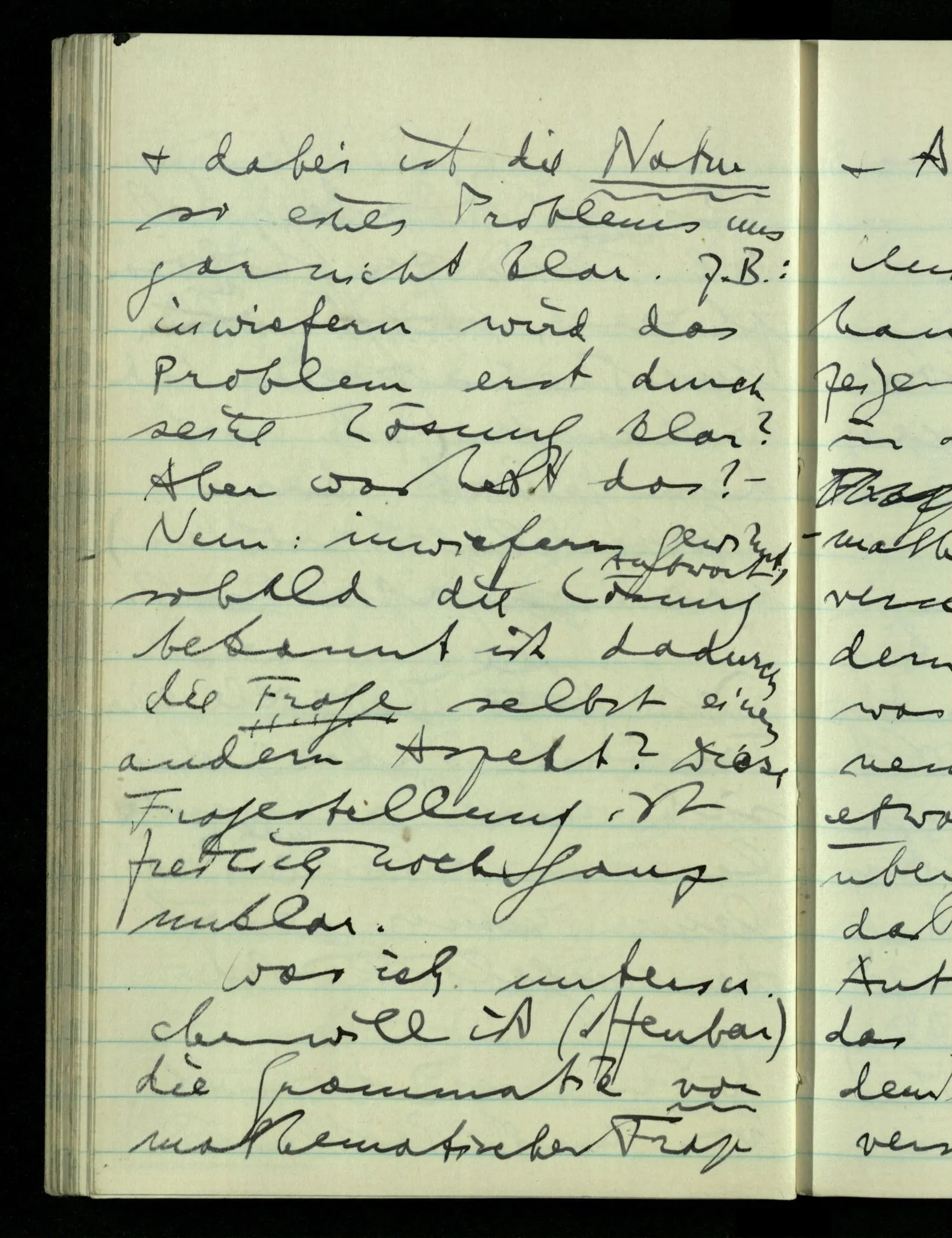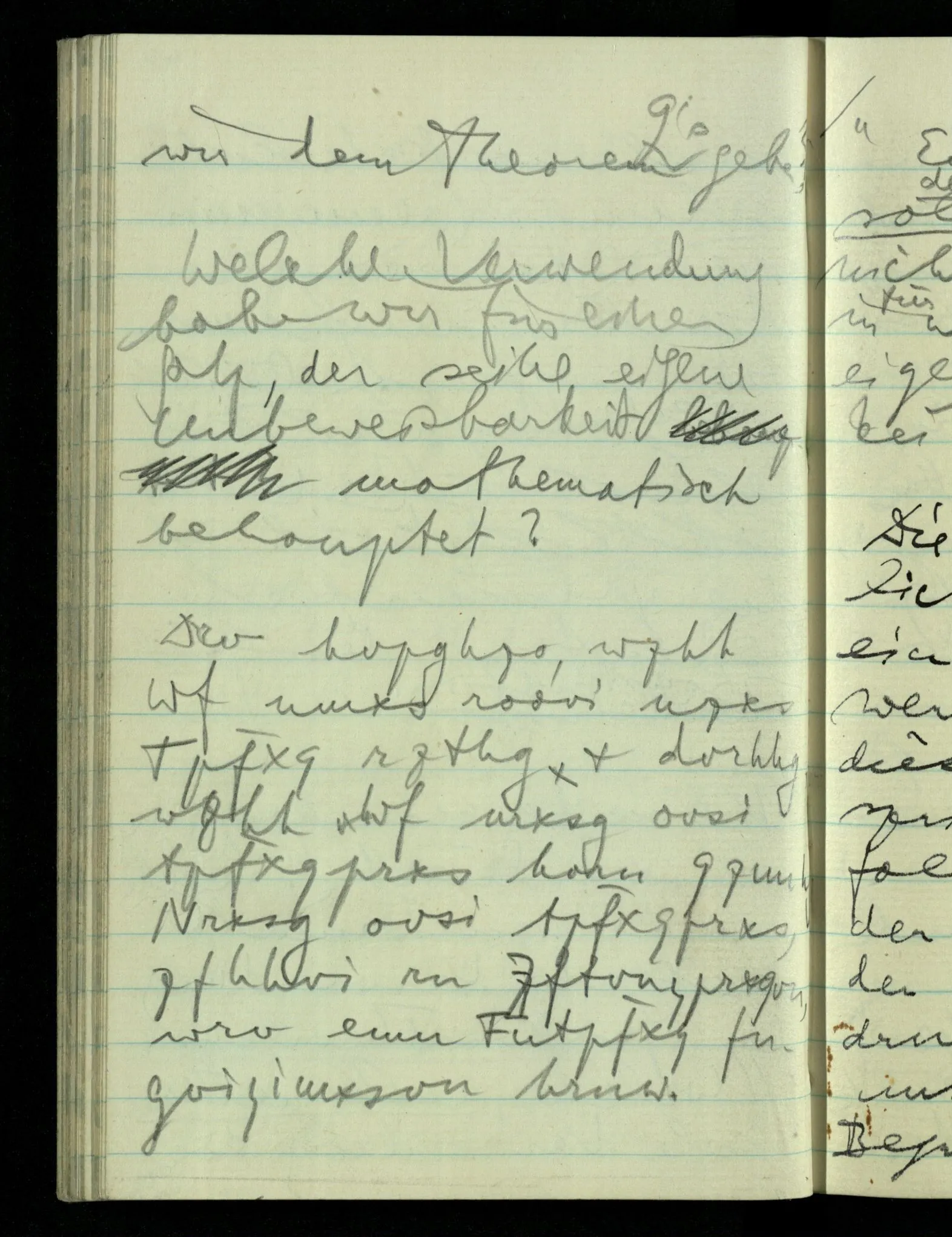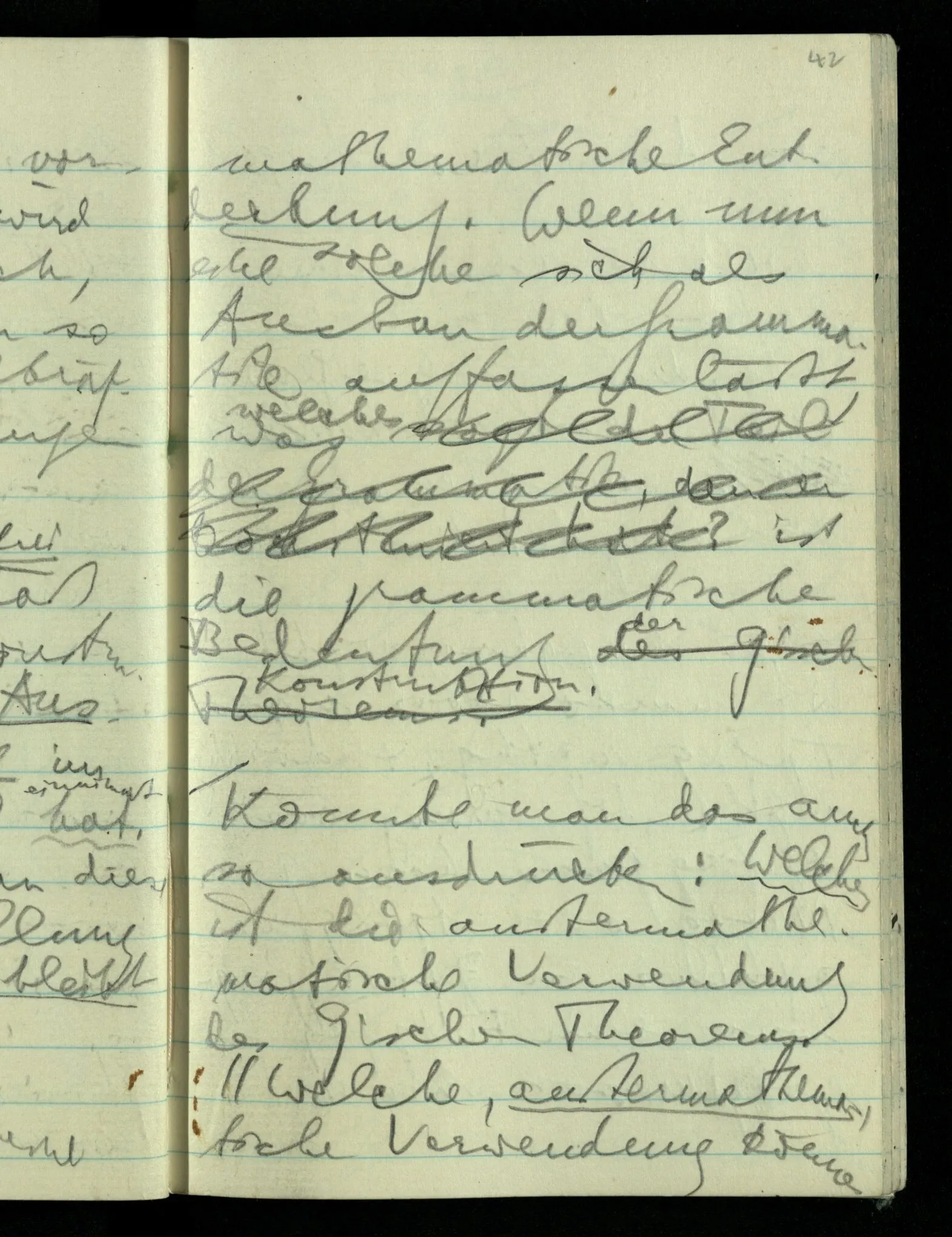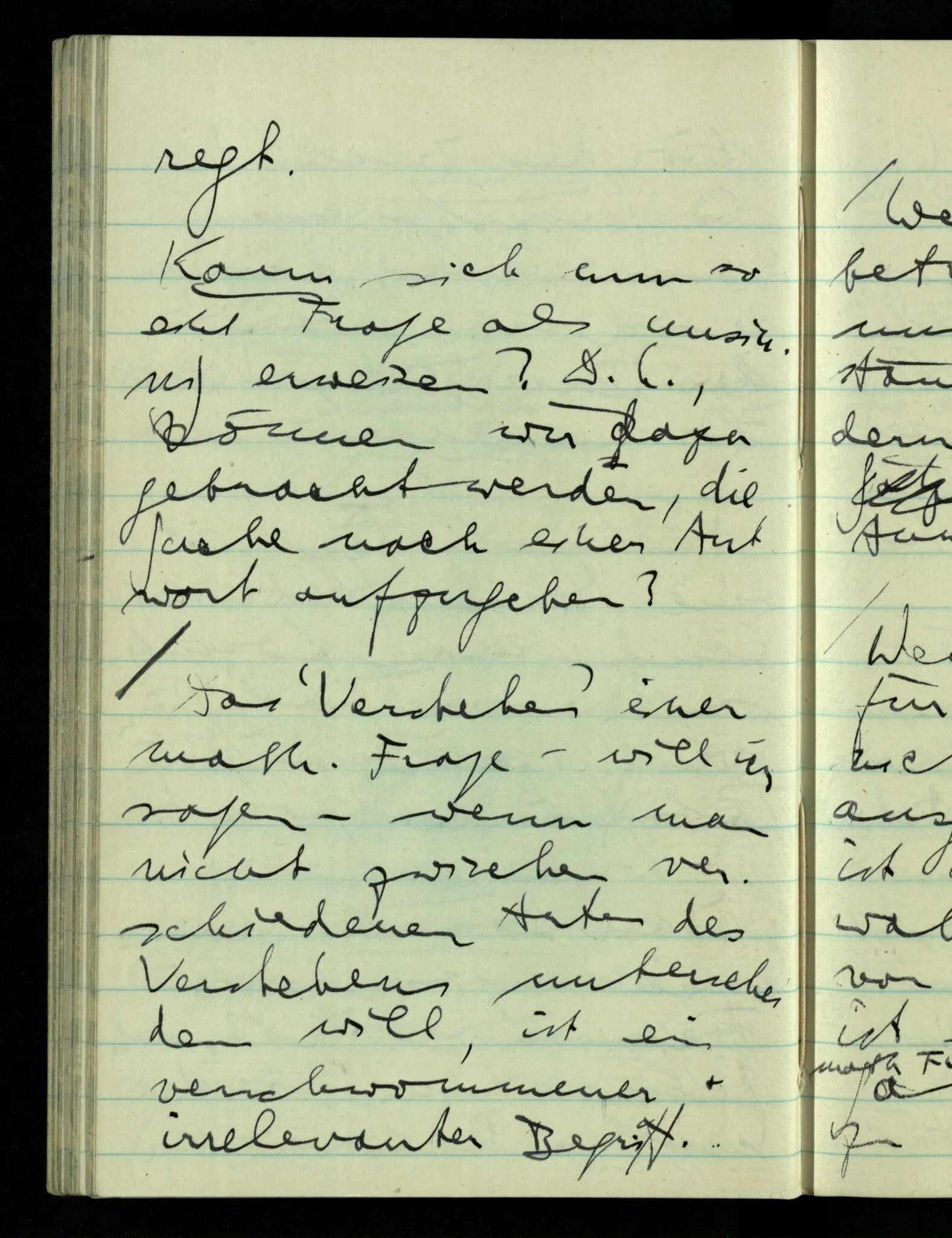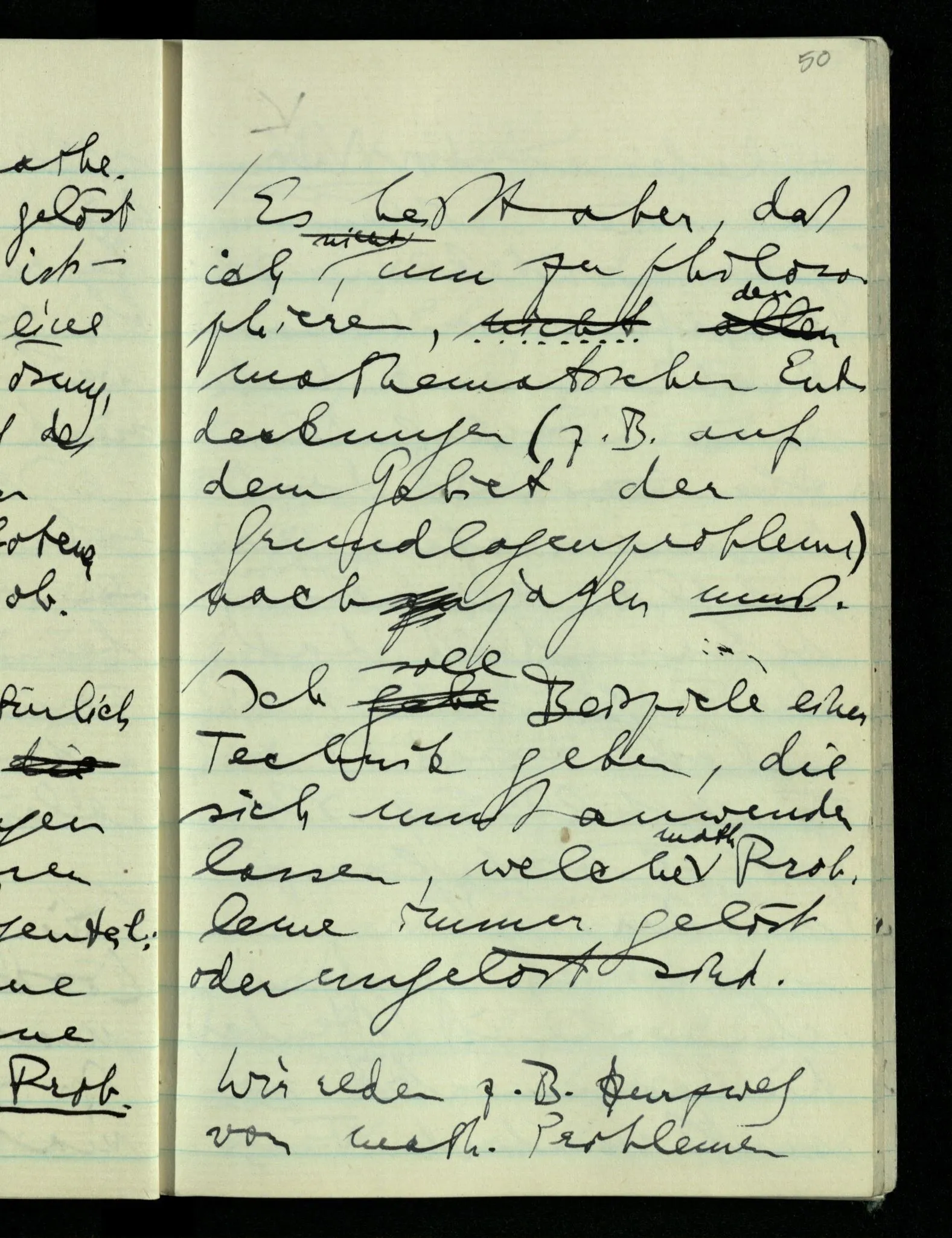 ‘Freiheit der Math.’ – Die Entscheidung ist frei, heißt einfach, daß, wieviele Regeln wir auch geben, wir noch eine geben könnten, die jede beliebige Entscheidung mit der Stufe auf der sie geschieht, erklärt.