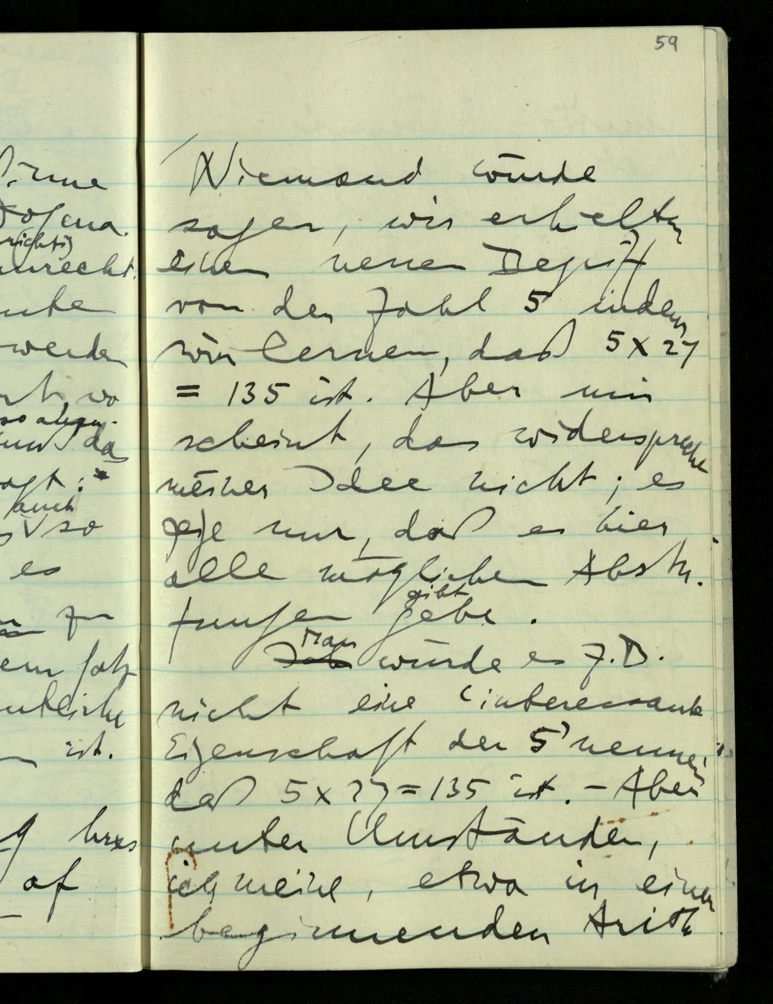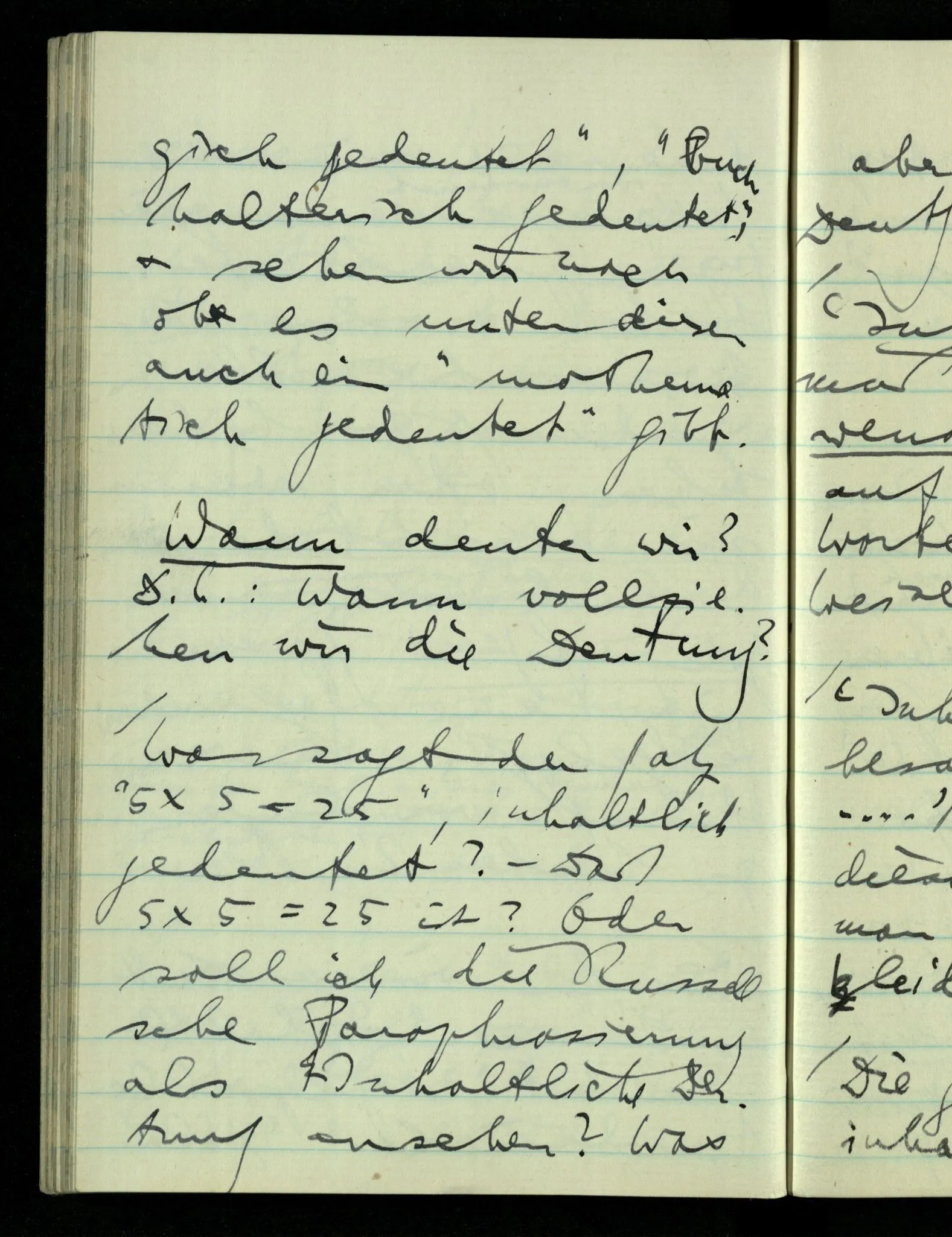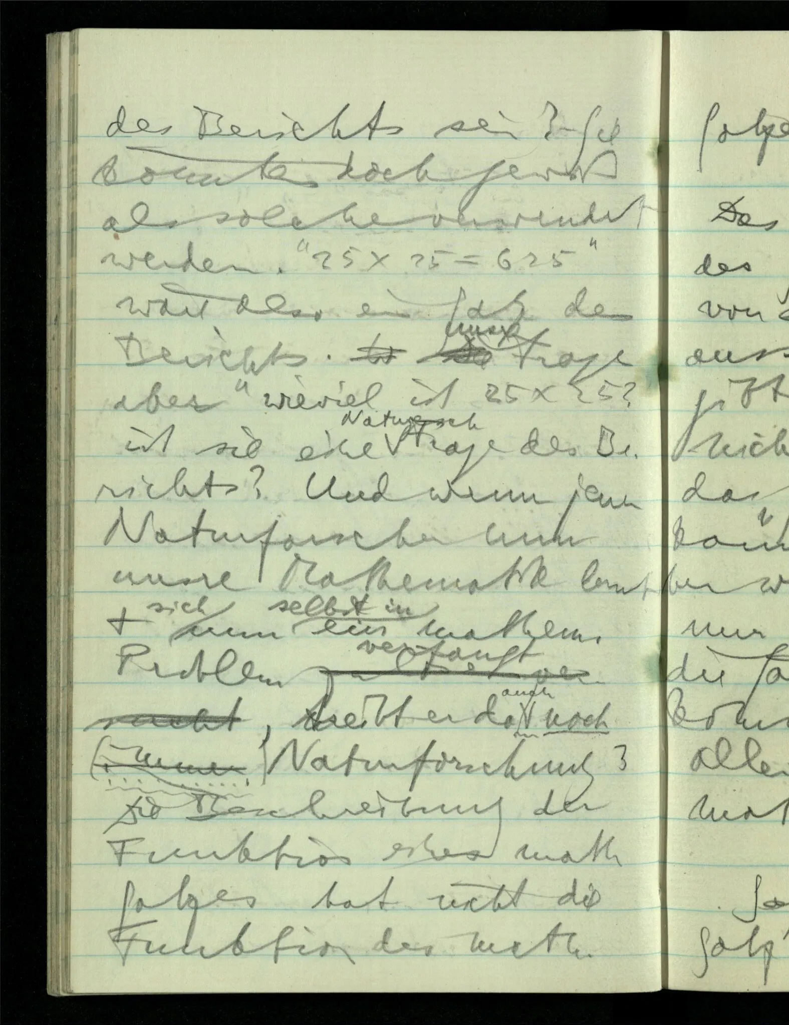 Wenn ich zweifle, ob die Zahlen n und m multipliziert 𝓁 ergeben werden, so bin ich nicht darüber im Zweifel, ob eine Verwirrung in unserm Rechnen ausbrechen wird & etwa die Hälfte der Menschen eines die andere Hälfte etwas andres für richtig halten werden.