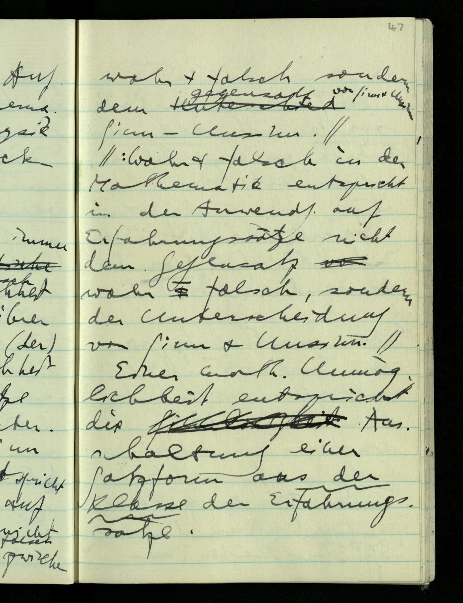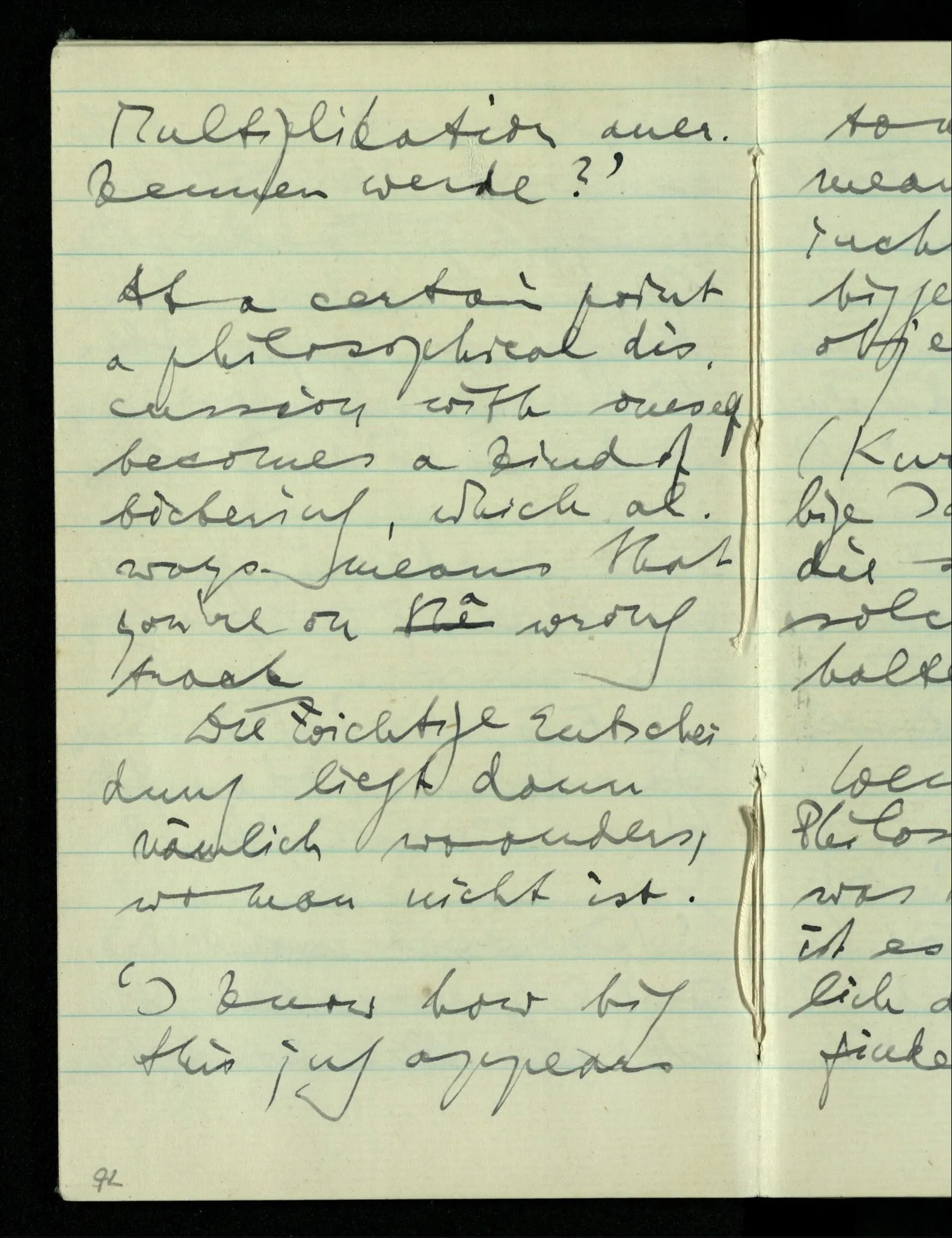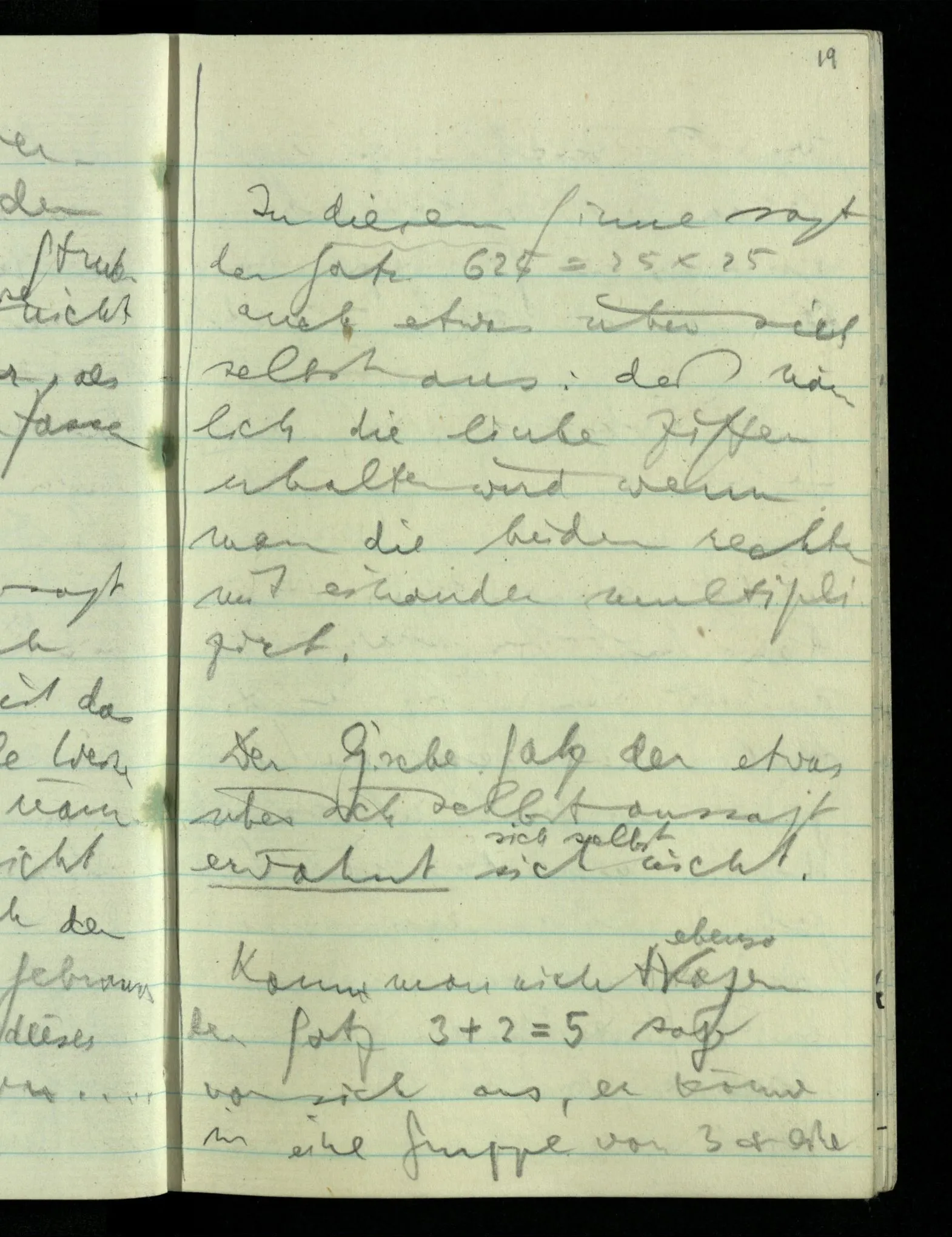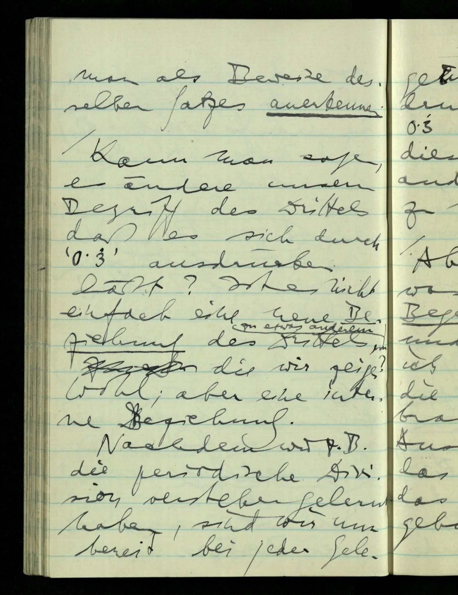Wenn ich zweifle, ob die Zahlen n und m multipliziert 𝓁 ergeben werden, so bin ich nicht darüber im Zweifel, ob eine Verwirrung in unserm Rechnen ausbrechen wird & etwa die Hälfte der Menschen eines die andere Hälfte etwas andres für richtig halten werden.