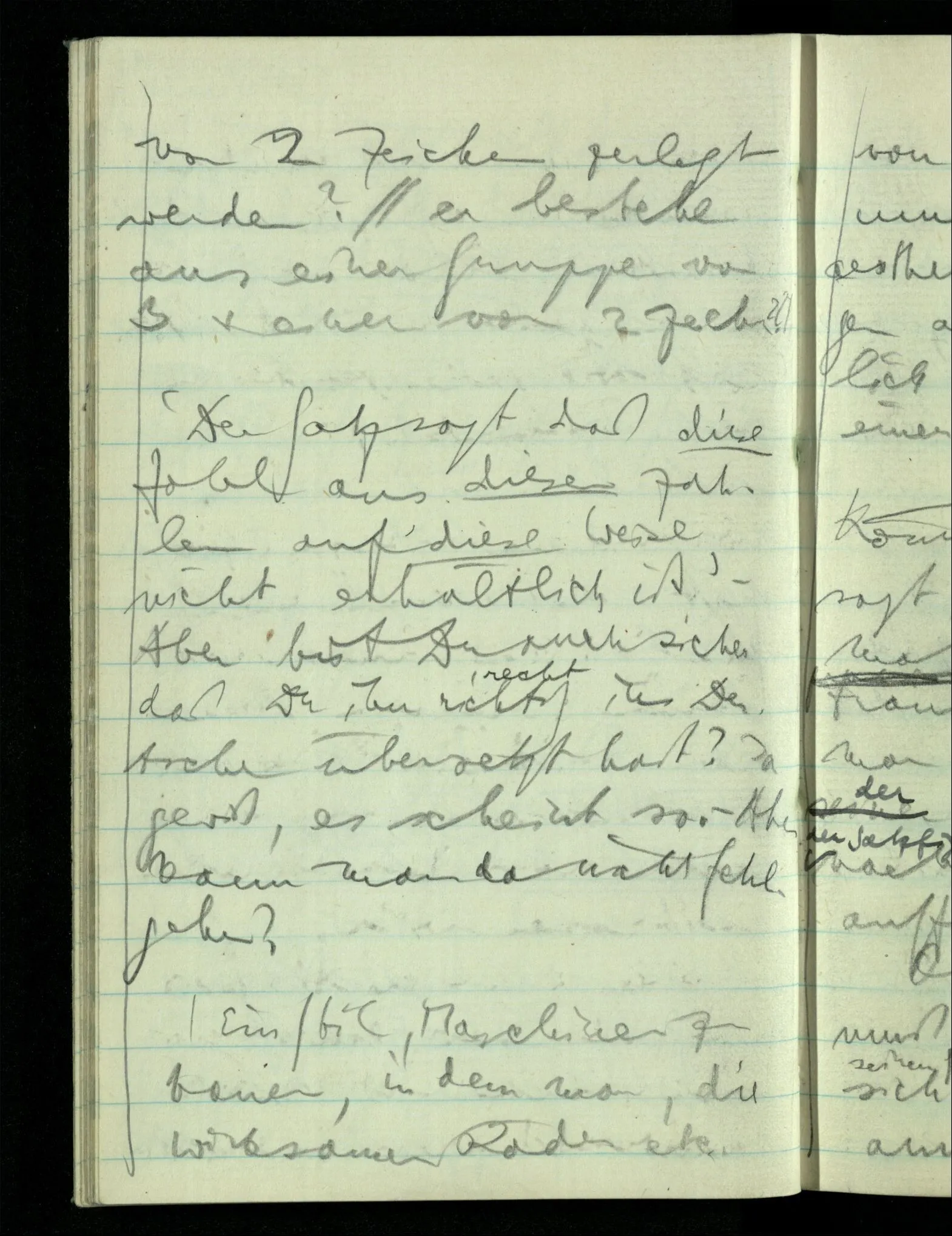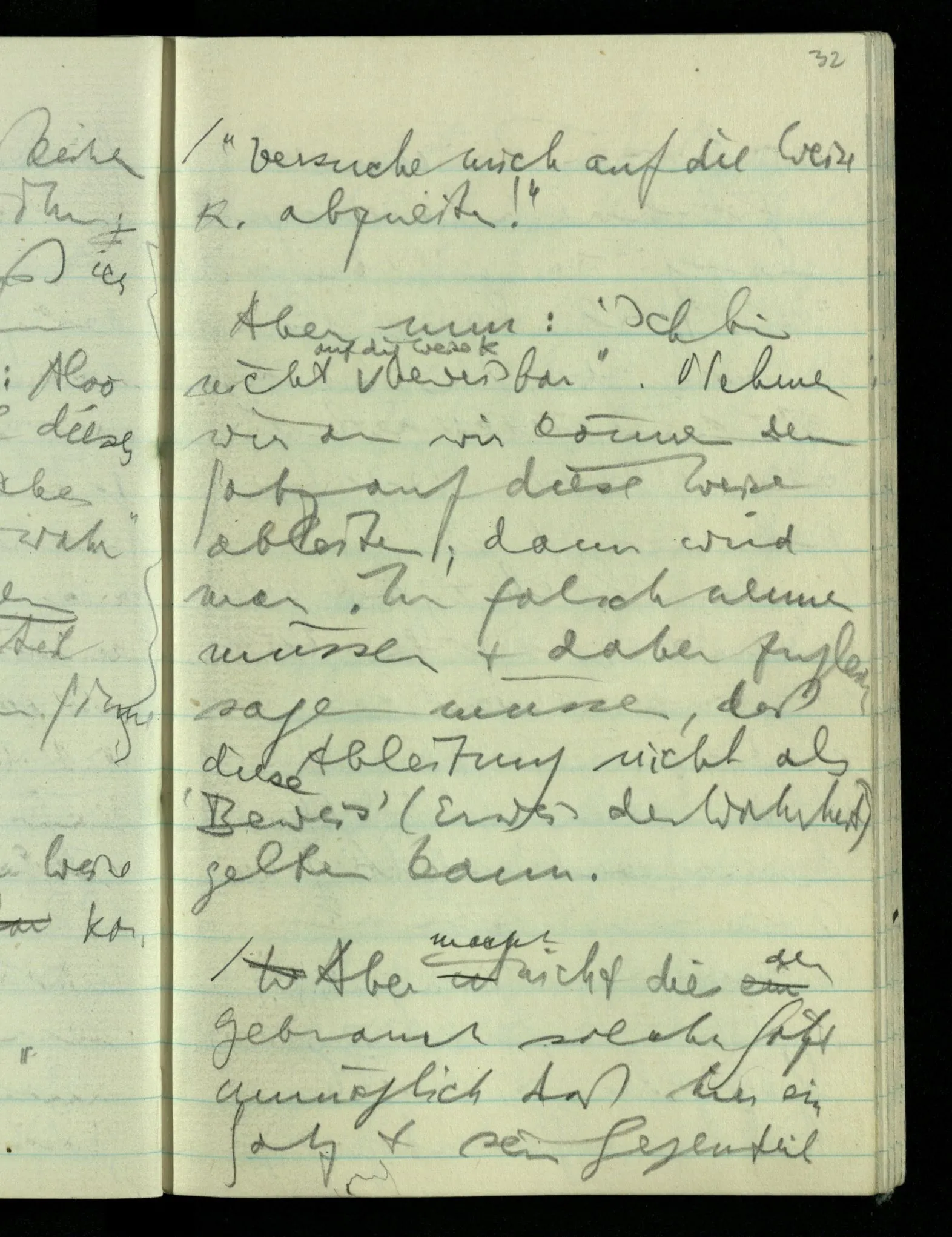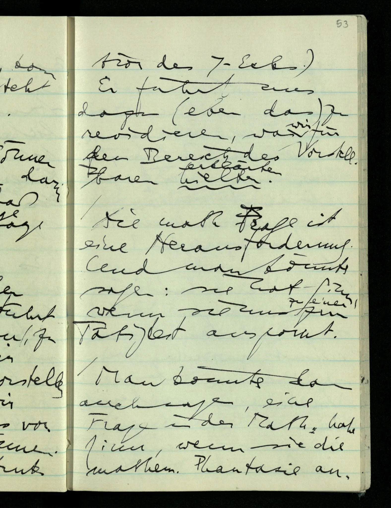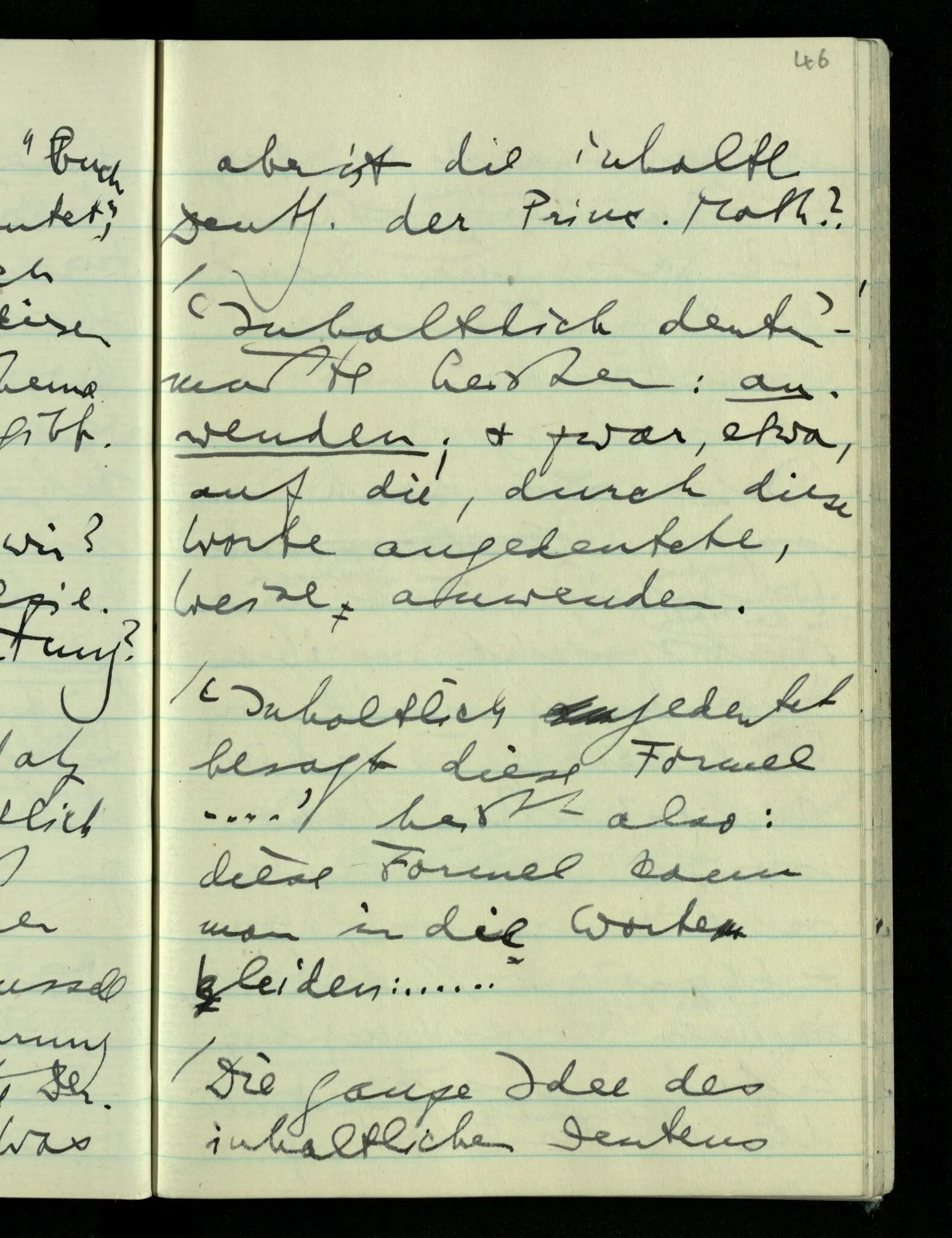 Man könnte sich sogar denken, daß man die Fregesche Logik einem Wilden als Instrument gegeben hätte um damit arithm. Sätze abzuleiten. Er habe den Widerspruch abgeleitet, ohne zu merken, daß es einer sei, & aus ihm nun alle möglichen richtigen & falschen Sätze.