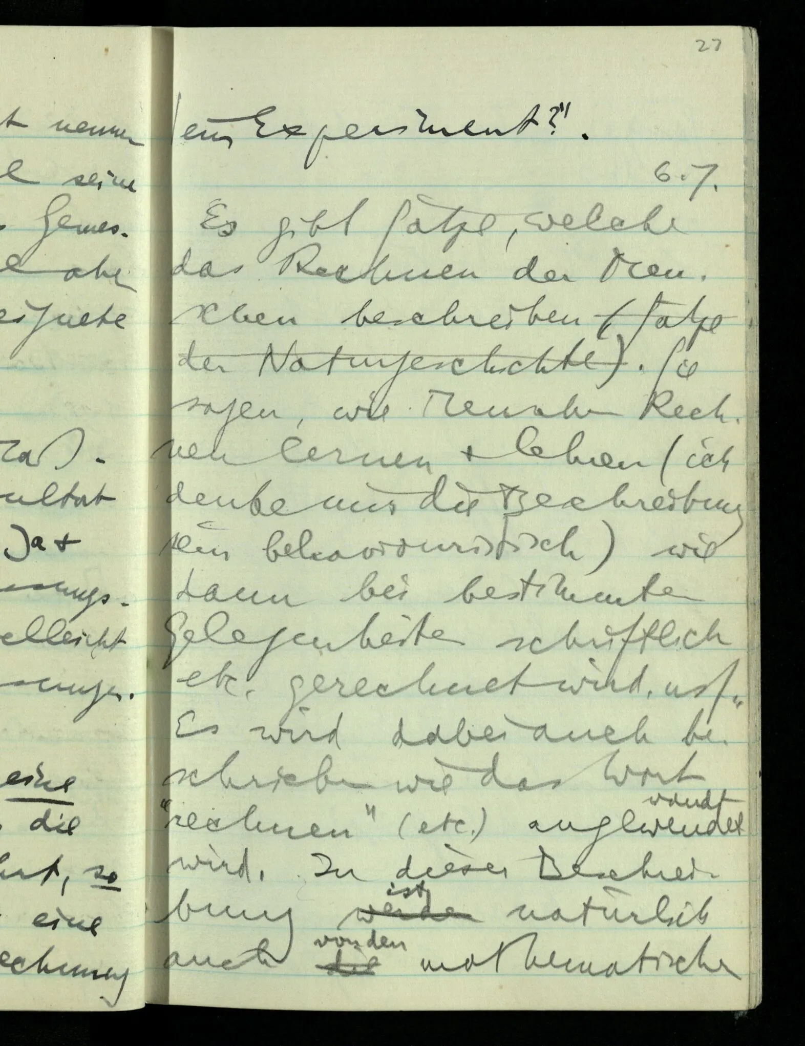25.06.1941 Daß ein Experiment praktisch ist, das weiß er; also ist die Rechnung ein Experiment.