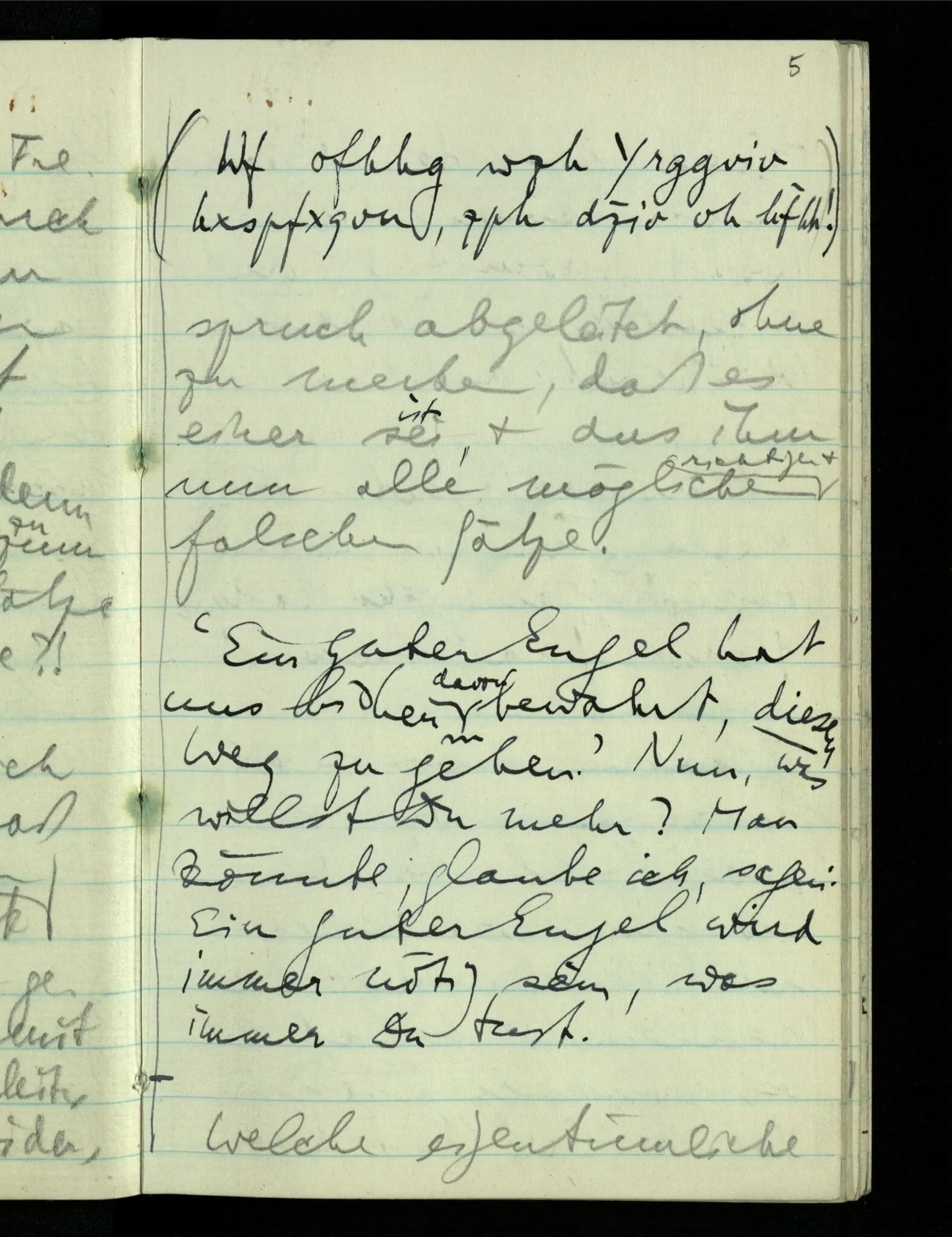 ‘Ein guter Engel hat uns bisher davor bewahrt, diesen Weg zu gehen.’ Nun, was willst Du mehr? Man könnte, glaube ich, sagen: Ein guter Engel wird immer nötig sein, was immer Du tust.