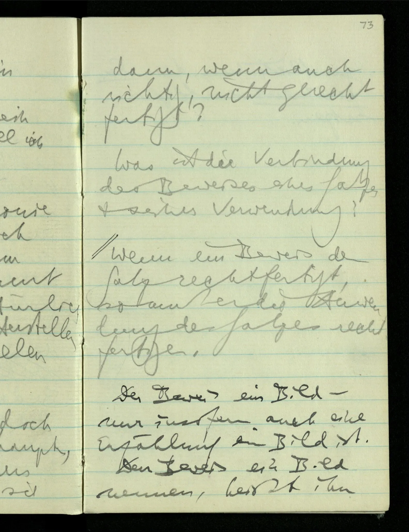 Man könnte ja auch, so seltsam es klänge, von einem Beweis sagen, er sei das Bild eines Menschen, das & das beweisend, oder den & den Satz aus diesen erzeugend.