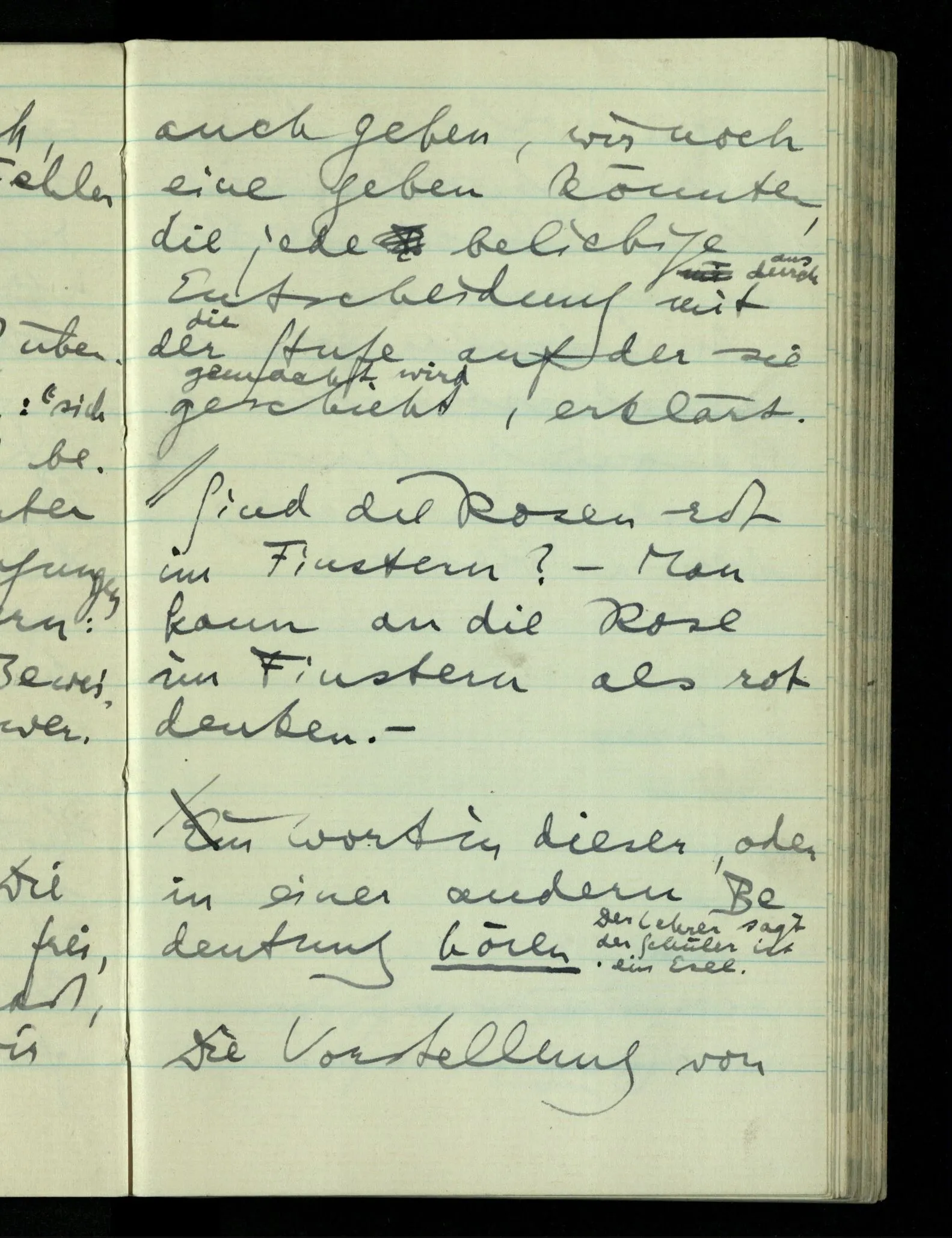 Sind die Rosen rot im Finstern? – Man kann an die Rose im Finstern als rot denken. –