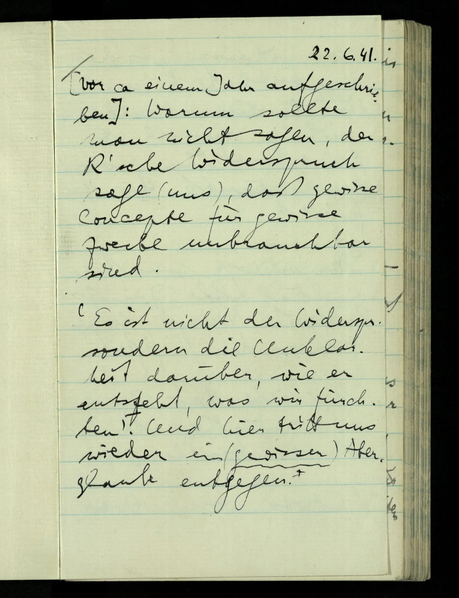 22.06.1941 Warum sollte man nicht sagen, der R’sche Widerspruch sage (uns), daß gewisse Konzepte für gewisse Zwecke unbrauchbar sind.