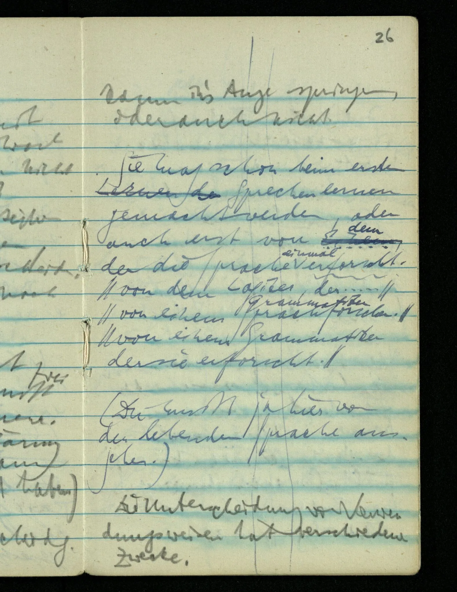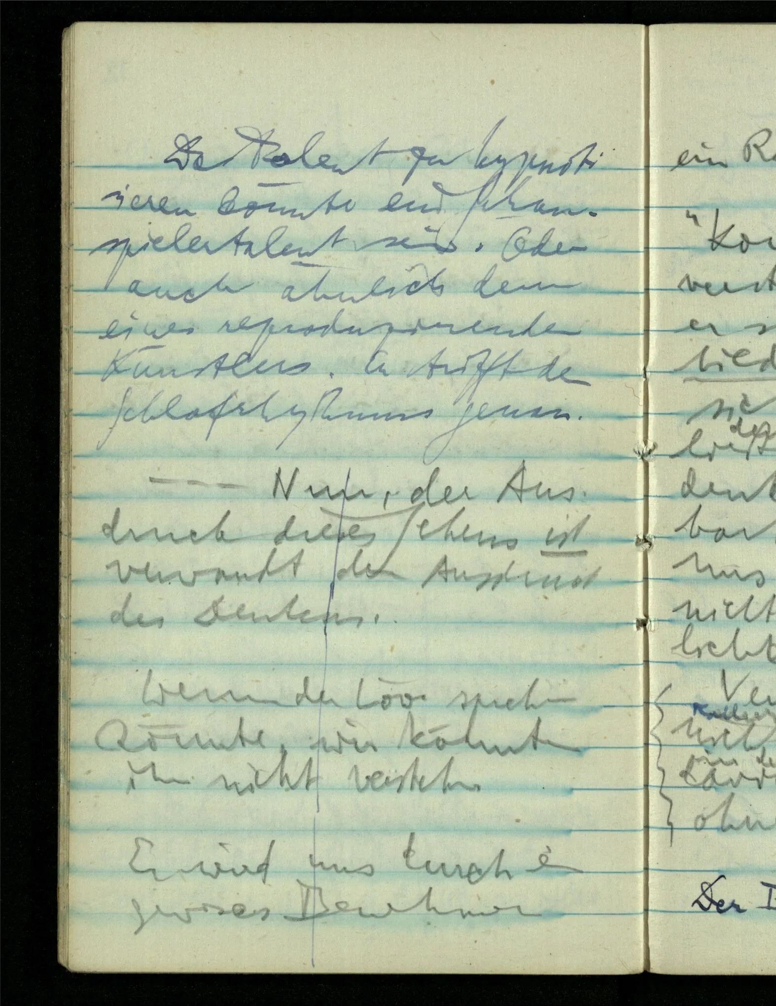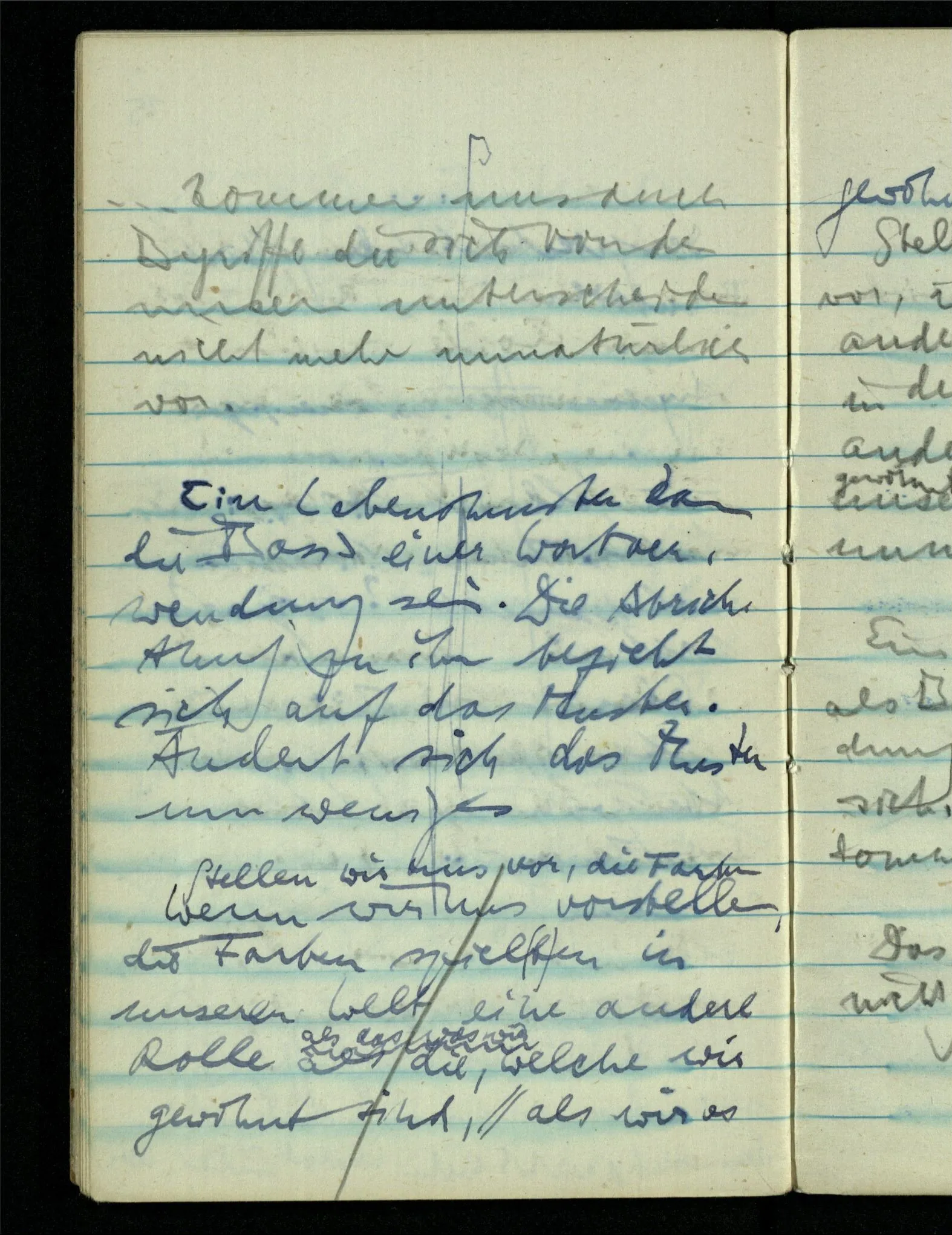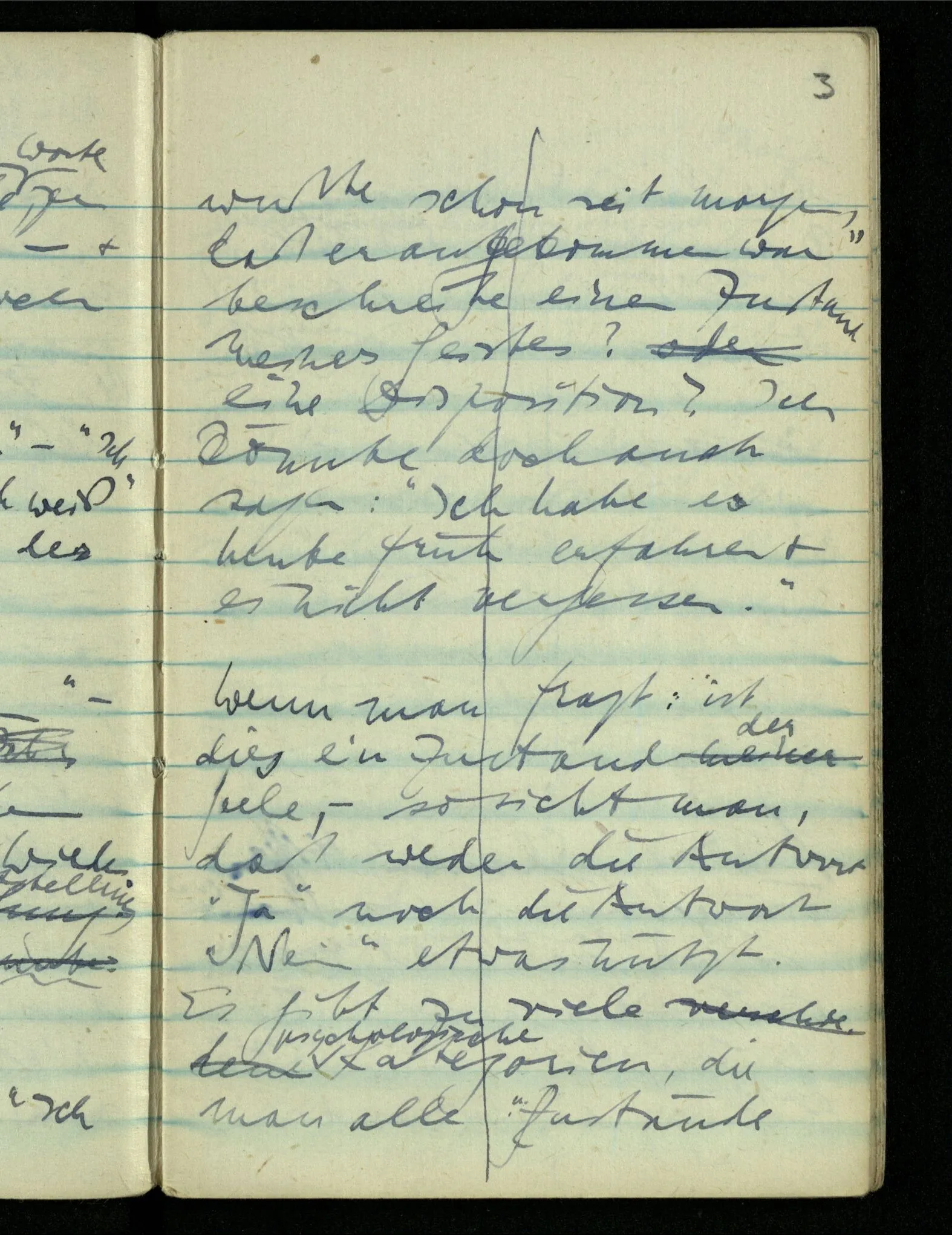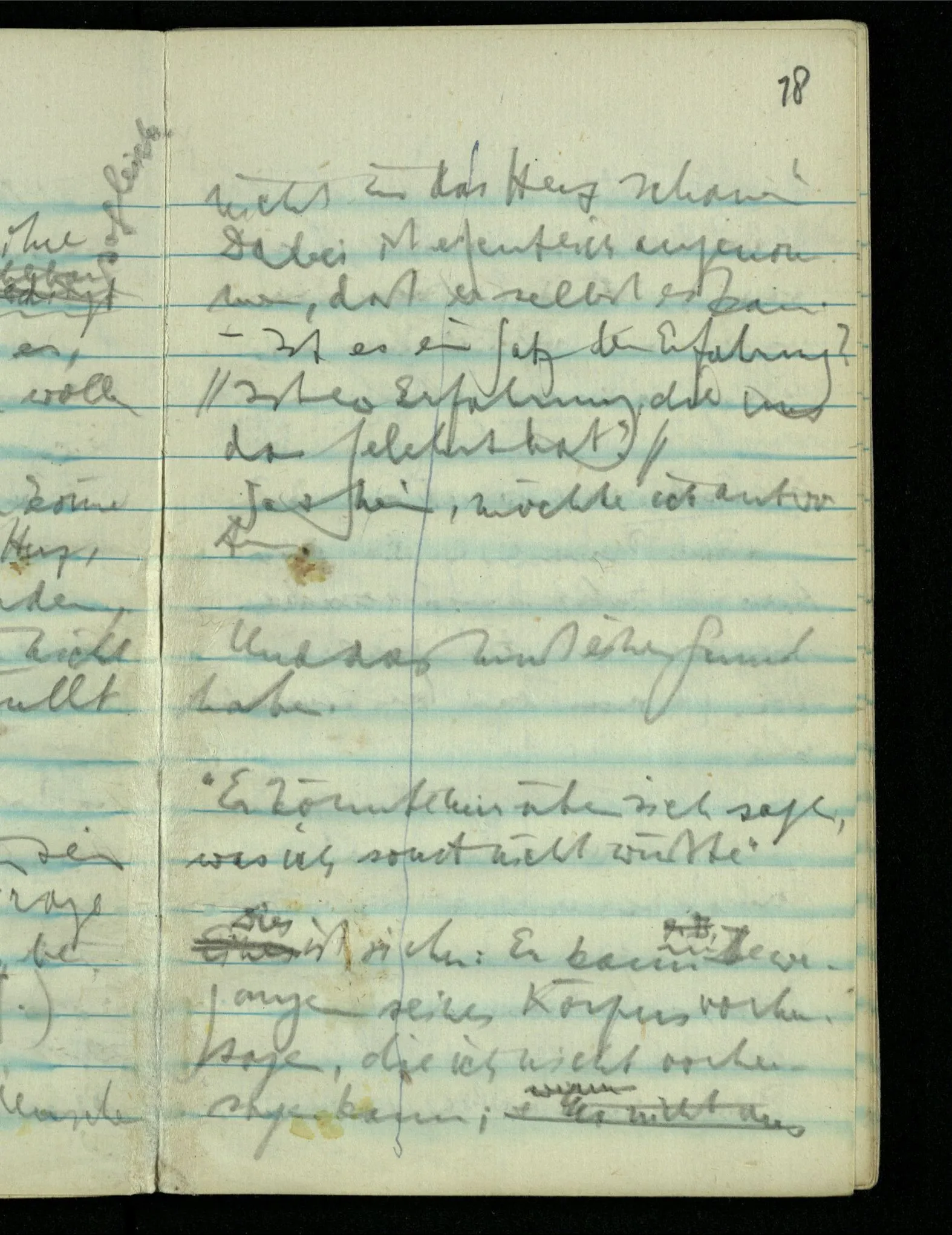 – – – Wenn es nun geschehen wäre daß Beide beim Hören dieses Wortes denselben Satz sagen – & mehr kann es doch nicht heißen. Nehmen wir an wir hätten uns Beide damals das gleiche gesagt. Nehmen wir an, jeden von uns hätte sich dabei das Gleiche, zu sich selbst gesagt – & mehr kann es doch nicht heißen.