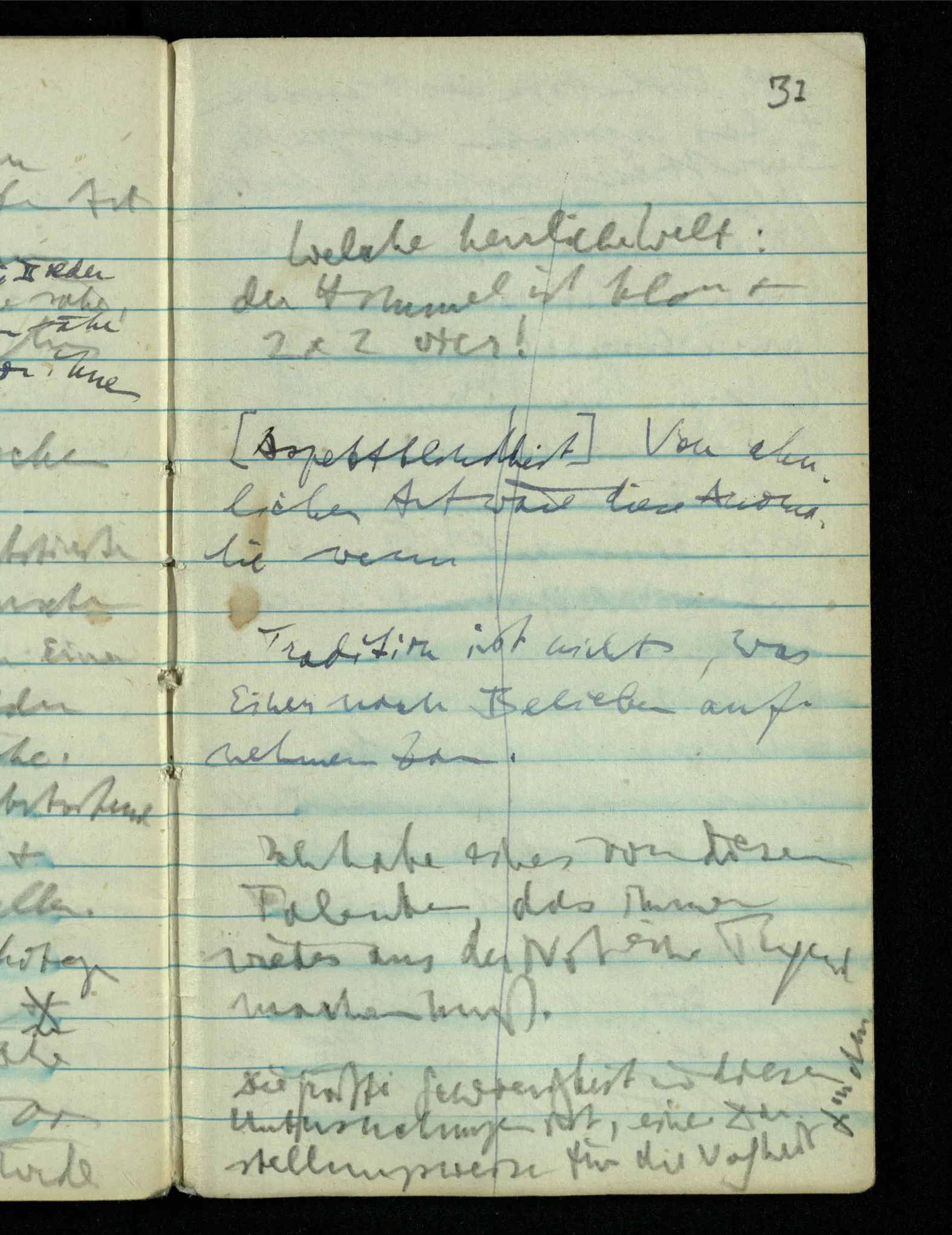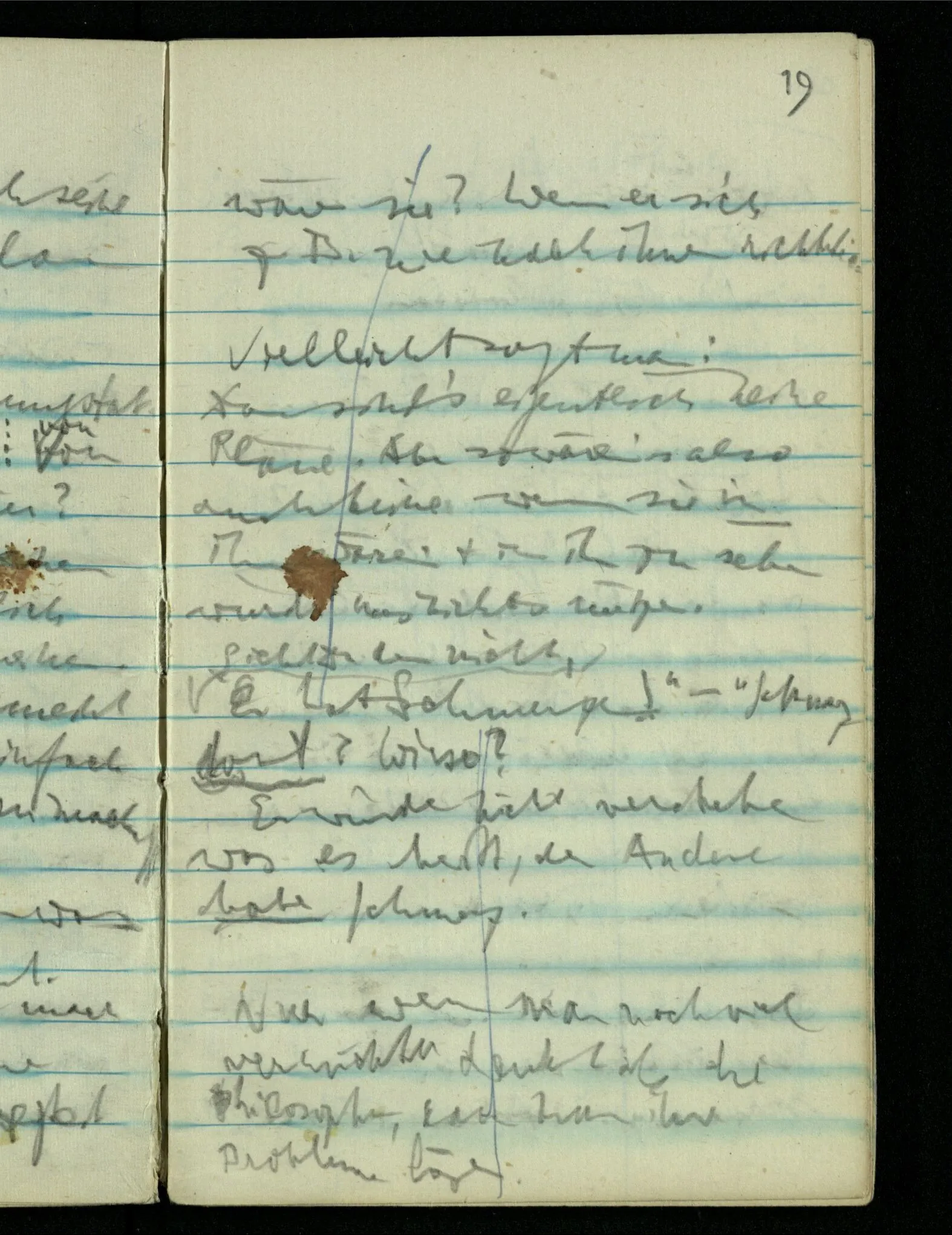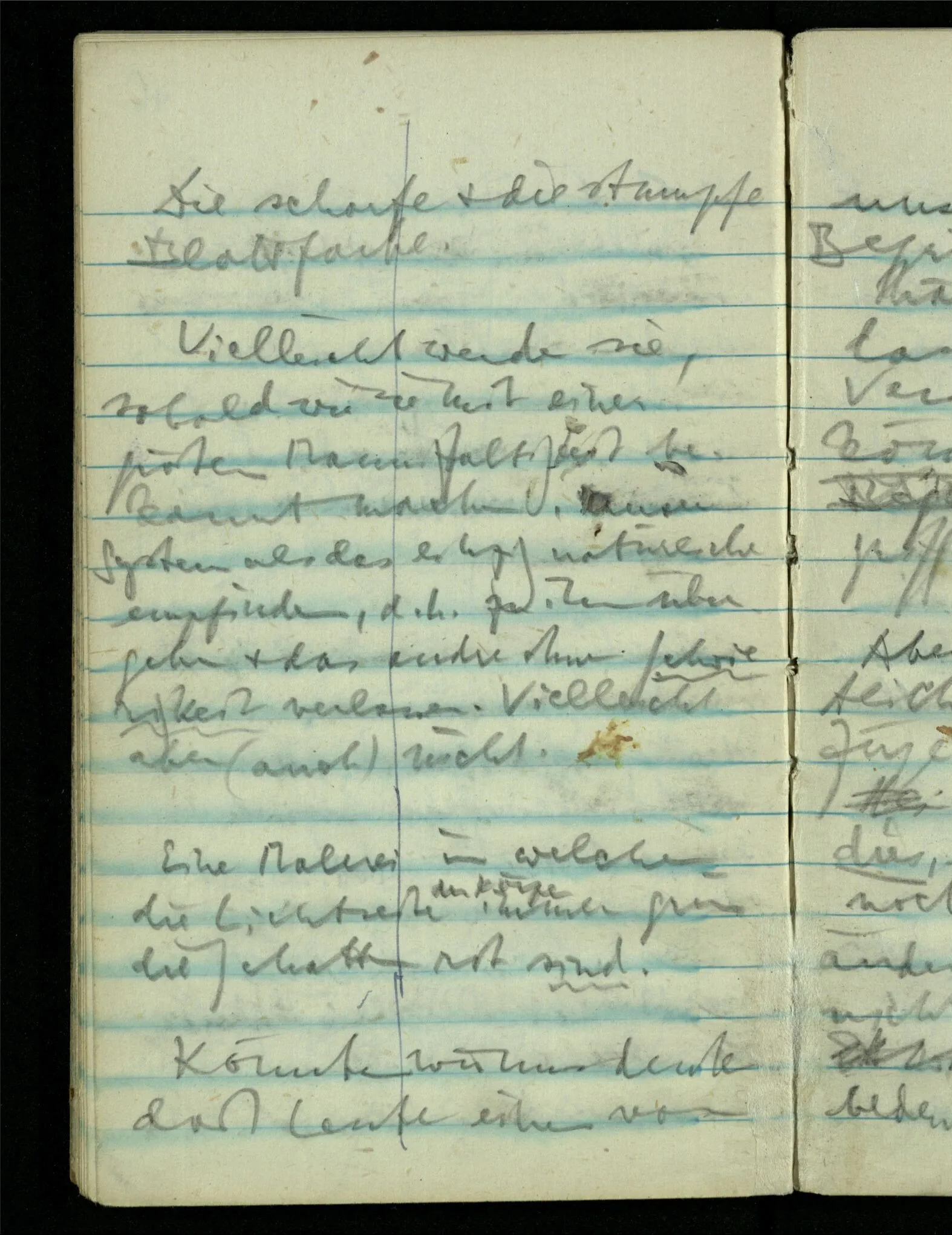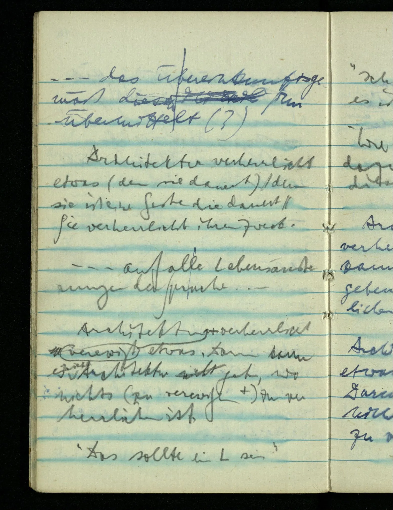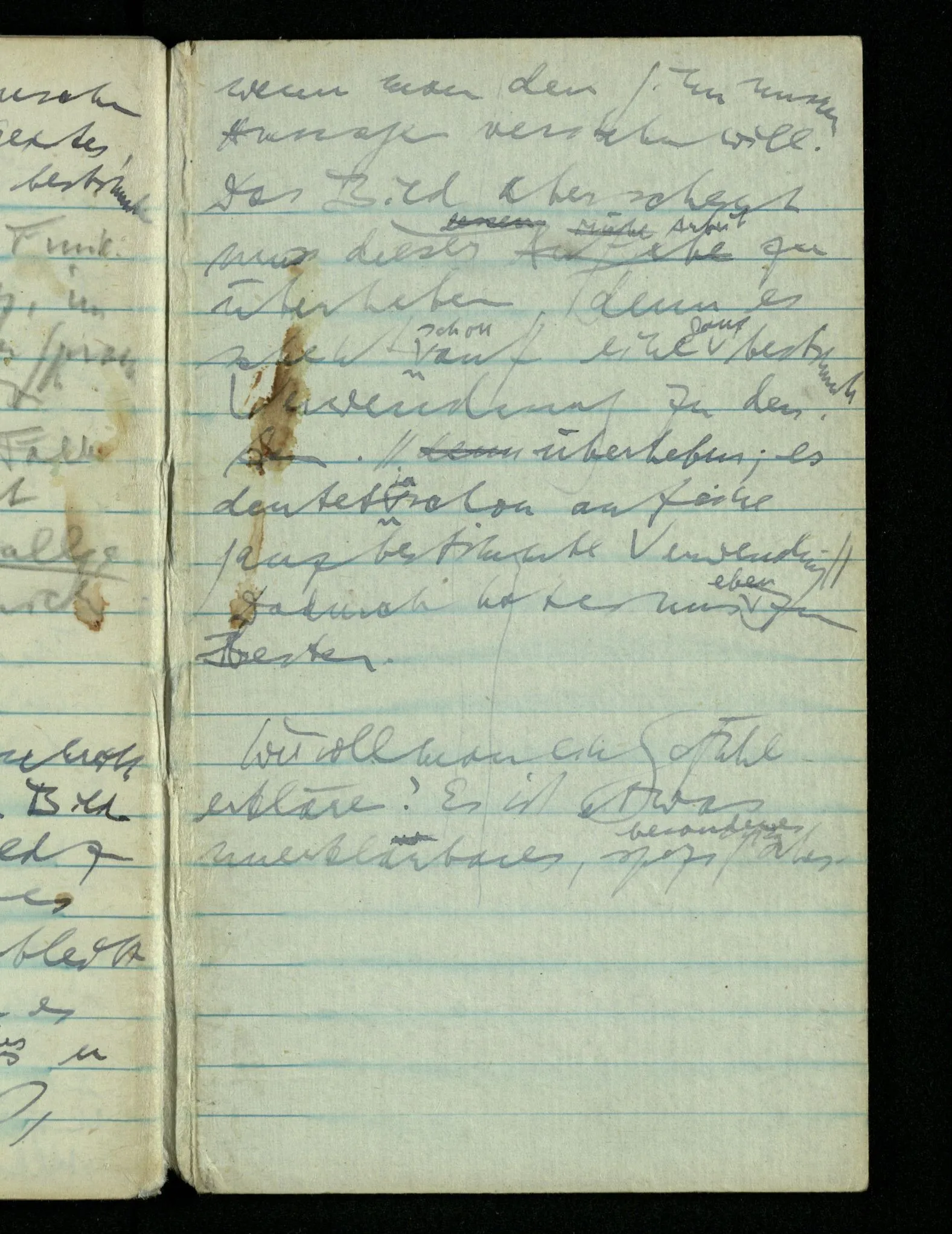 – – – Wenn es nun geschehen wäre daß Beide beim Hören dieses Wortes denselben Satz sagen – & mehr kann es doch nicht heißen. Nehmen wir an wir hätten uns Beide damals das gleiche gesagt. Nehmen wir an, jeden von uns hätte sich dabei das Gleiche, zu sich selbst gesagt – & mehr kann es doch nicht heißen.