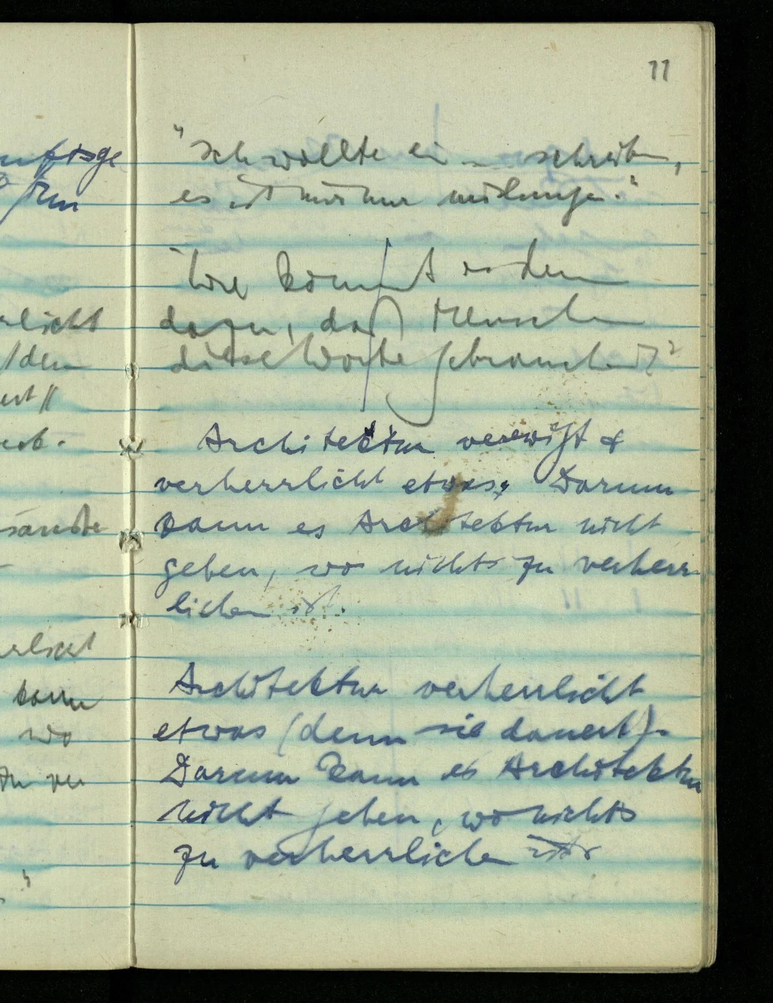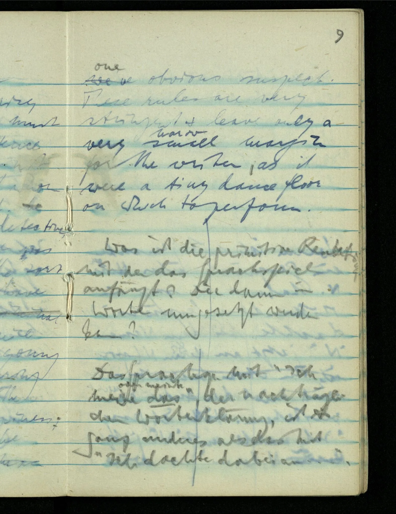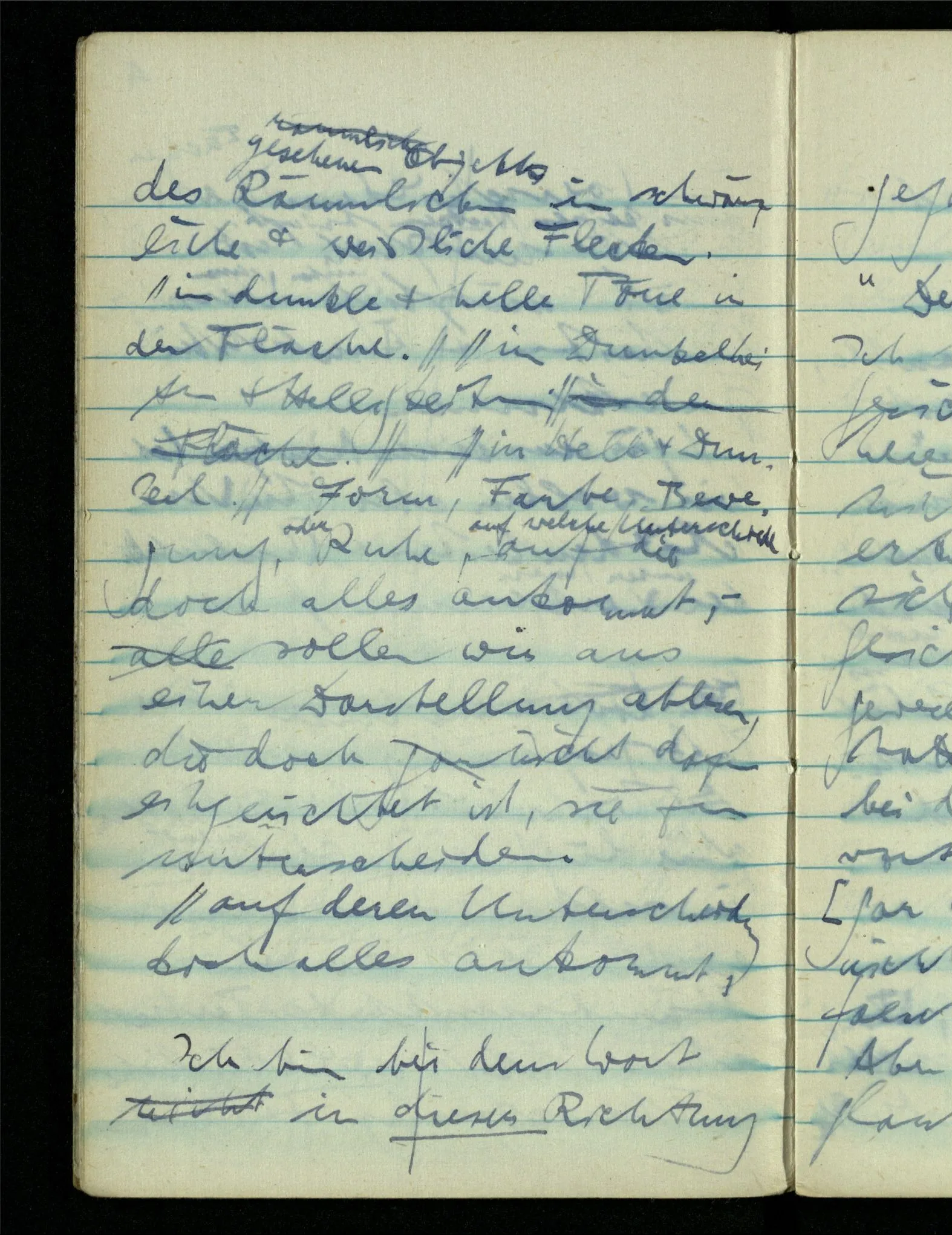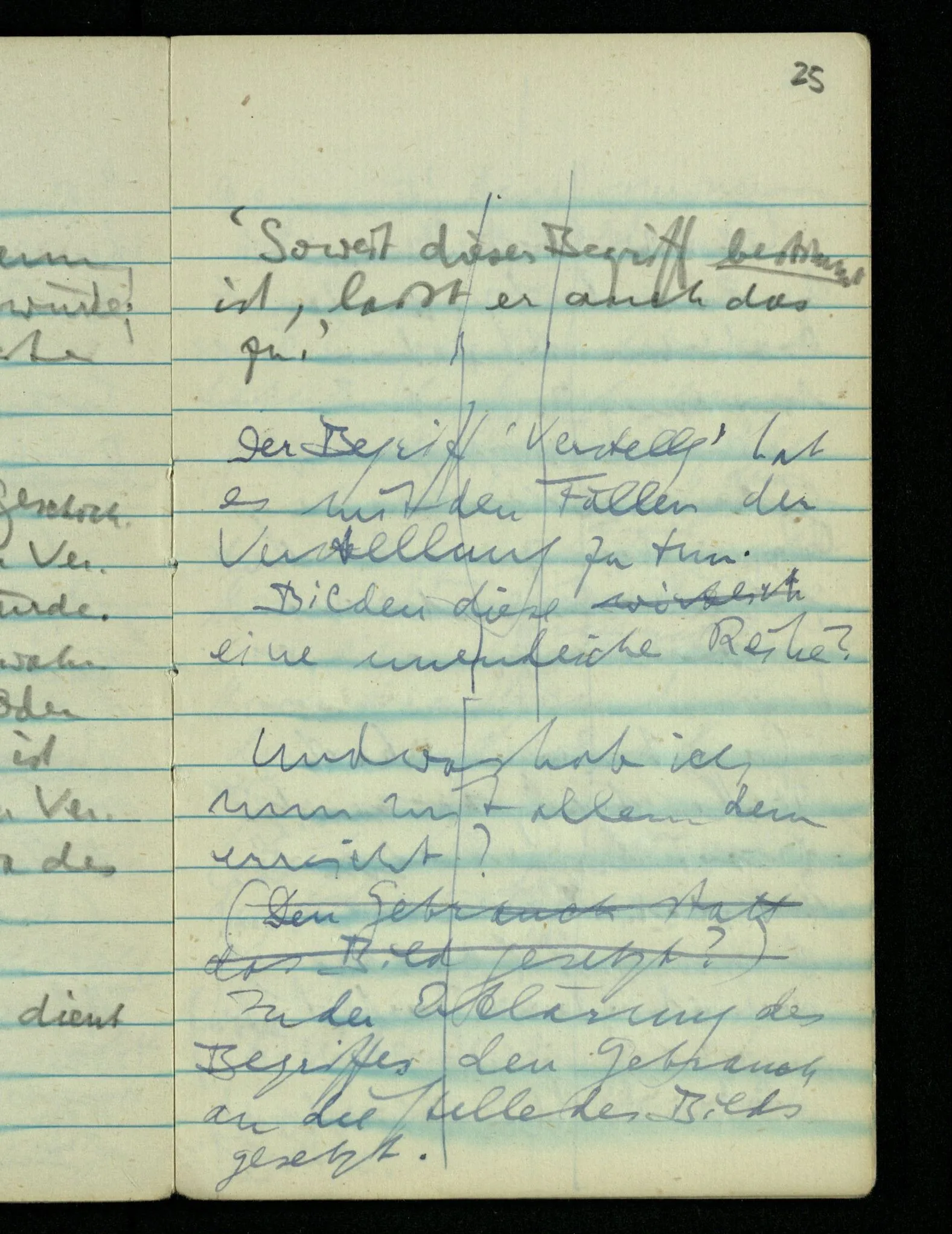 “Ich meinte, als ich Bank sagte, natürlich die Bank auf die Du gehen sollst.” – Mußte ein Bedeutungserlebnis das Wort begleiten? (Unsinn!) Warum aber dann, wenn ich – gegen den Zusammenhang – an unsre Gartenbank dabei dachte?