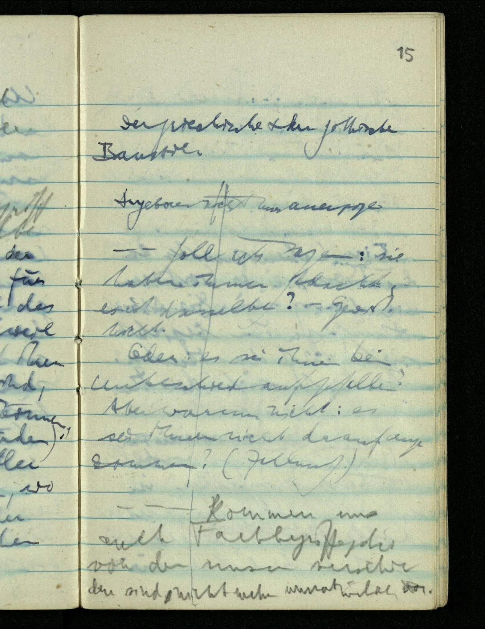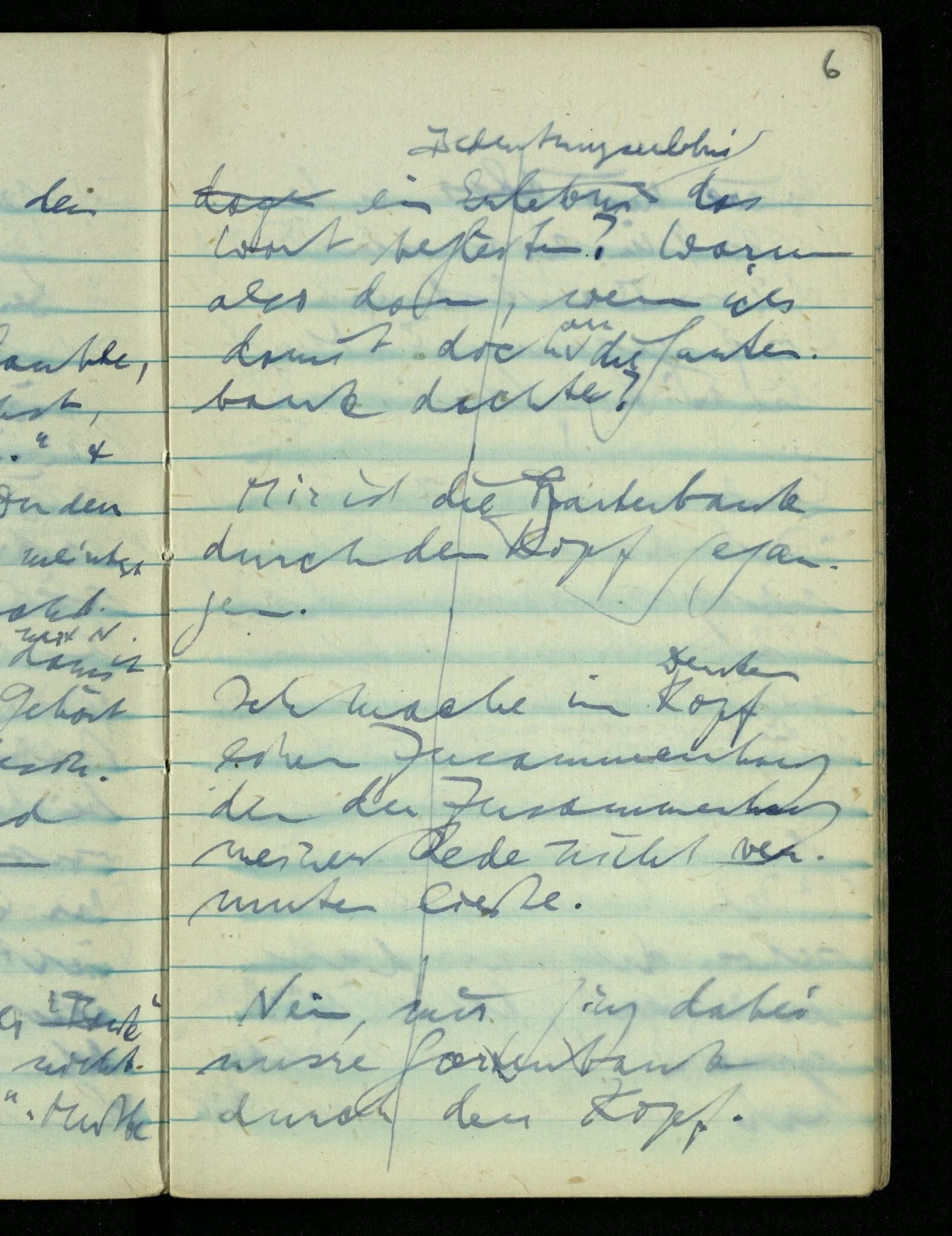Nein, mir ging dabei unsre Gartenbank durch den Kopf. Wäre mir also andernfalls die … Bank durch den Kopf gegangen? [Mußte sie es? Konnte sie es?]