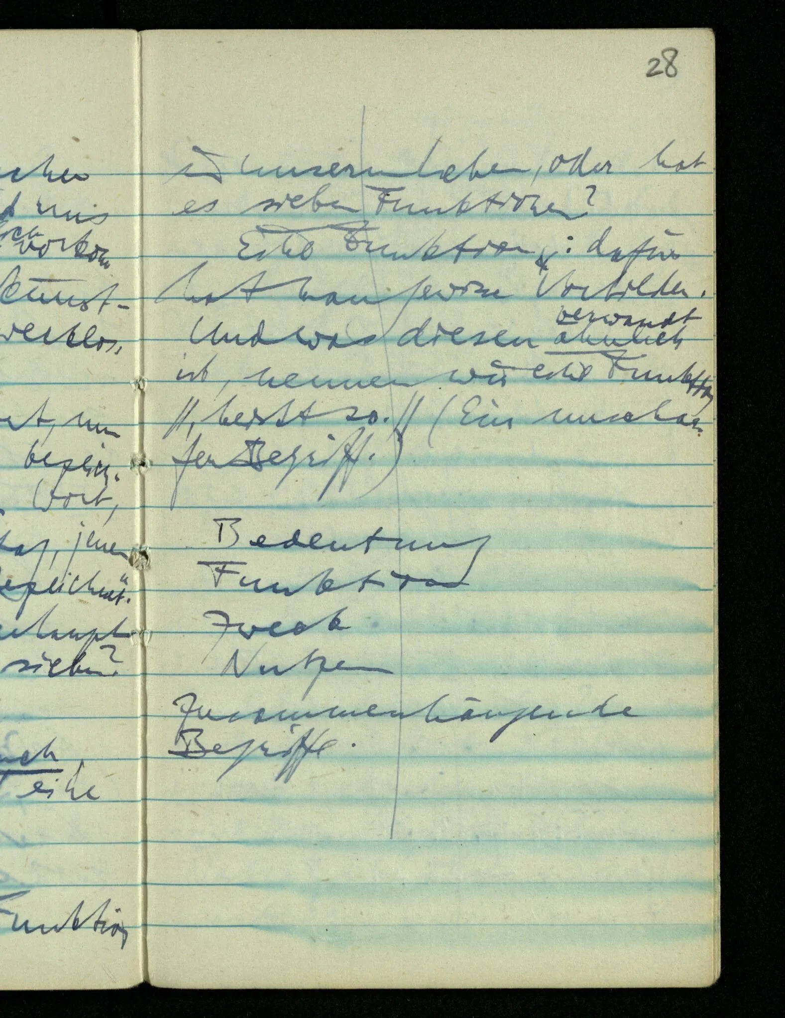 Hat das Wort eine Funktion in unserm Leben, oder hat es sieben Funktionen? Eine Funktion: dafür hat man gewisse Vorbilder. Und was diesen ähnlich ist, nennen wir eine Funktion. (Ein unscharfer Begriff.)