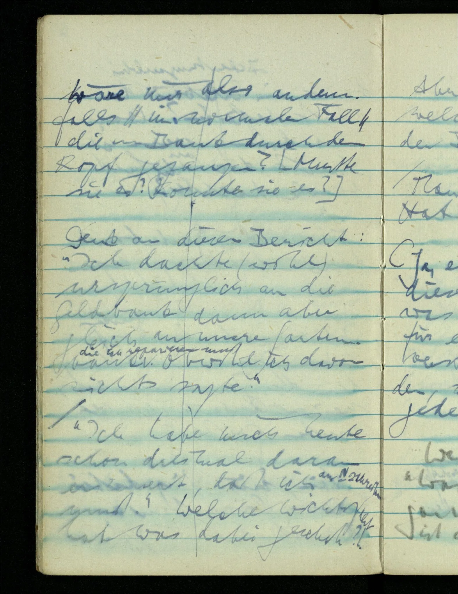 “Ich habe mich heute schon dreimal daran erinnert, daß ich an N. schreiben muß.” Welche Wichtigkeit hat was dabei geschah?! Aber welche Wichtigkeit, welches Interesse hat der Bericht selbst?