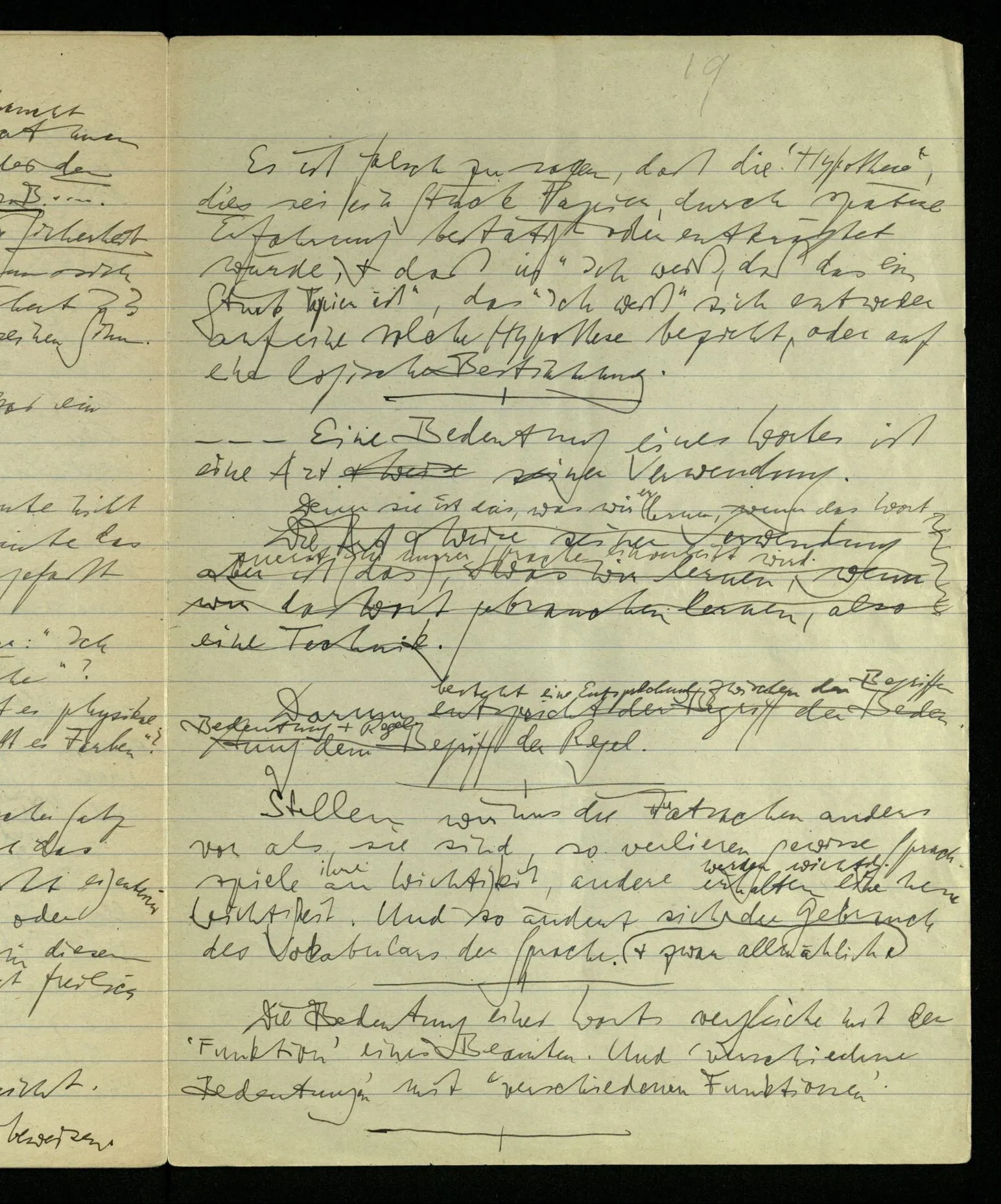 Stellen wir uns die Tatsachen anders vor als sie sind, so verlieren gewisse Sprachspiele an Wichtigkeit, andere erhalten eine neue Wichtigkeit. Und so ändert sich & zwar allmählich der Gebrauch des Vokabulars der Sprache.